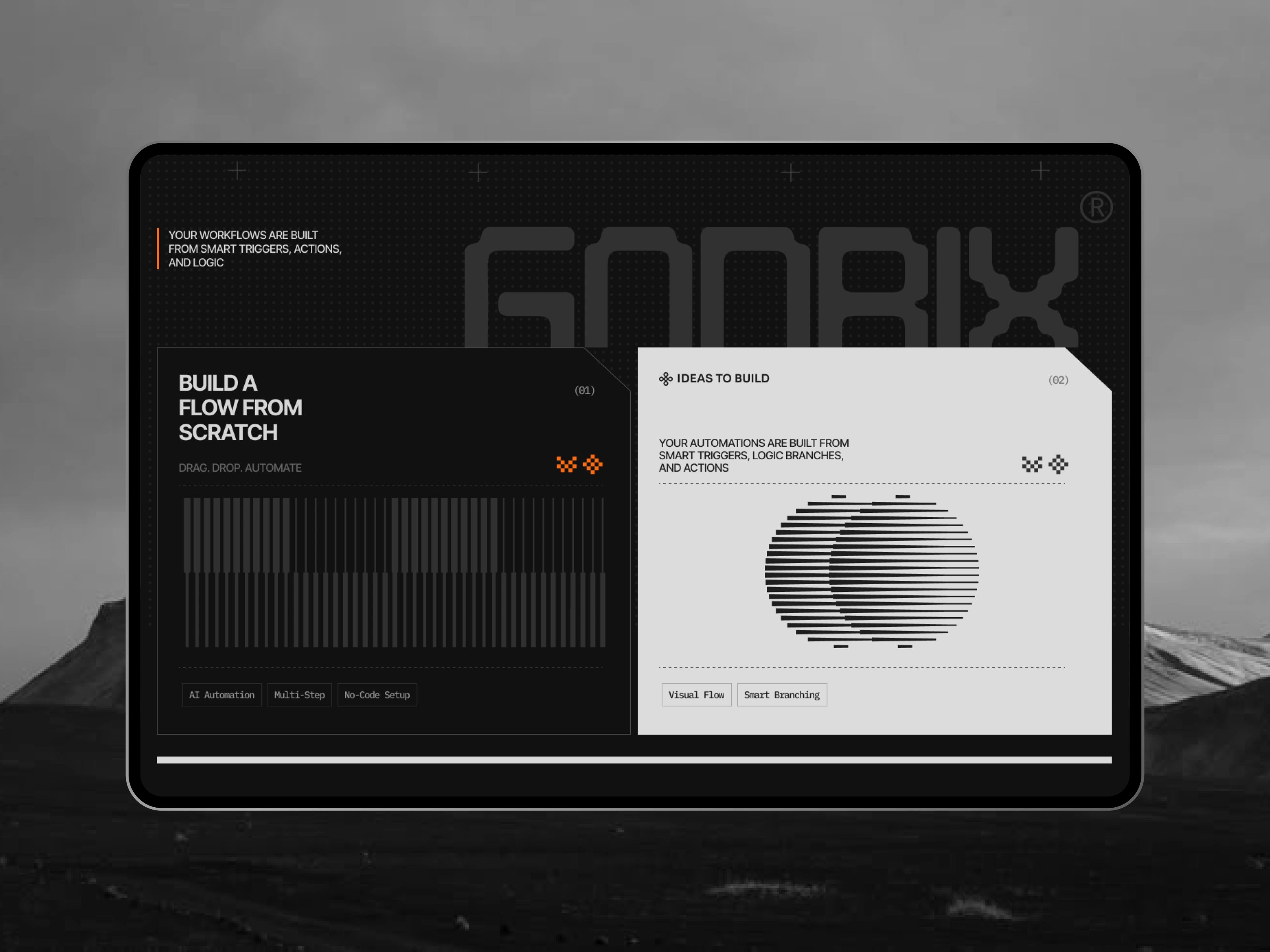 Visual Identity: A Tech-Noir color palette was adopted, using deep blacks as the foundation, contrasted with high-octane orange to create powerful visual anchors for key calls to action.