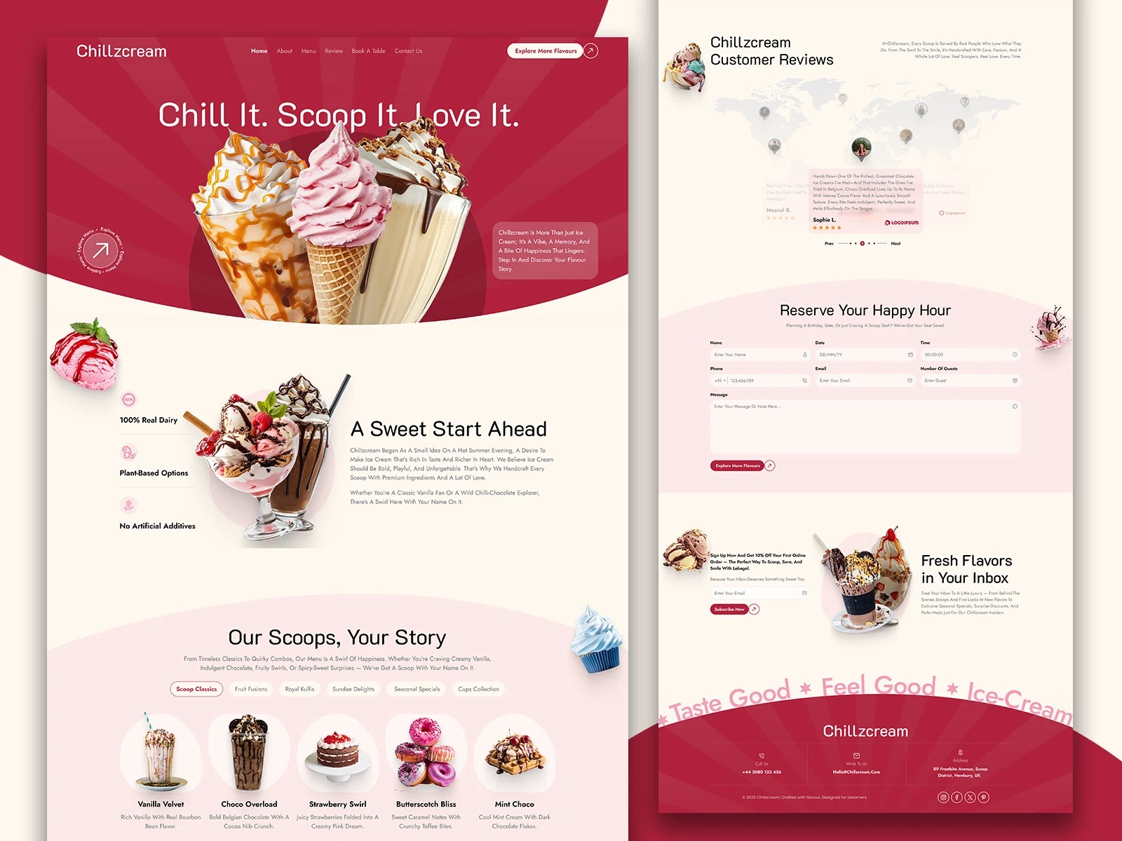 Client wanted a fun, inviting website for their ice cream brand that highlights flavors and creates an emotional connection. I designed a vibrant, visually rich layout with bold hero sections, clear flavor categories, customer reviews, reservation forms, and strong calls to action. The design focuses on storytelling, smooth user flow, and high-quality visuals to boost engagement, brand recall, and customer interaction across all devices.