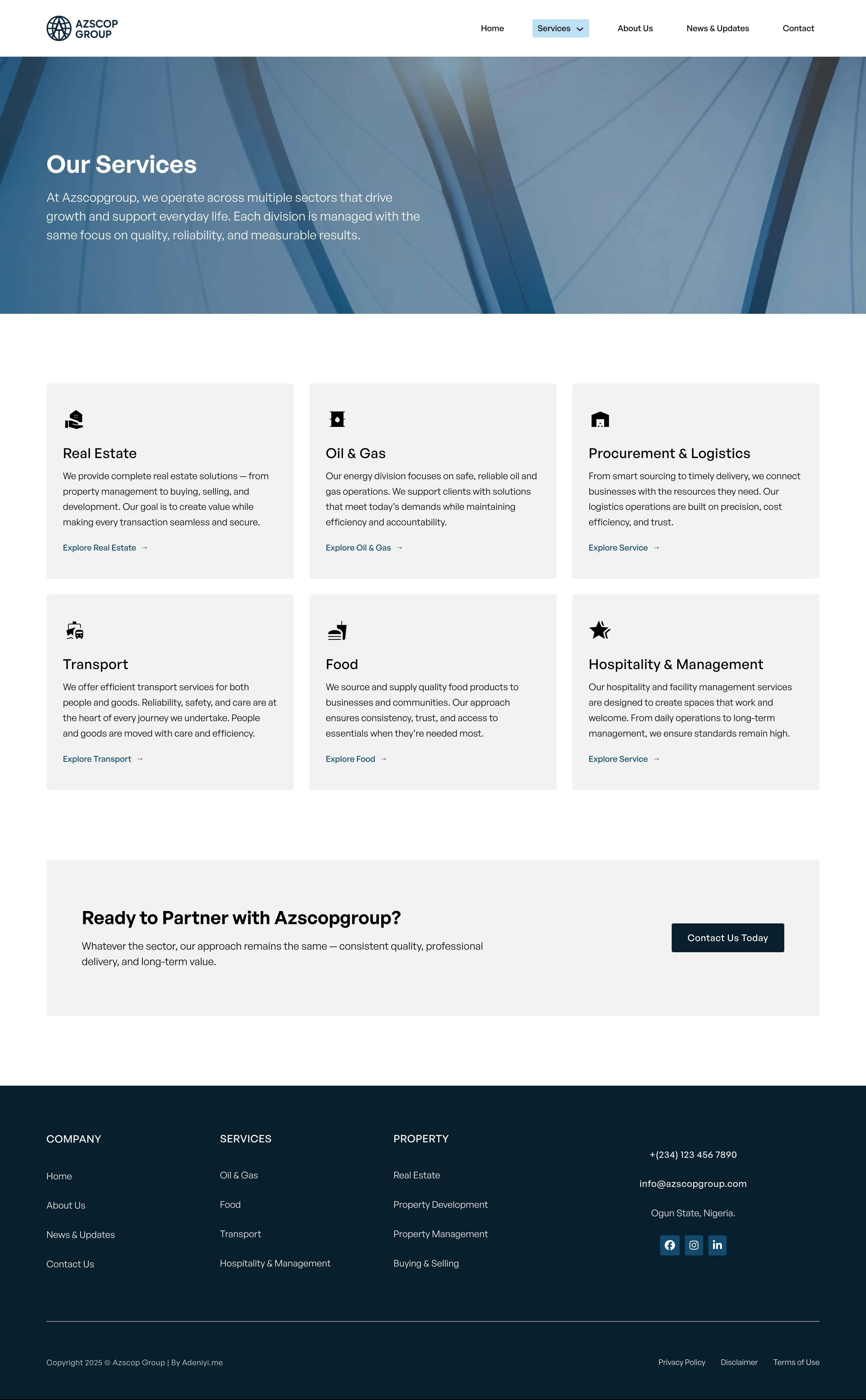 To build a unified online presence that strengthens Azscopgroup’s brand identity, clearly presents its diverse services, and creates a scalable foundation for future growth.