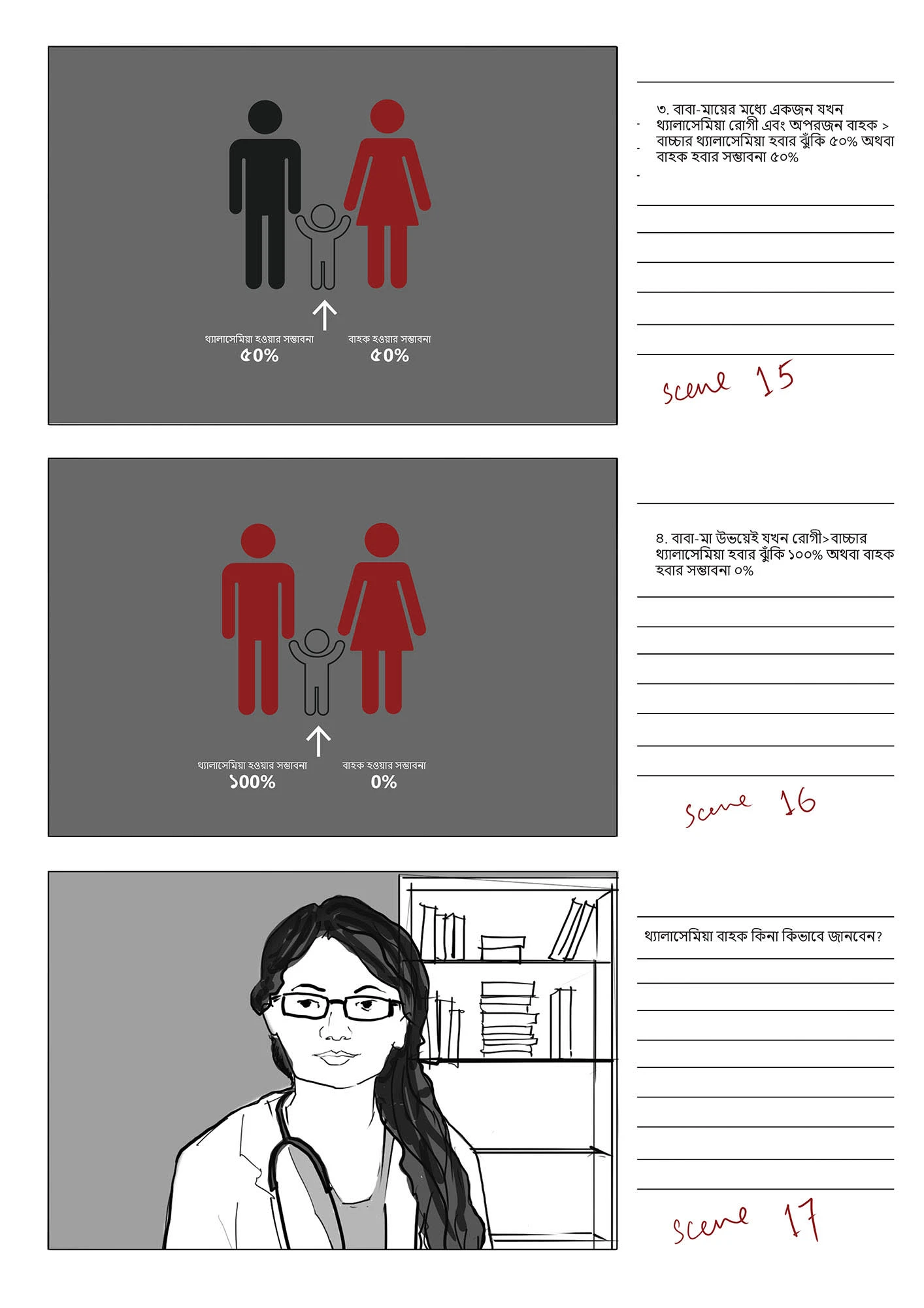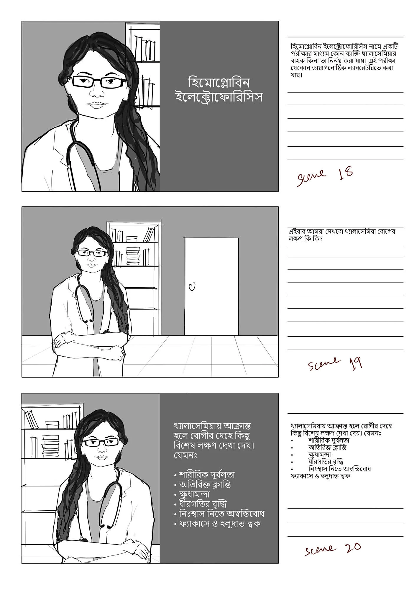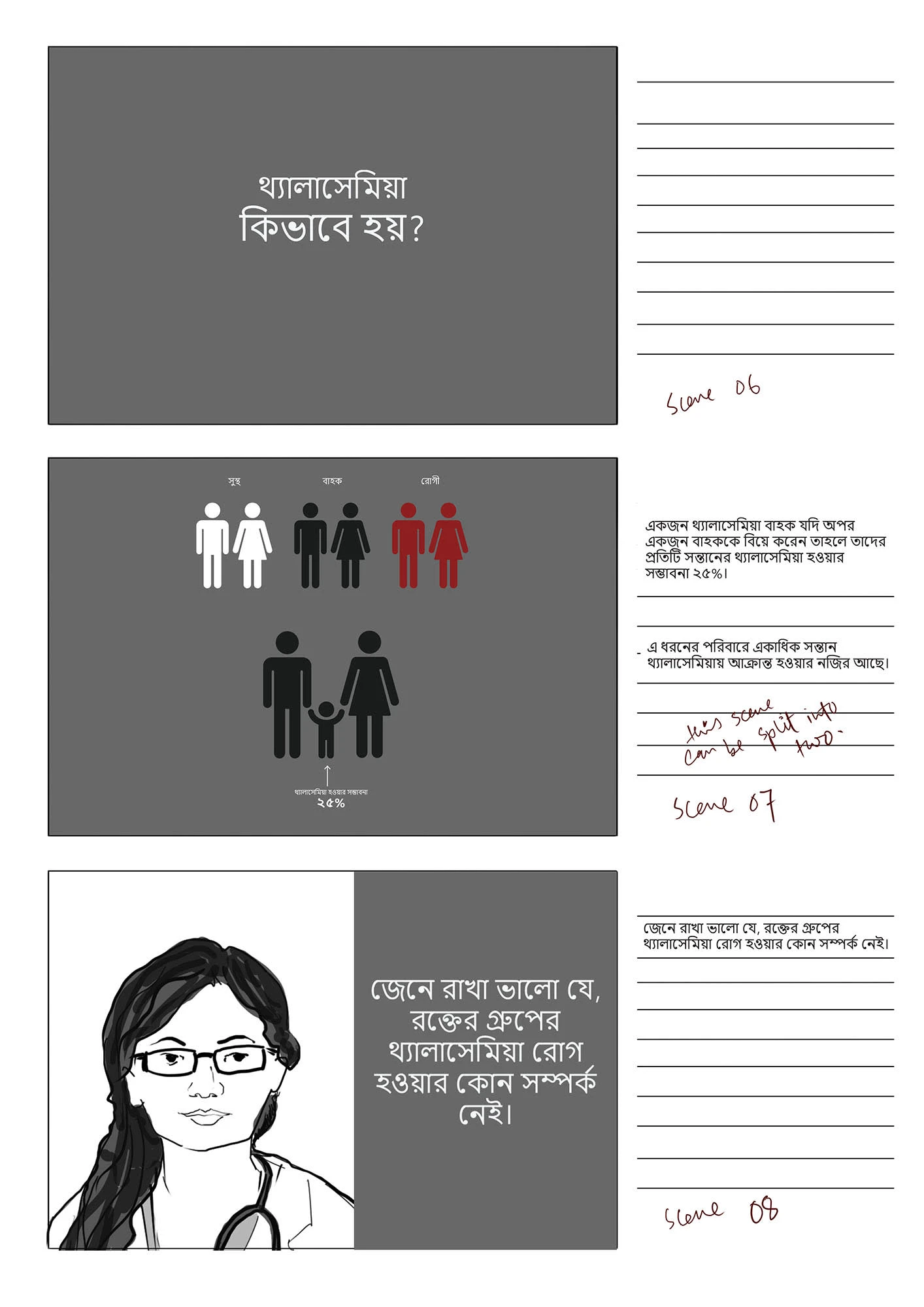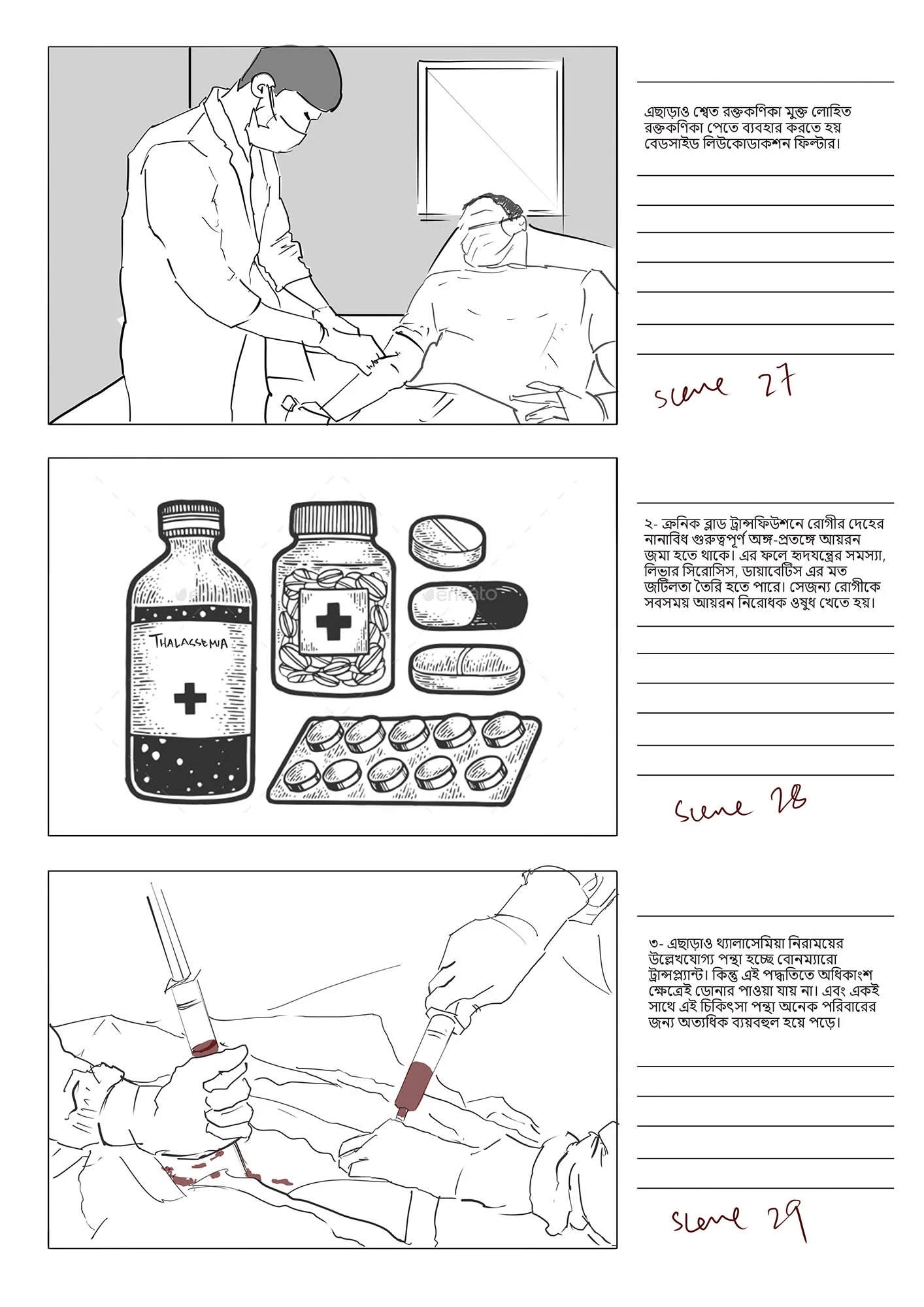 This stoyboard was created for a an audio-visual, funded by Bangladesh Thelassemia Foundation, with the goal to raise awareness of the disease Thelassemia.