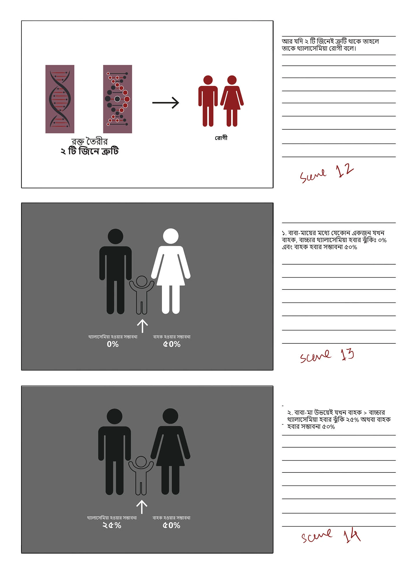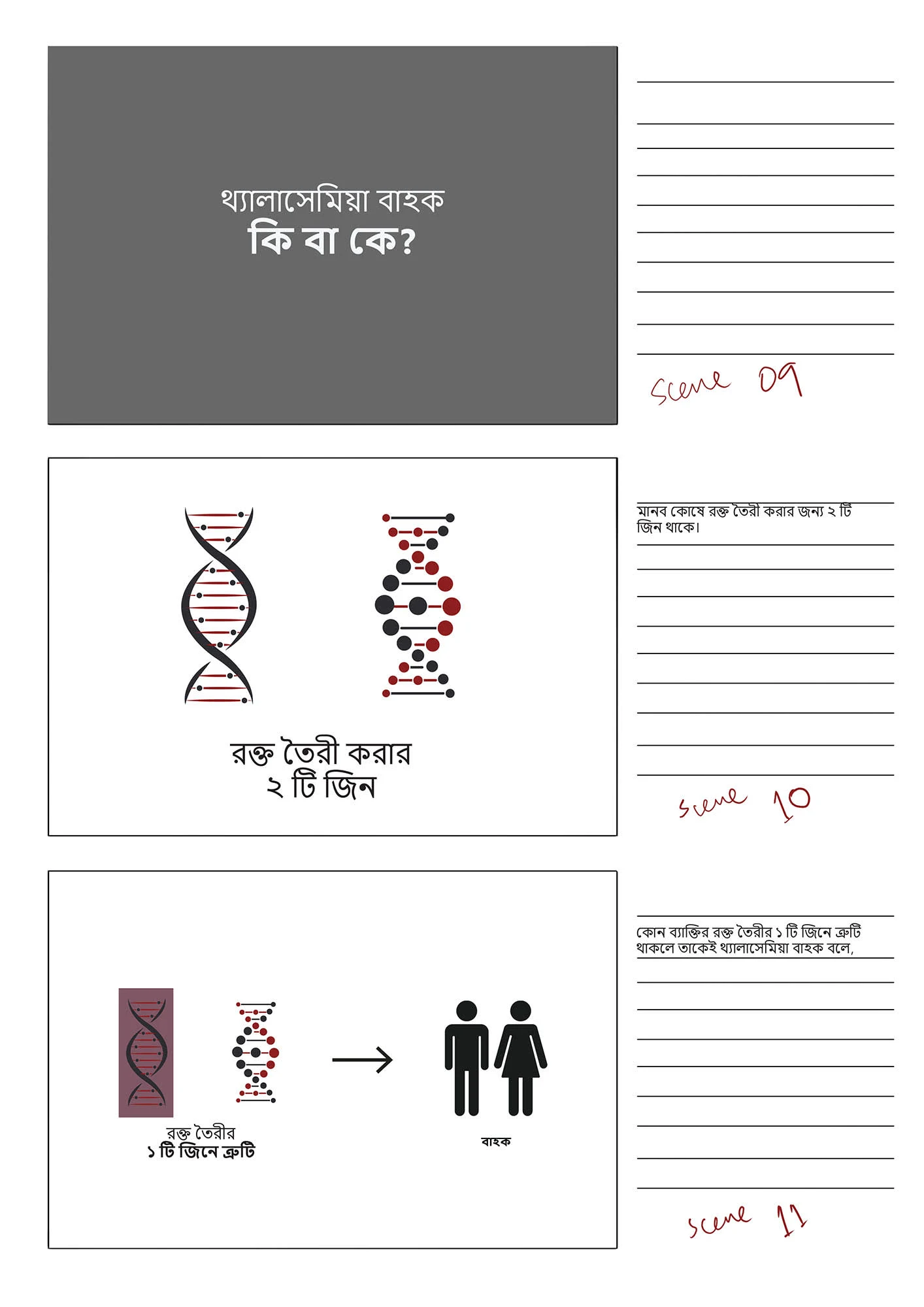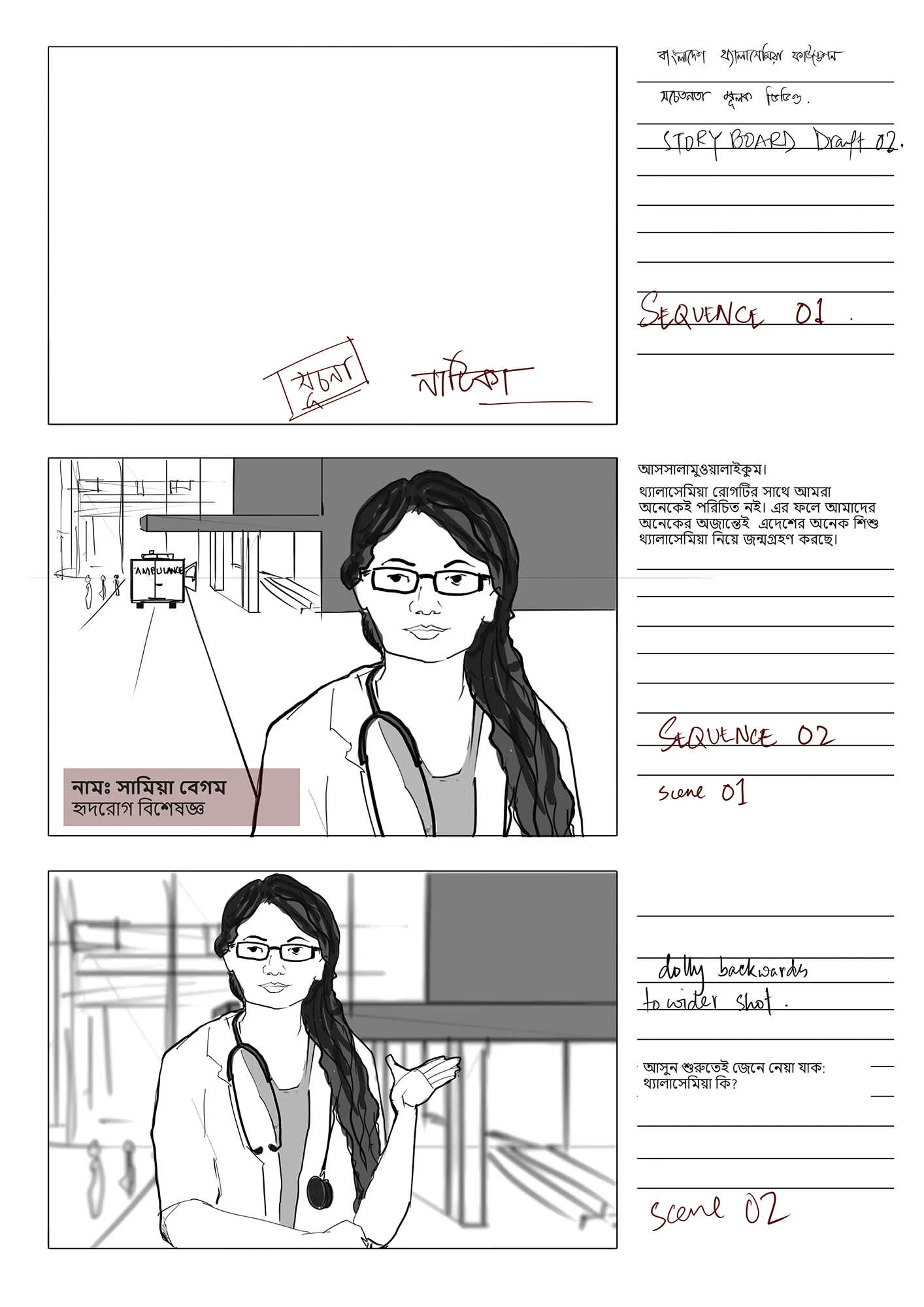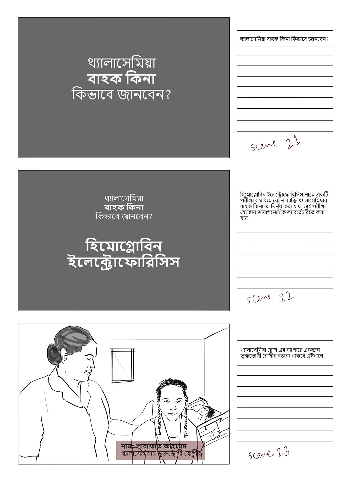 This stoyboard was created for a an audio-visual, funded by Bangladesh Thelassemia Foundation, with the goal to raise awareness of the disease Thelassemia.