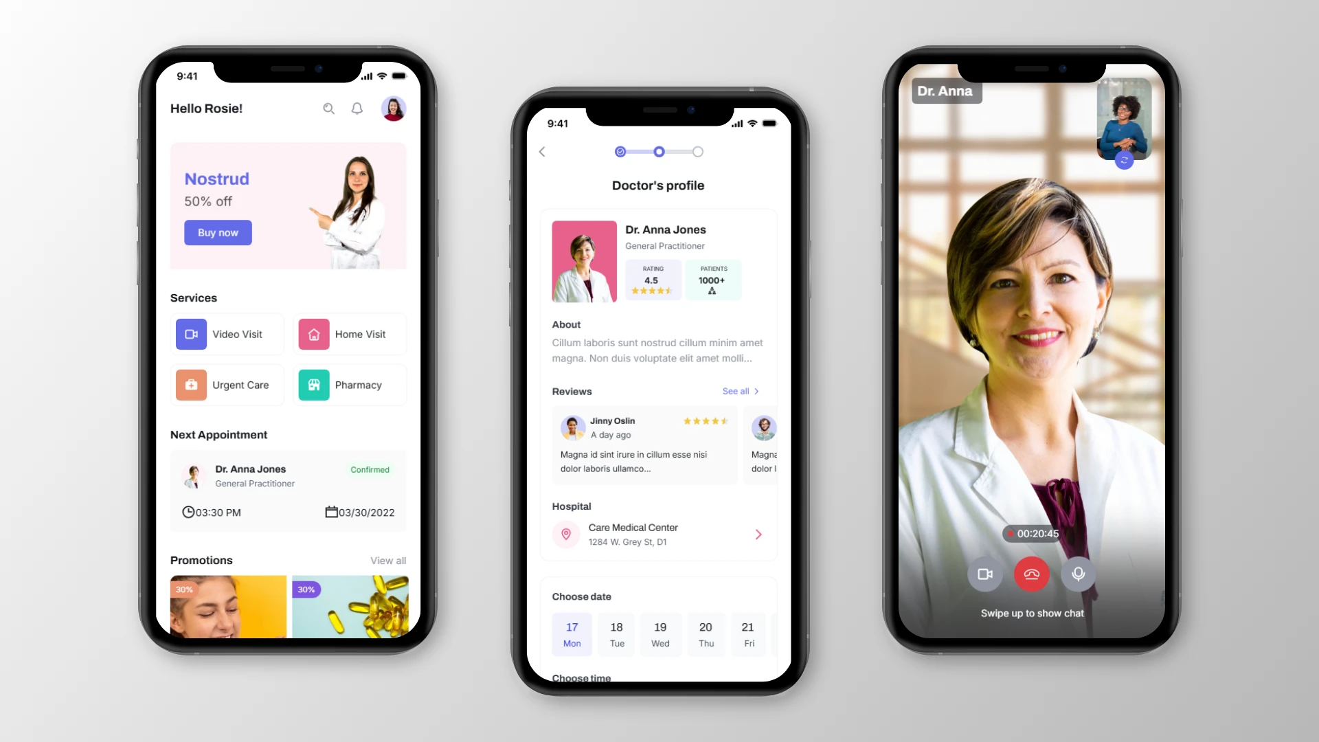 A modern medical app UI/UX Design quick access to healthcare services with minimal effort. It offers live updates on appointment status, Designed for patients seeking a straightforward and reassuring experience, the app features a minimalist interface, soothing color schemes, and intuitive navigation to support better health management.