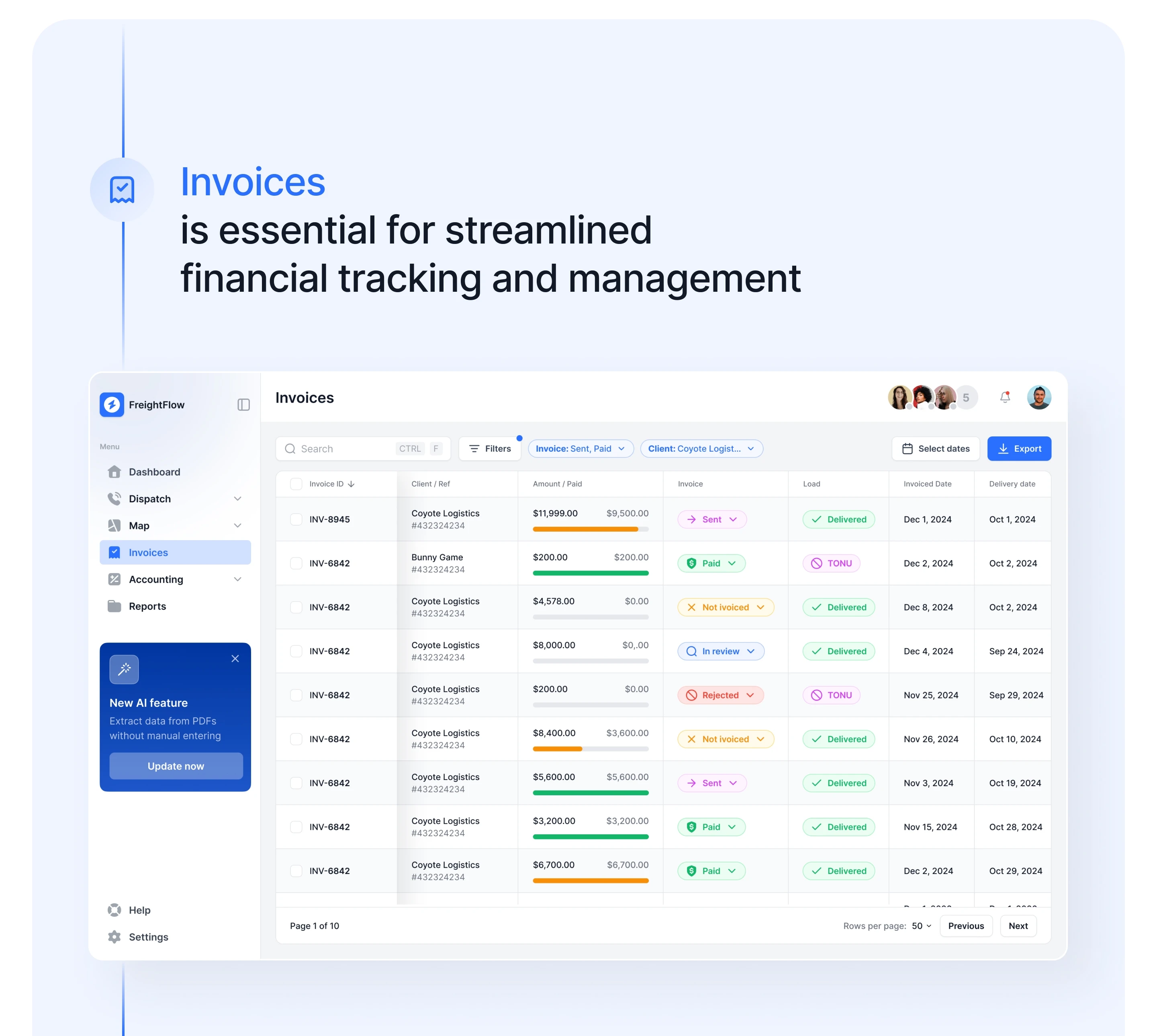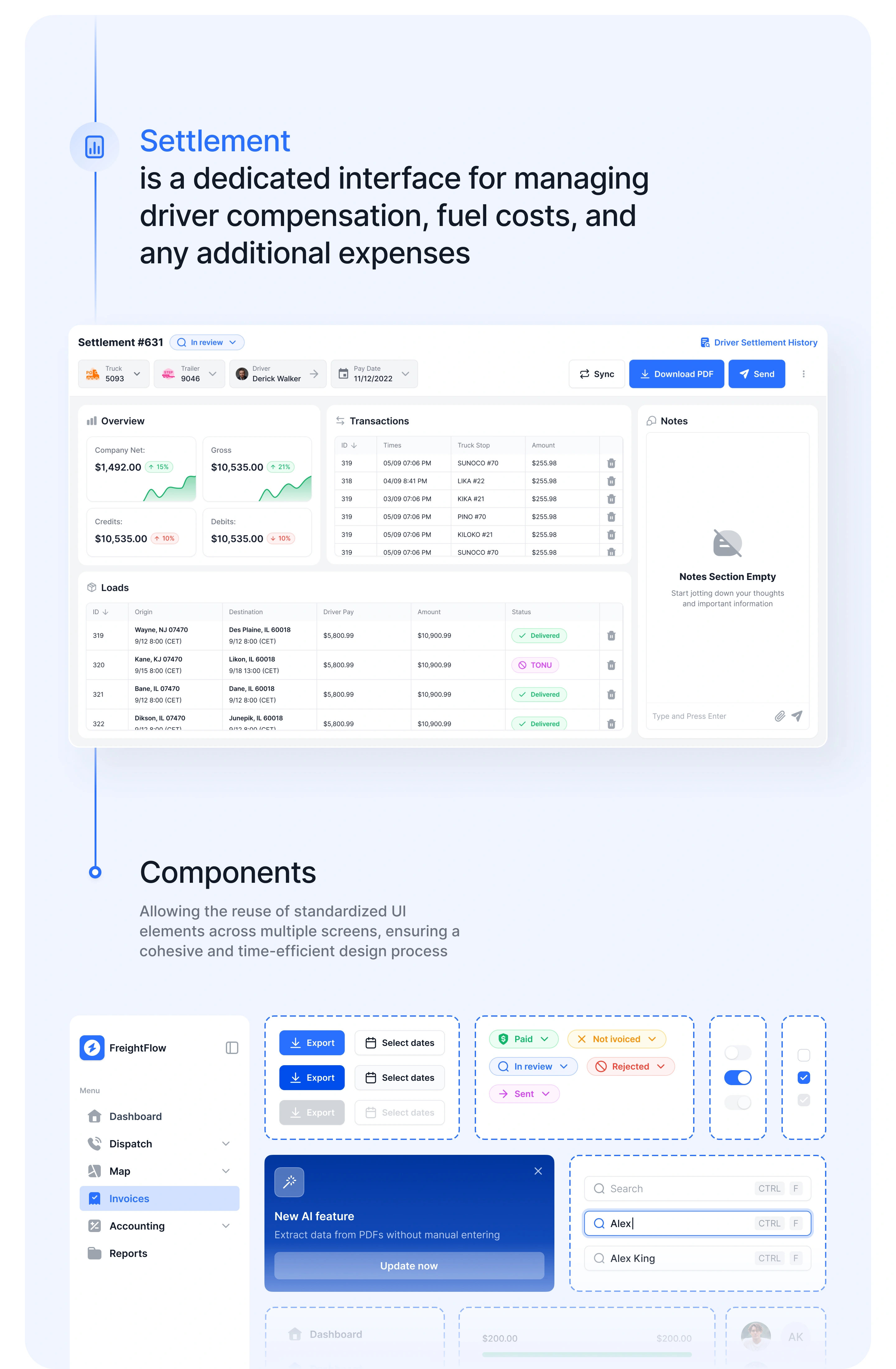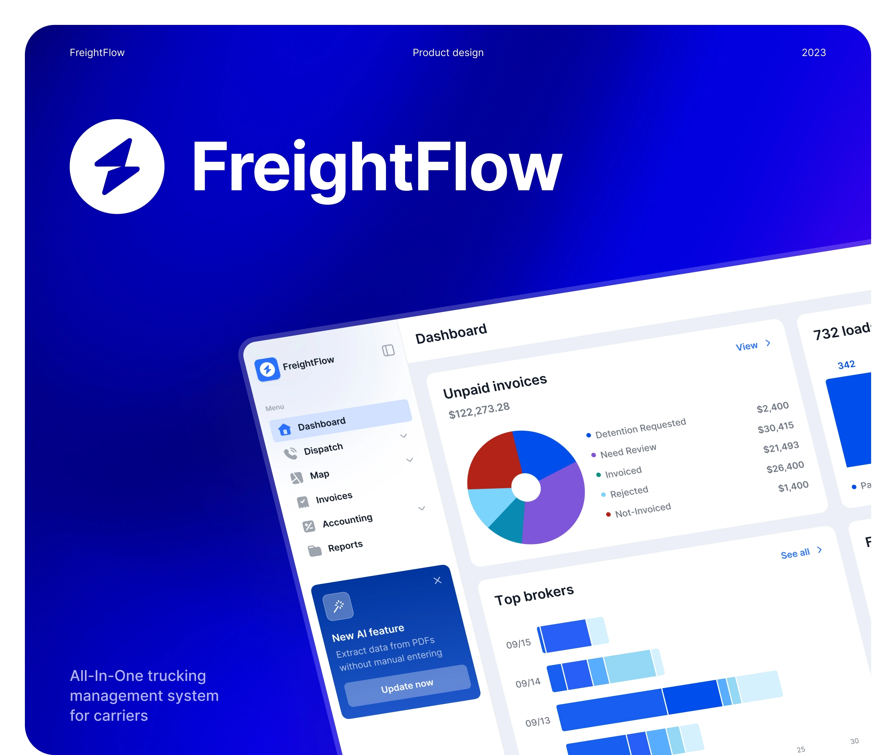All-in-one trucking SaaS platform with load tracking, route management, and smart tools for efficient, intuitive logistics operations.