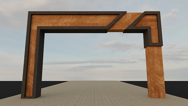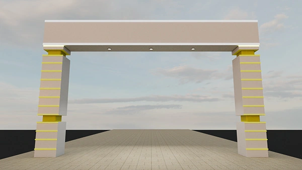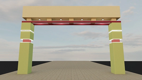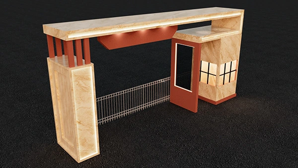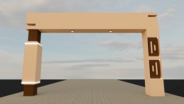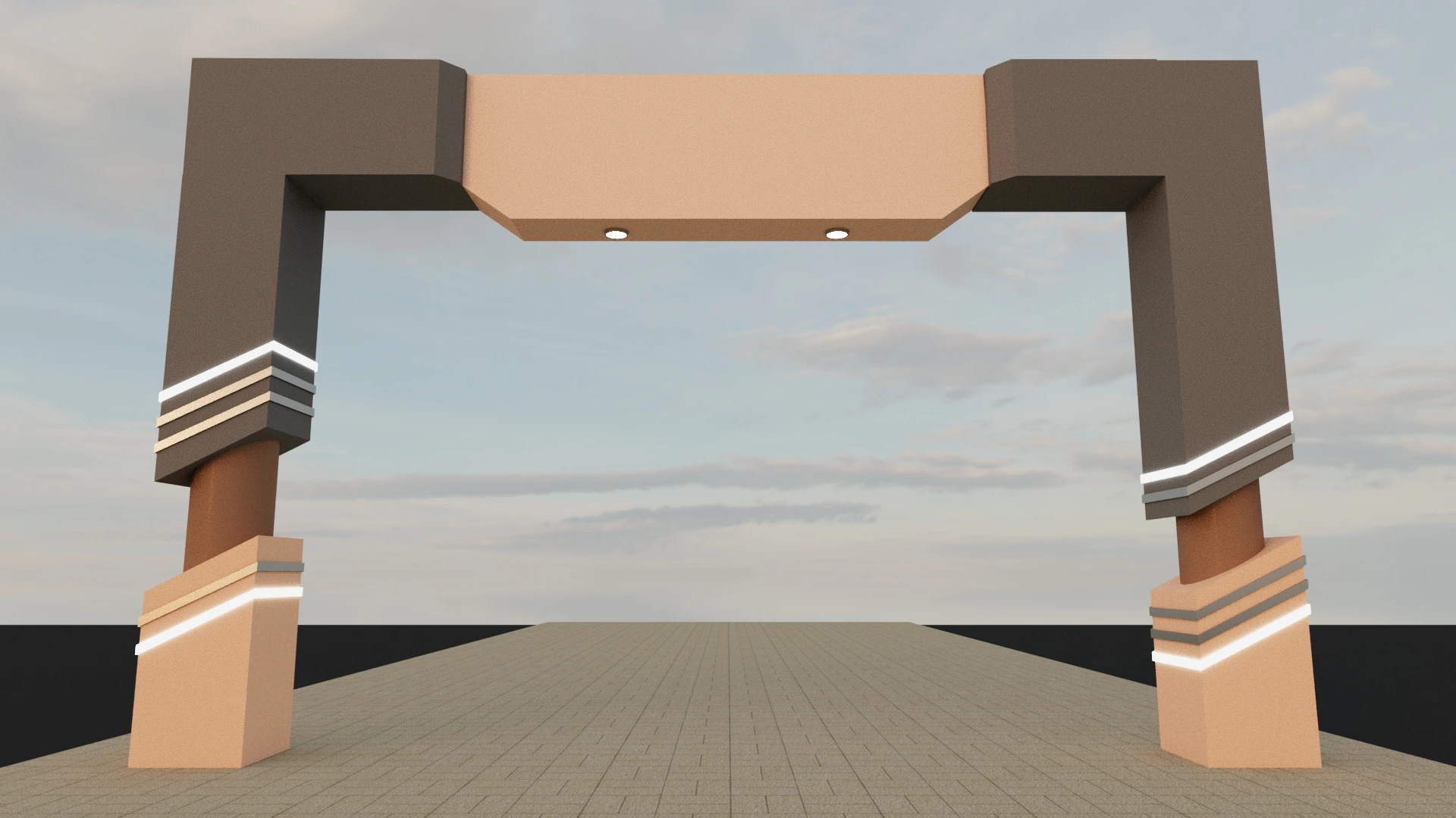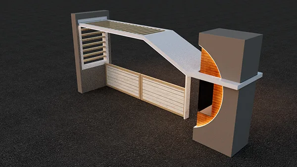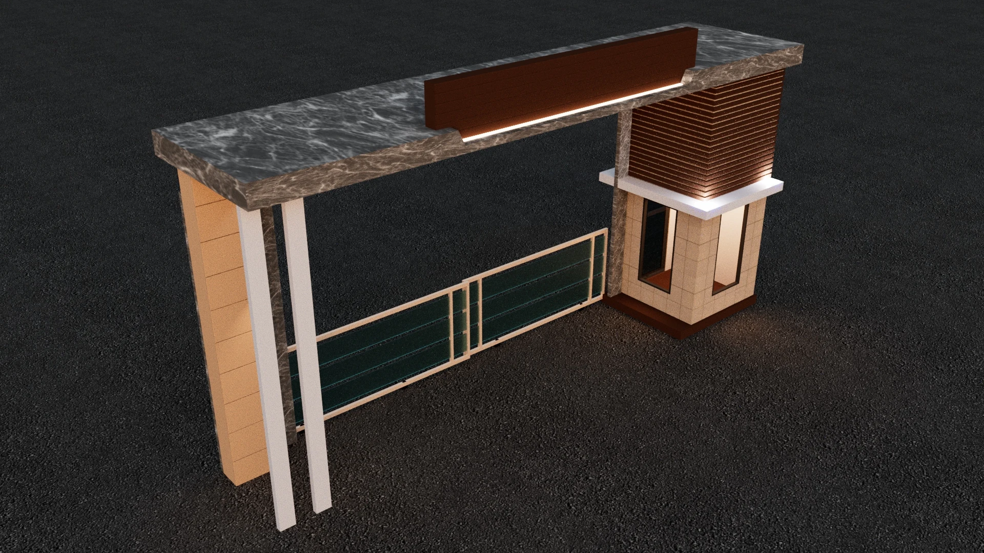 3D-designed society gate concepts blending modern aesthetics with security—featuring sleek materials, ambient lighting, and customizable nameplates.