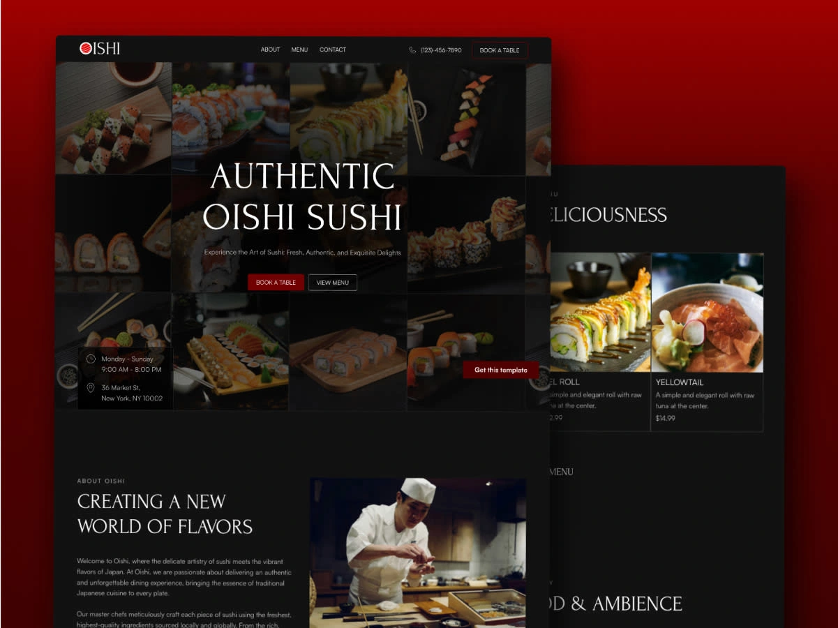 Oishi presents a custom-crafted Framer website catering to the needs of culinary businesses, including restaurants, cafes, bars, and other food and beverage establishments.