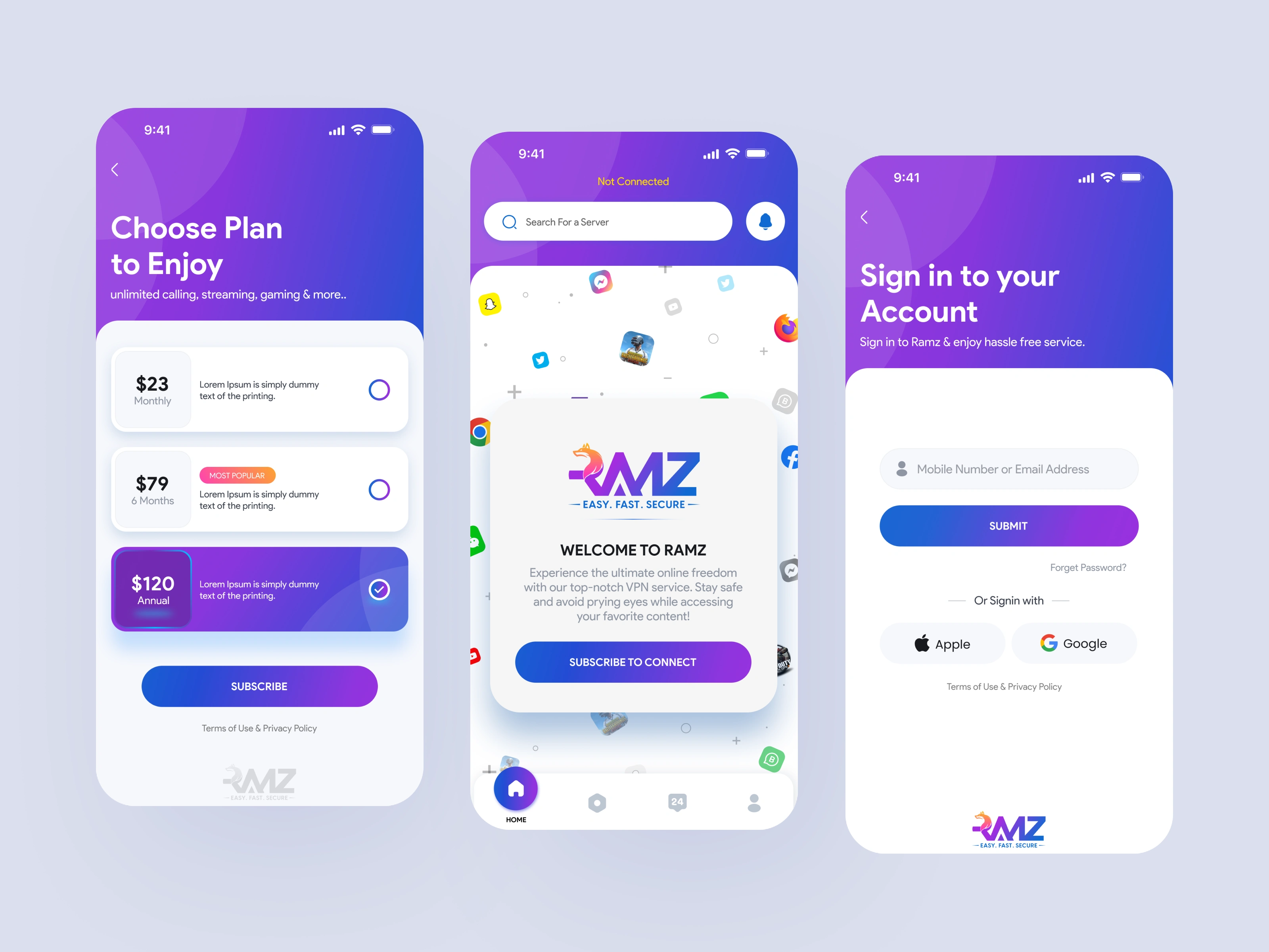 Elevating the Brand and User Experience for RamzVPN mobile application, desktop application and website.