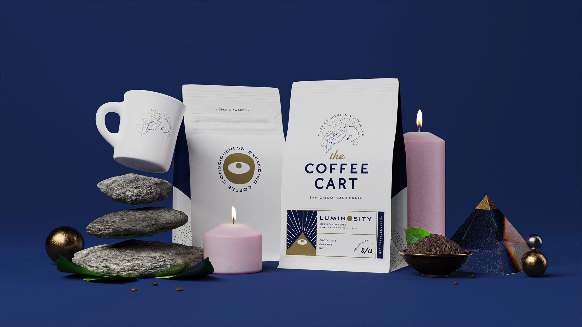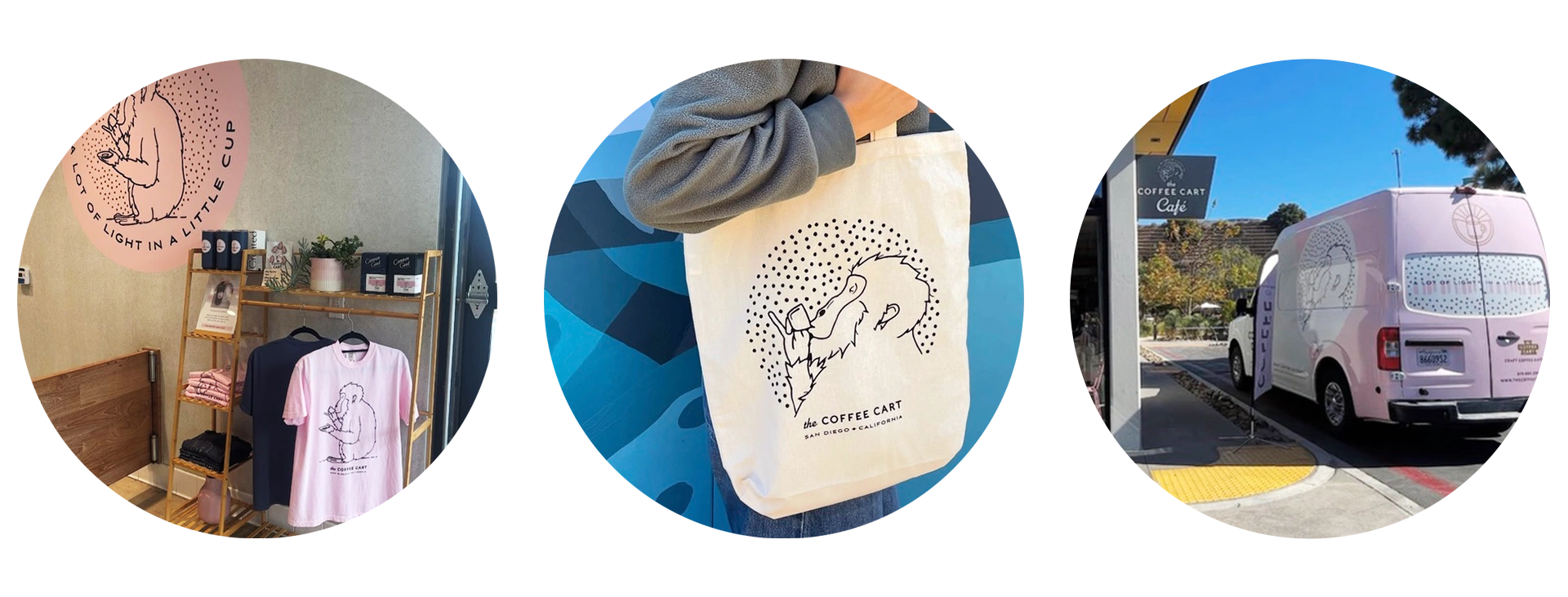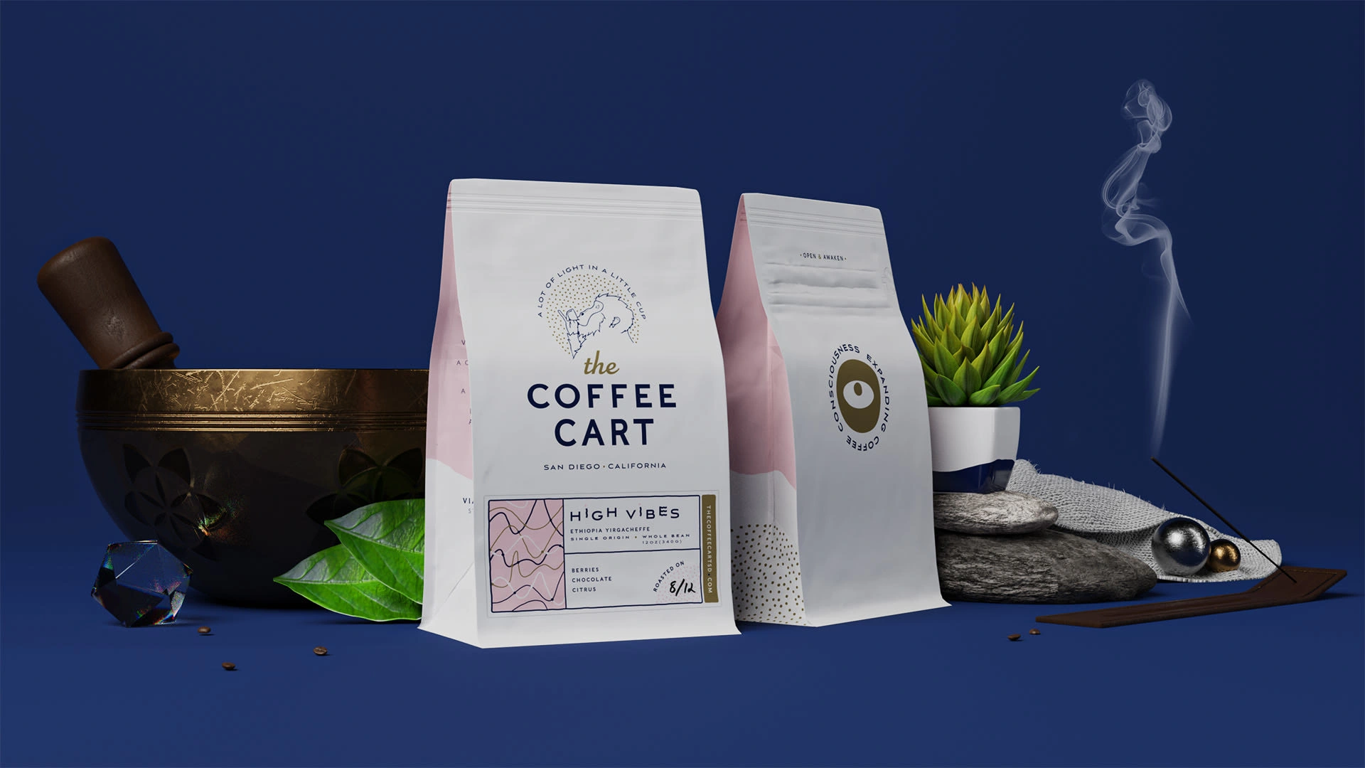Brand and packaging design for The Coffee Cart, a mobile coffee catering company and cafe in San Diego, CA.