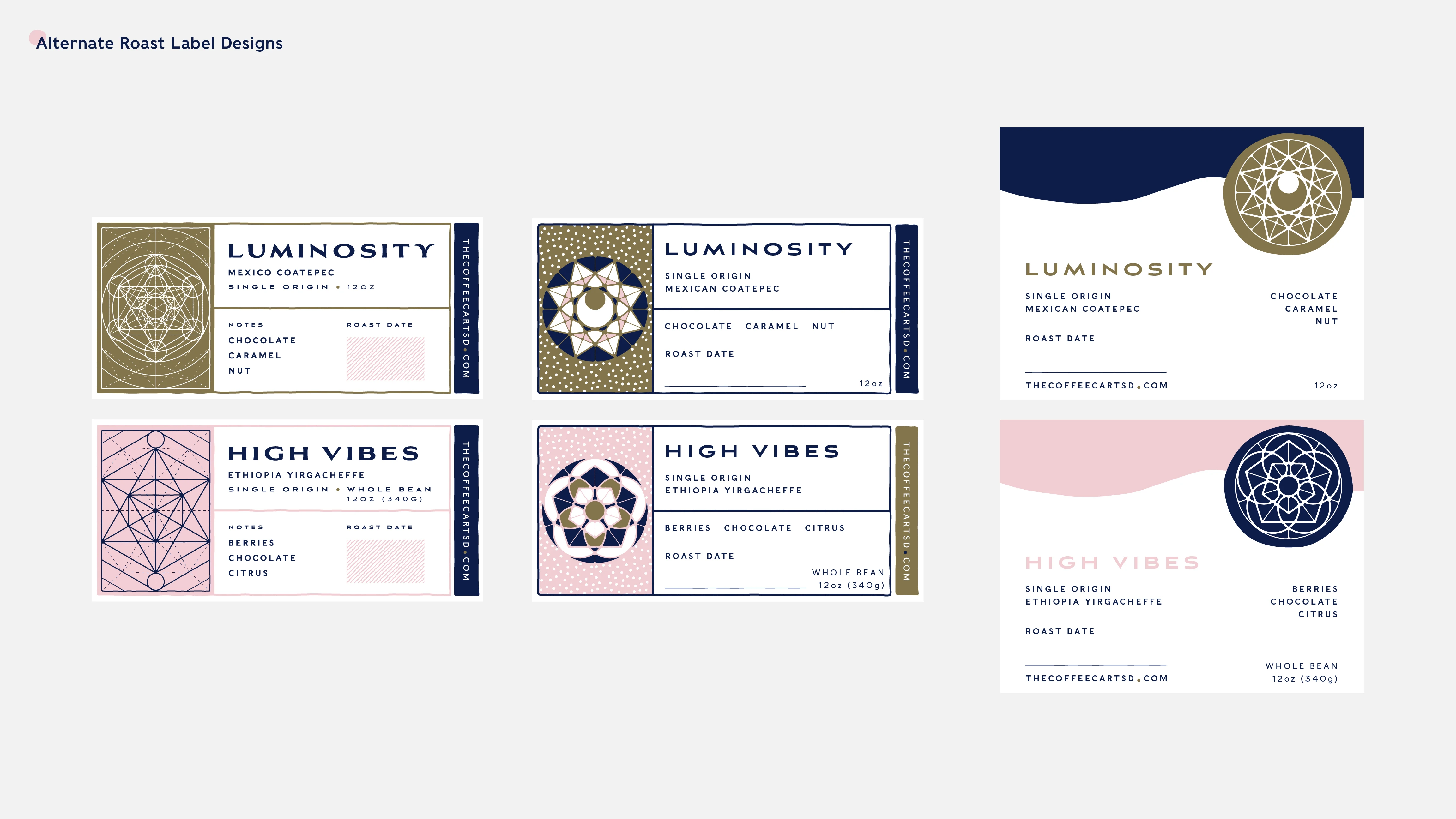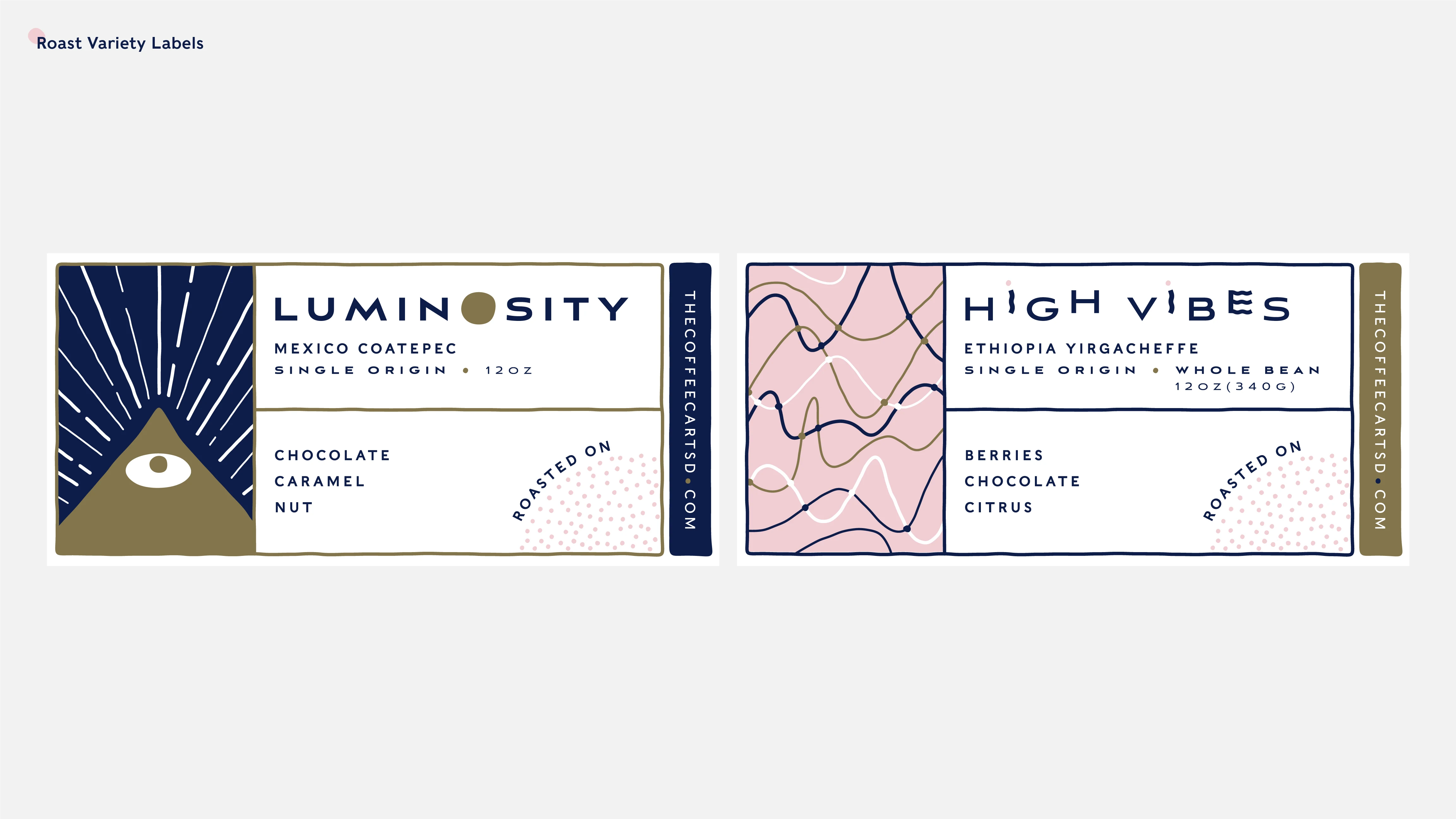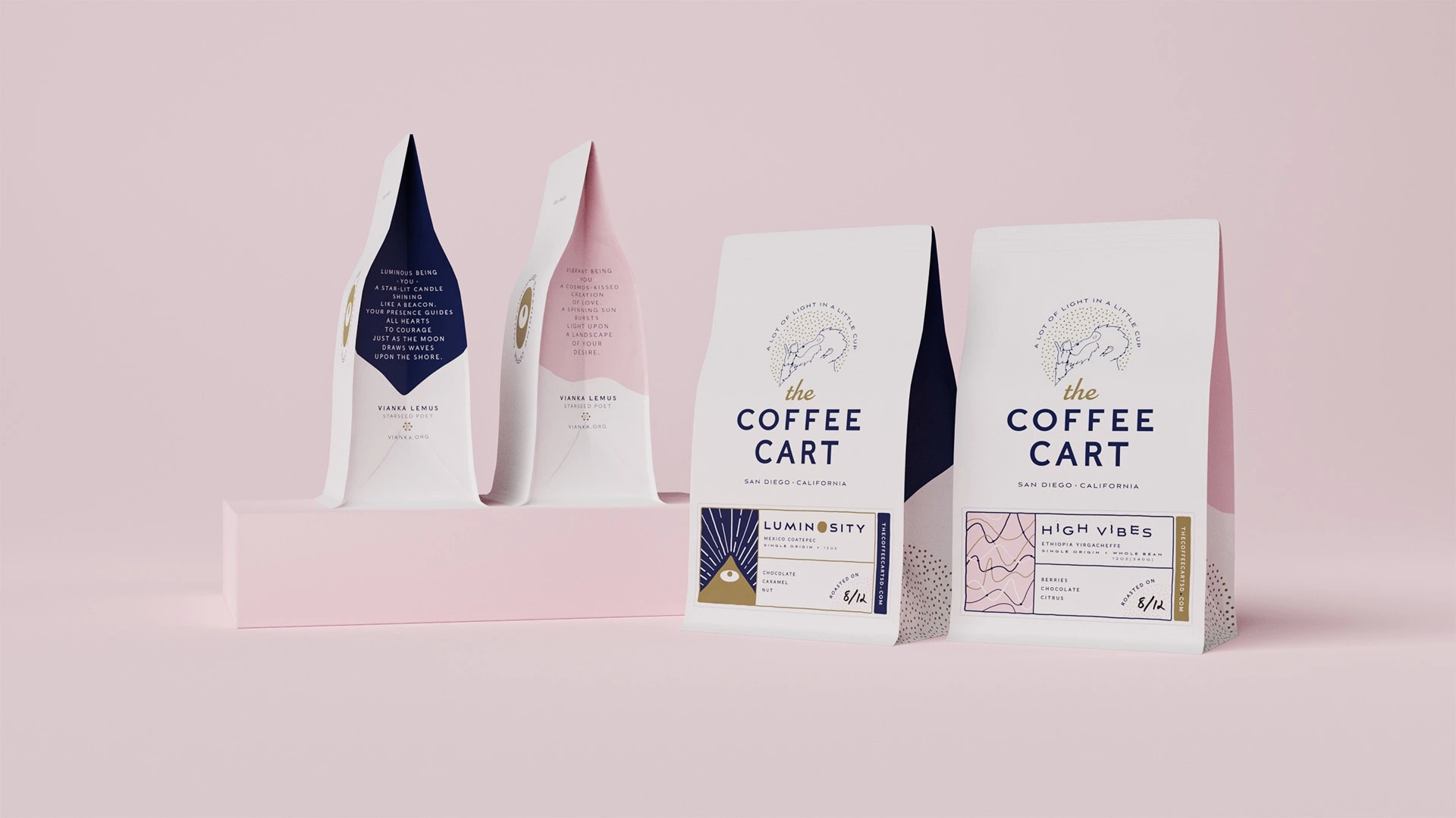 Brand and packaging design for The Coffee Cart, a mobile coffee catering company and cafe in San Diego, CA.