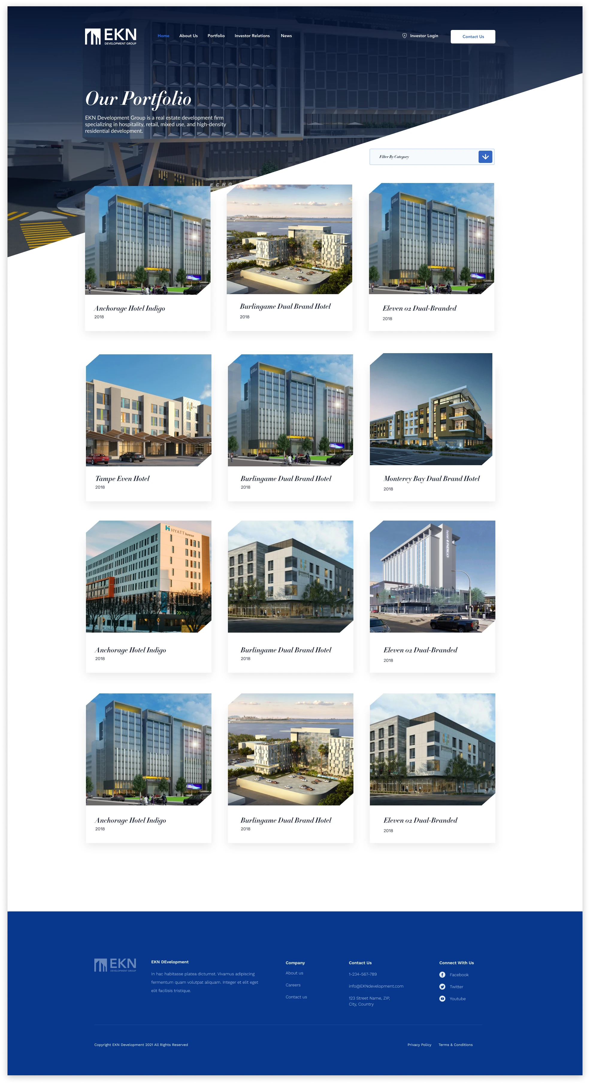 Designed a dynamic robust looking website for EKN Development with diagonal lines and a clean style to show off the quality of their projects.
