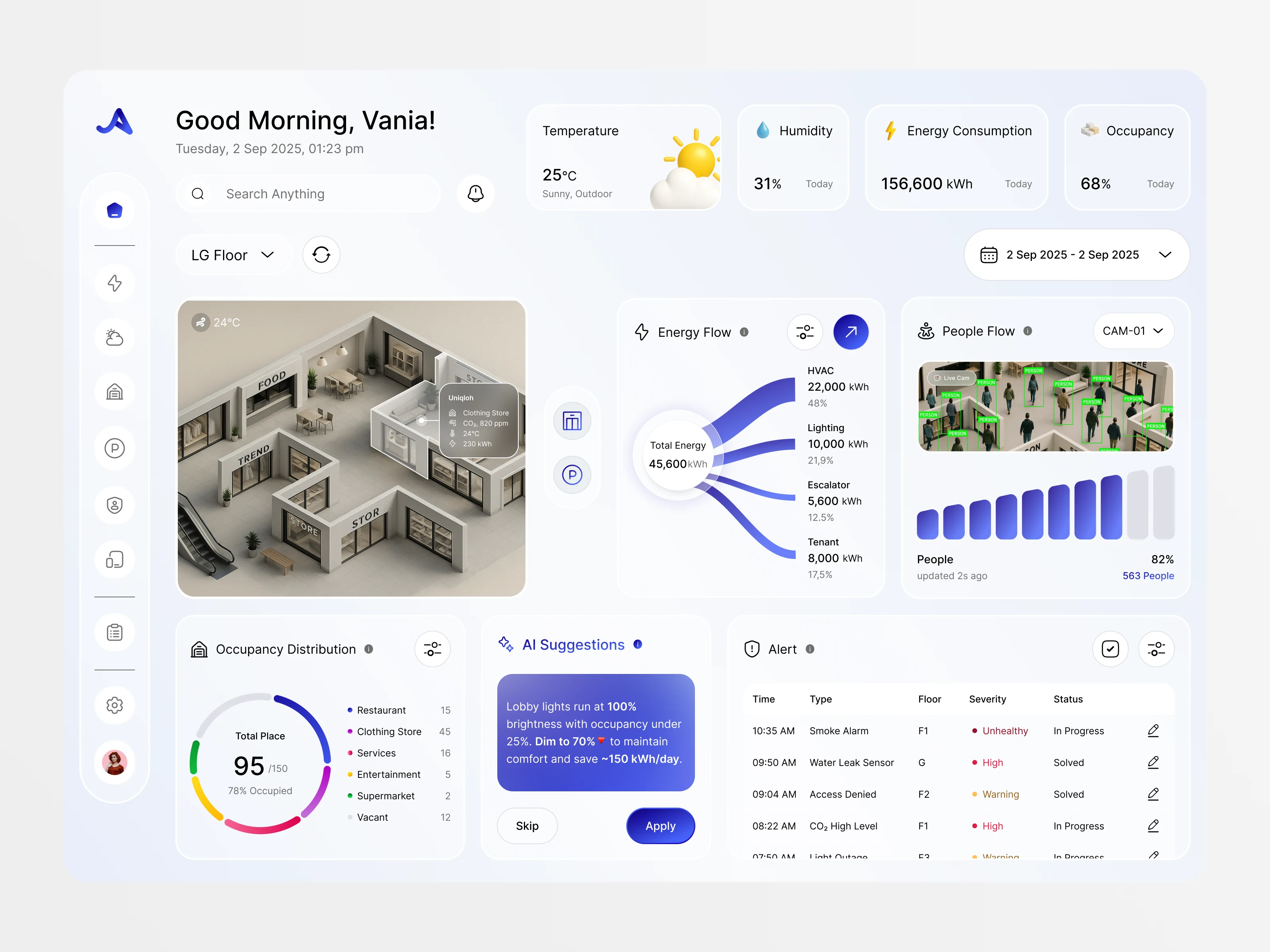 Aivion is an intelligent building management system that integrates IoT sensors and AI to monitor, control, and optimize building operations in real time.