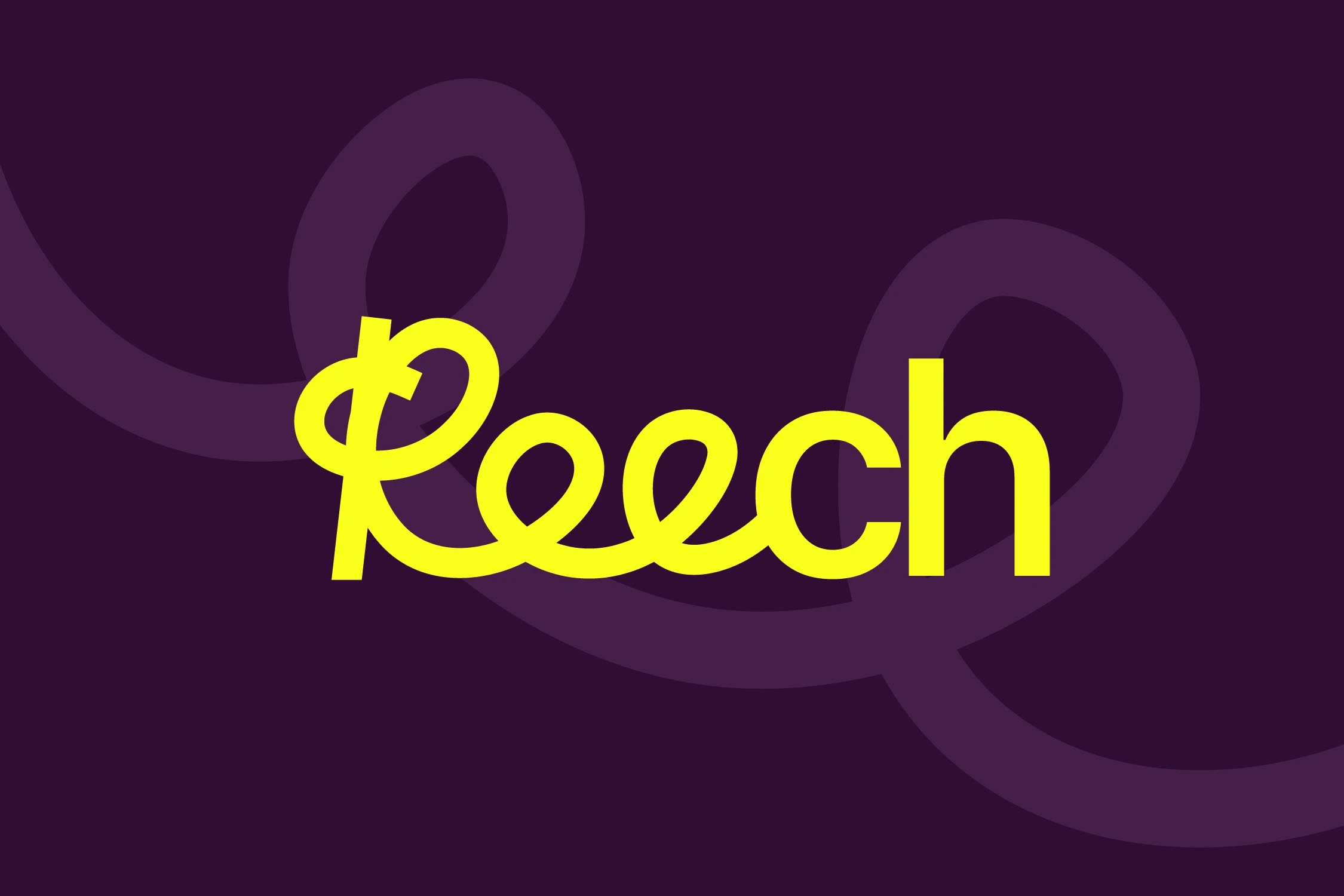 The Reech logo uses a smooth, continuous handwritten style that symbolizes creativity, fluidity, and human expression all core elements of modern content creation. The connected letterforms represent the flow of ideas, the link between creators and their audiences, and the upward journey of growth.