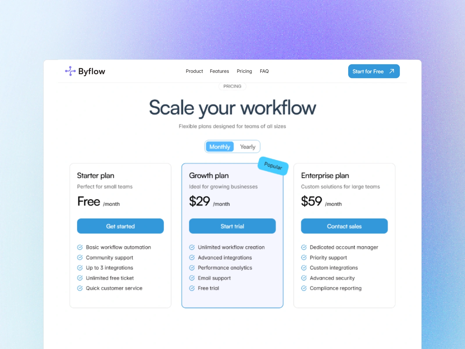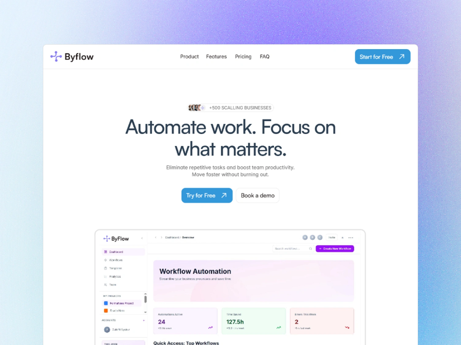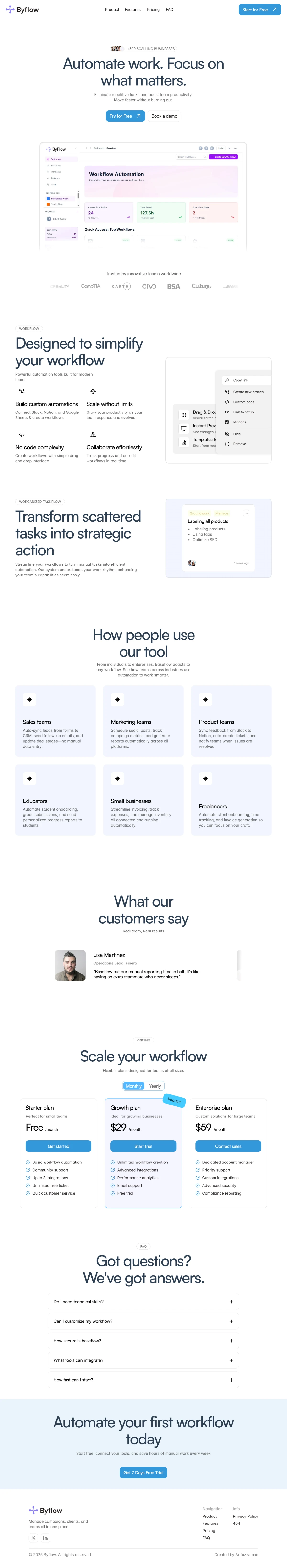 Byflow, a clean and modern SaaS landing page built with a focus on clarity, structure, and motion.