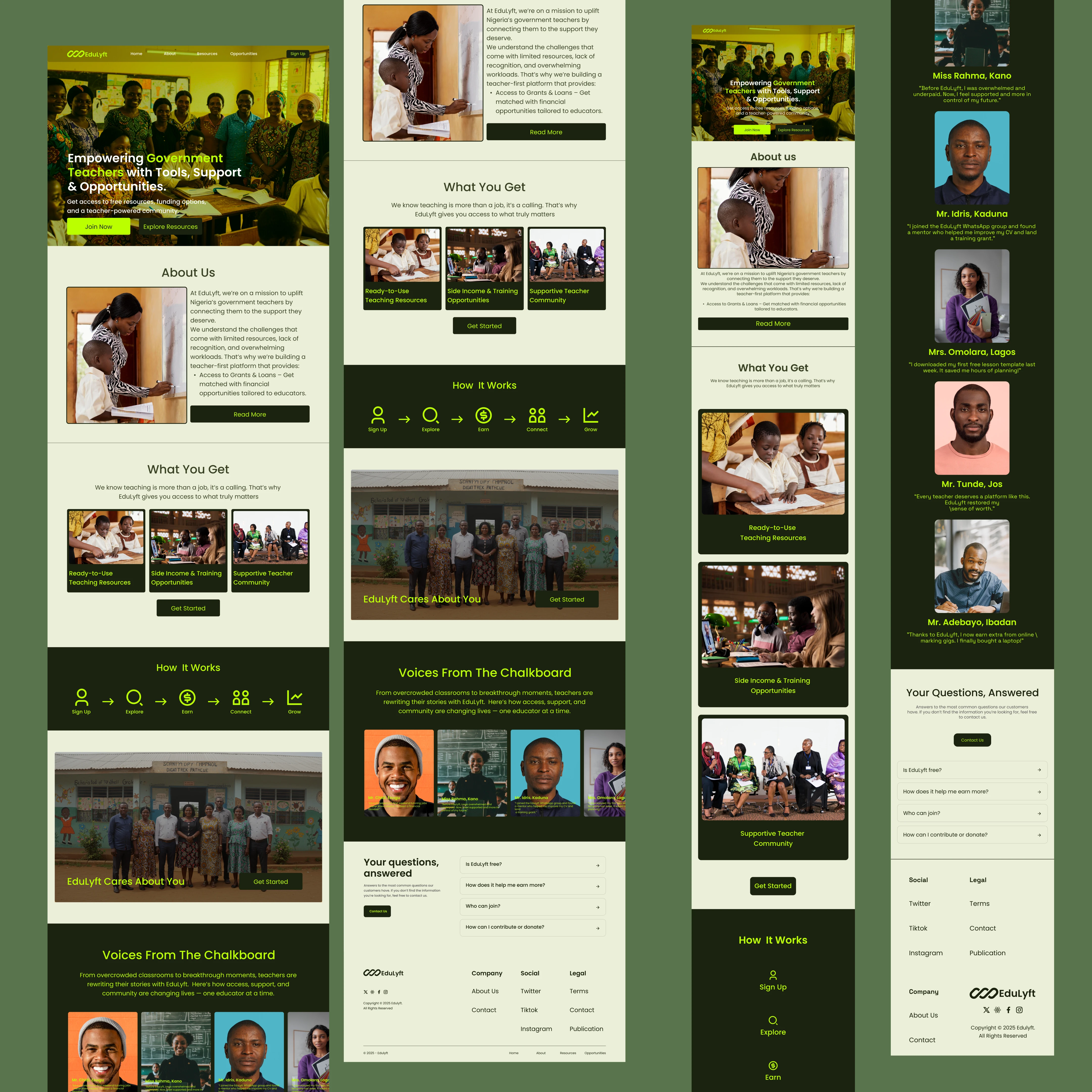 The purpose of the Edulyft landing page is to attract and support government teachers with tools, training, and opportunities.