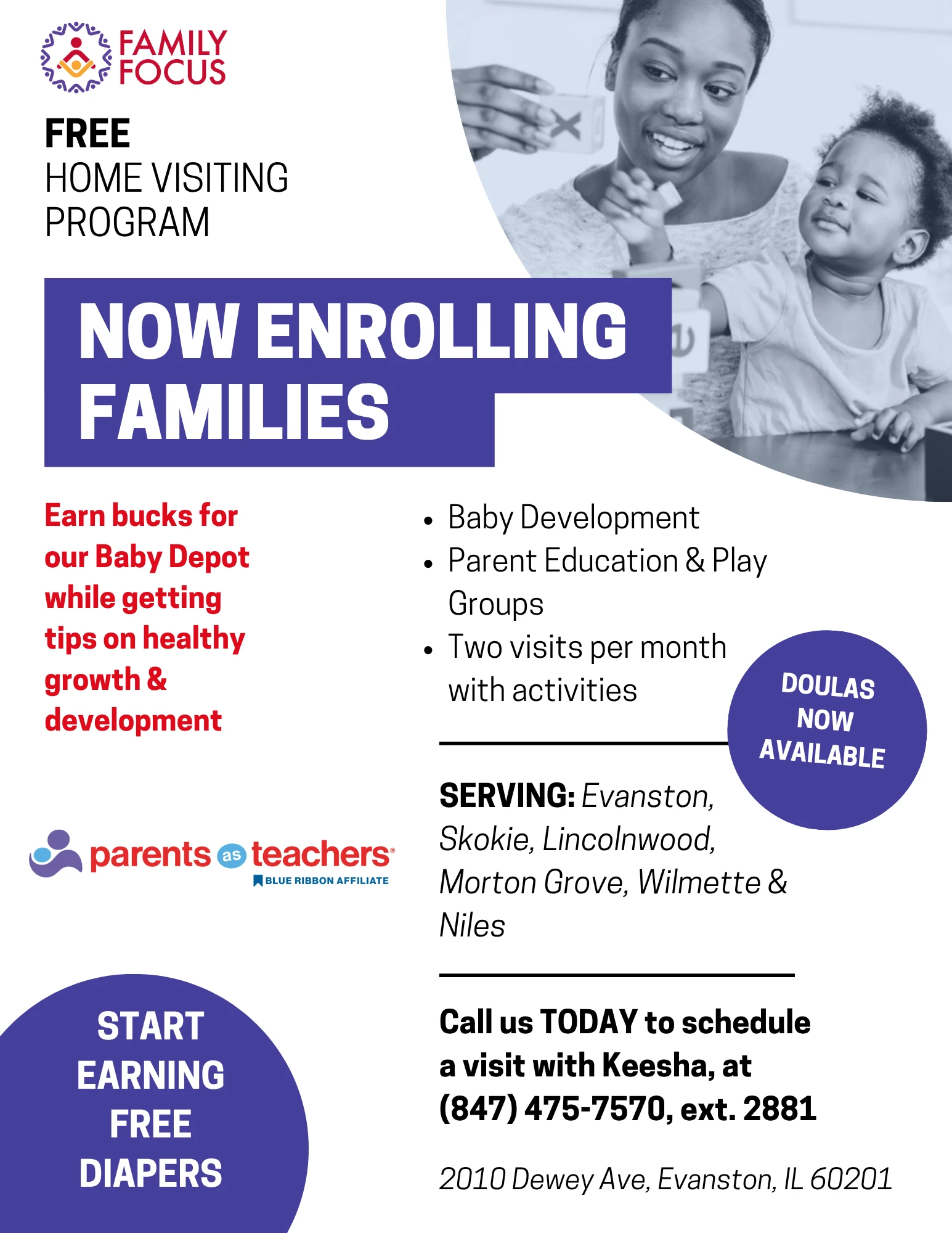 Created graphic content for the nonprofit, Family Focus, promoting their programs including: home visiting, after school & food pantry to the Evanston area