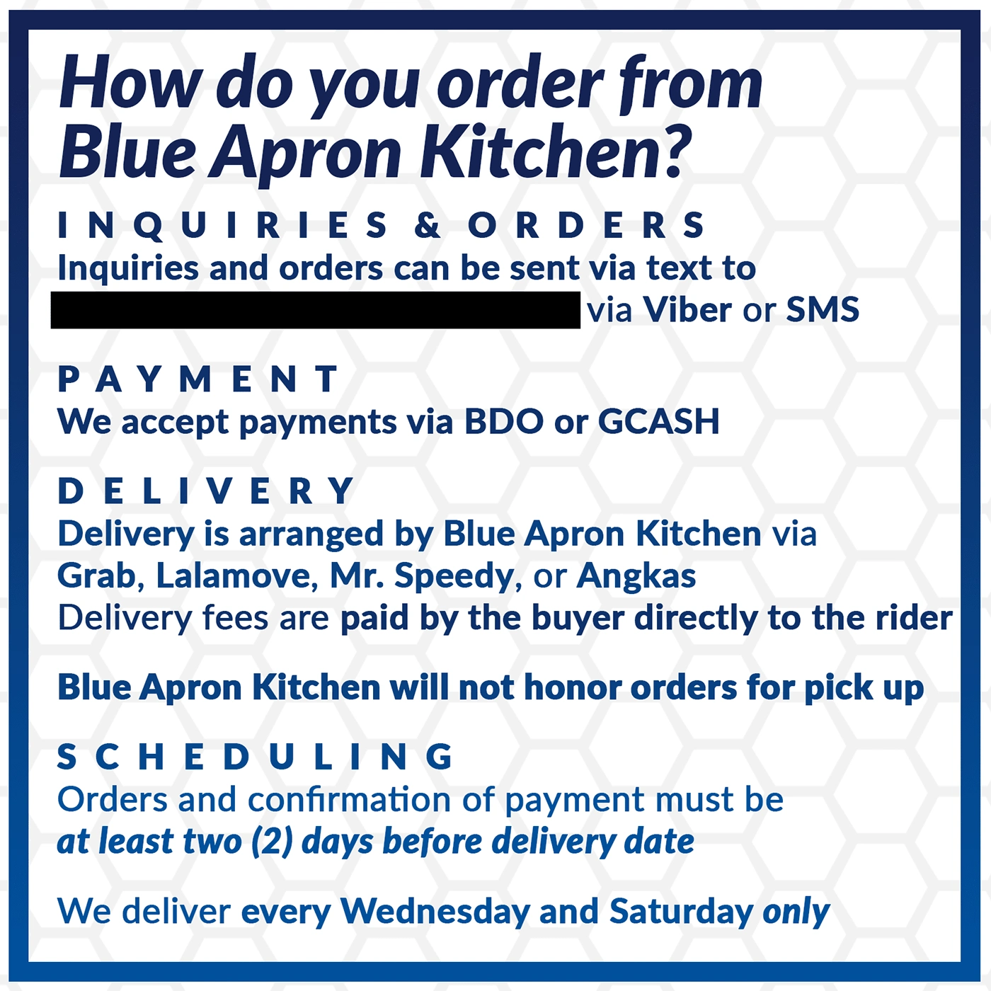 This project began in June and was completed in October 2020 for Blue Apron Kitchen, a ghost kitchen that operates in my native country of the Philippines.