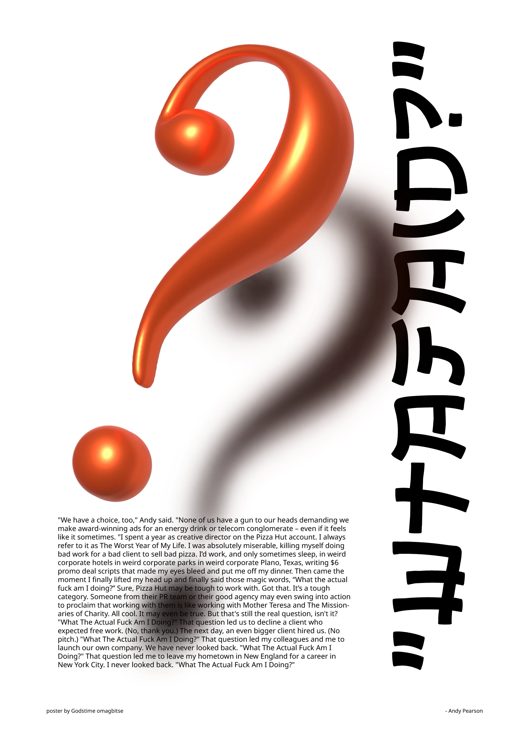 In my recent poster explorations I have explored developing unique concepts with coded meanings to convey certain ideas and emotions. I have also started experimenting with incorporating 3D elements. These are the ones out for now, more to come later on.
