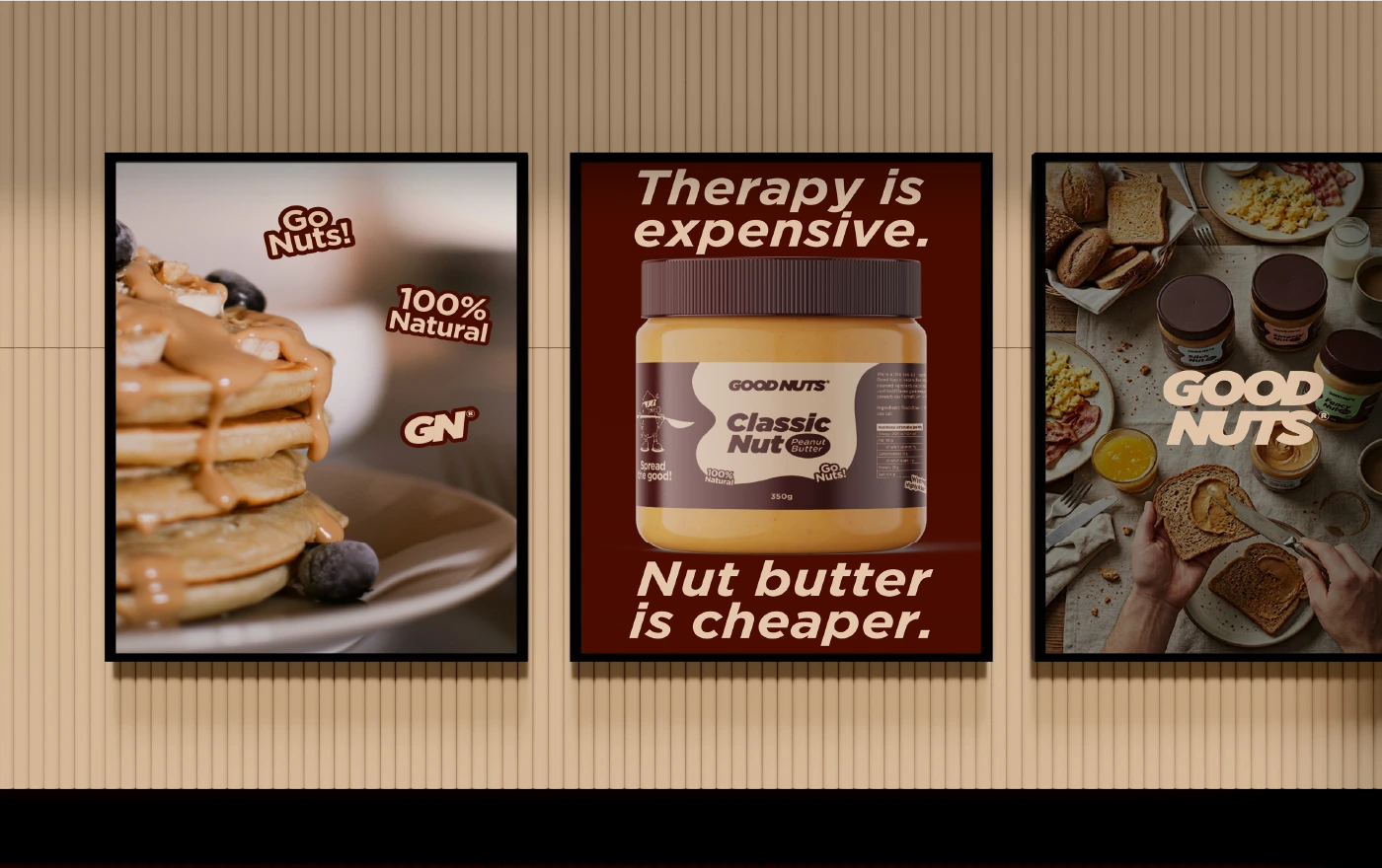 Good Nuts is a nut butter brand that focuses on creating sustainably made, consciously sourced spreads without compromising on taste or personality. The brand aims to make everyday products more enjoyable by combining simple, natural ingredients with bold flavors and a playful attitude. Rather than following traditional health food conventions, Good Nuts is designed to feel approachable, fun, and proudly displayed in everyday life. At its core, the brand promotes a balance between conscious living and enjoyment, proving that doing good can still feel light, expressive, and a little bit cheeky.