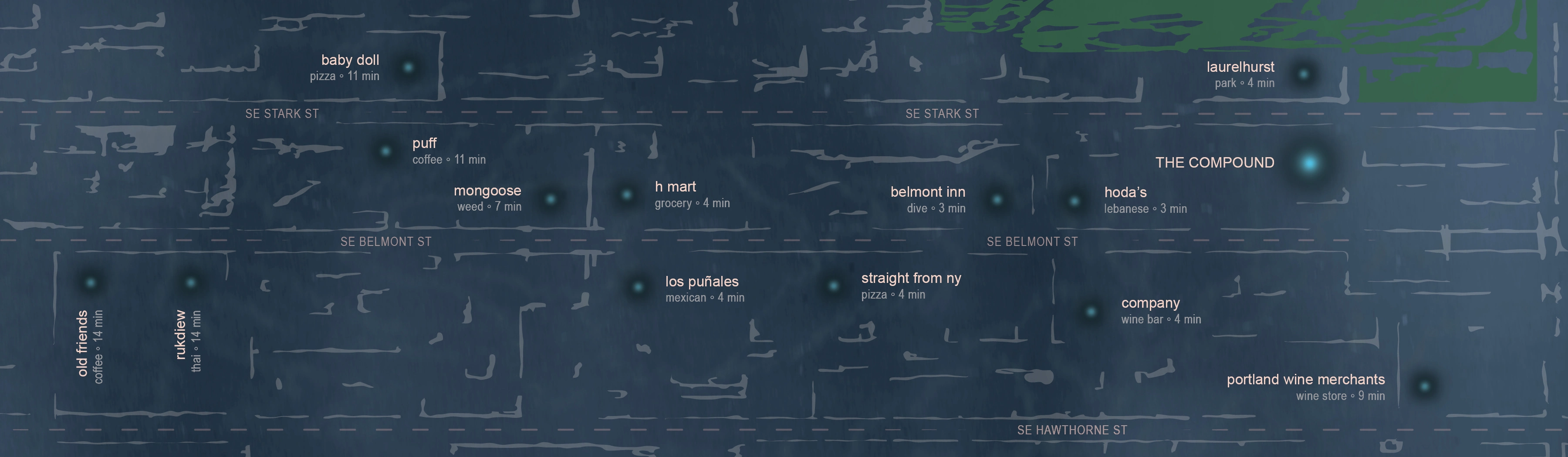 Drift needed a printed pamphlet to disperse to attendees at the event. Pages included About, a map of local businesses, performance schedules, and a list of artists. While there was room for creativity, it needed to align with Drift's vibe and visual cues established in existing collateral, which were inspired by topographical maps, flowing rivers, and gritty earth.