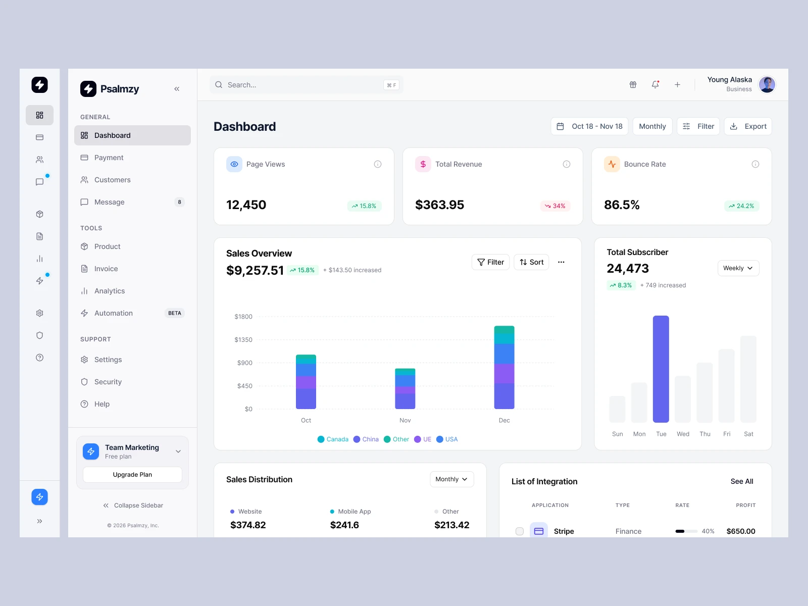 A modern, comprehensive analytics and management dashboard designed for SaaS applications and internal business tools.