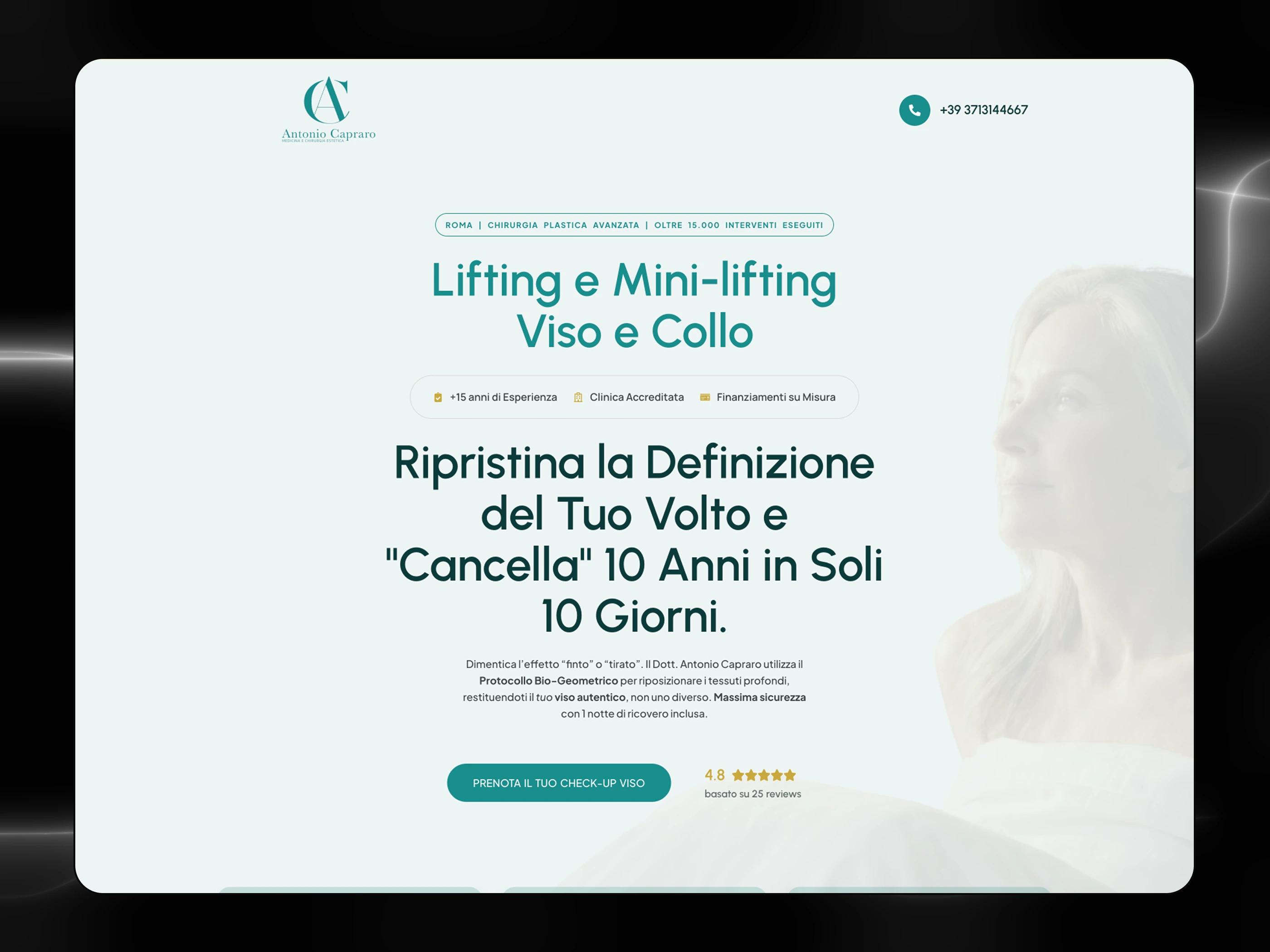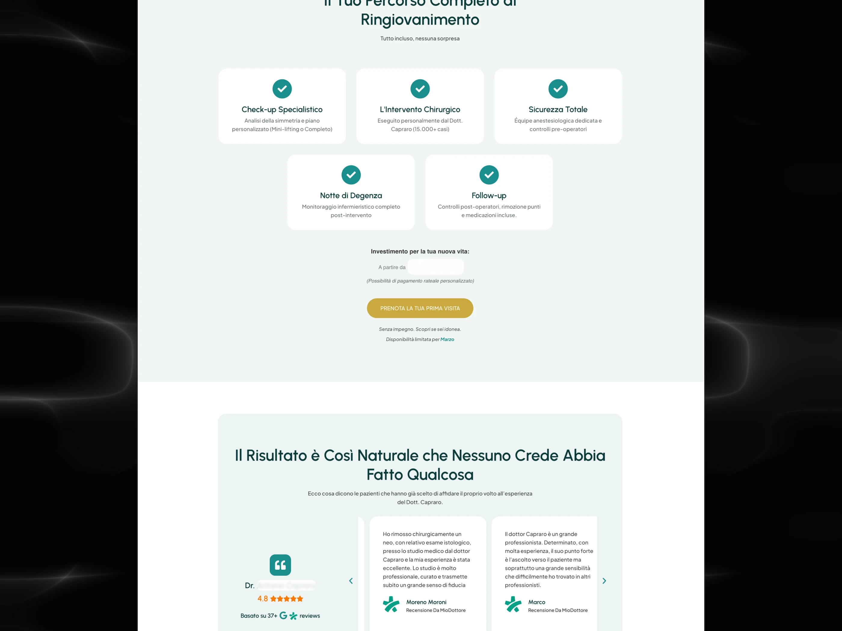 The objective, in synergy with the marketing agency, was to create an acquisition tool capable of addressing every objection before the initial contact. The landing page aimed to elevate the surgeon's positioning, turning a clinical search into a journey of trust. A key strategic focus was price transparency: including the costs acted as a primary filter, ensuring the surgeon received only highly qualified leads who were fully aware of the required investment.