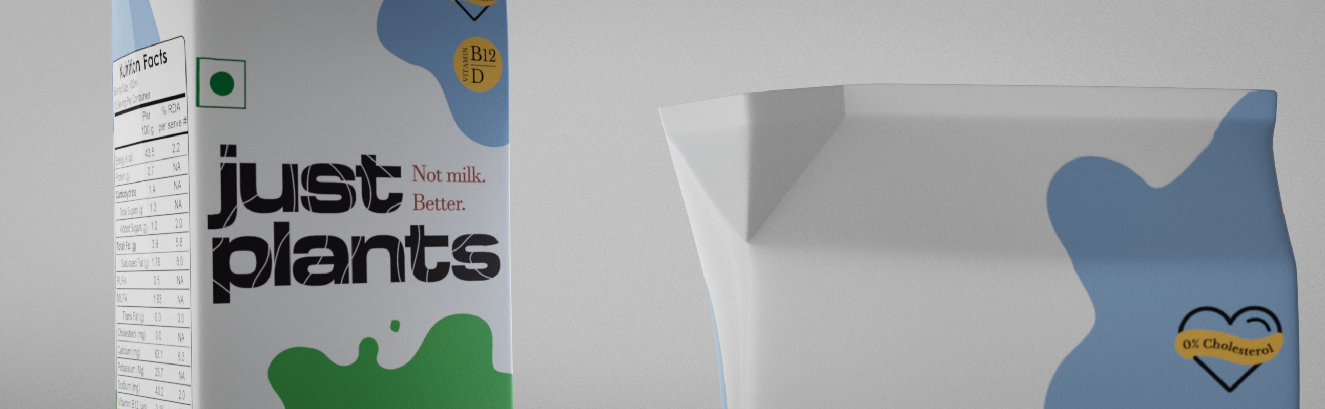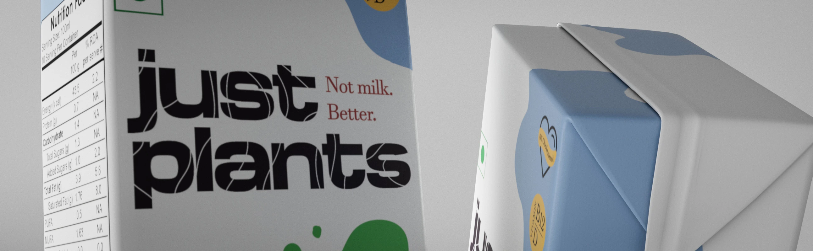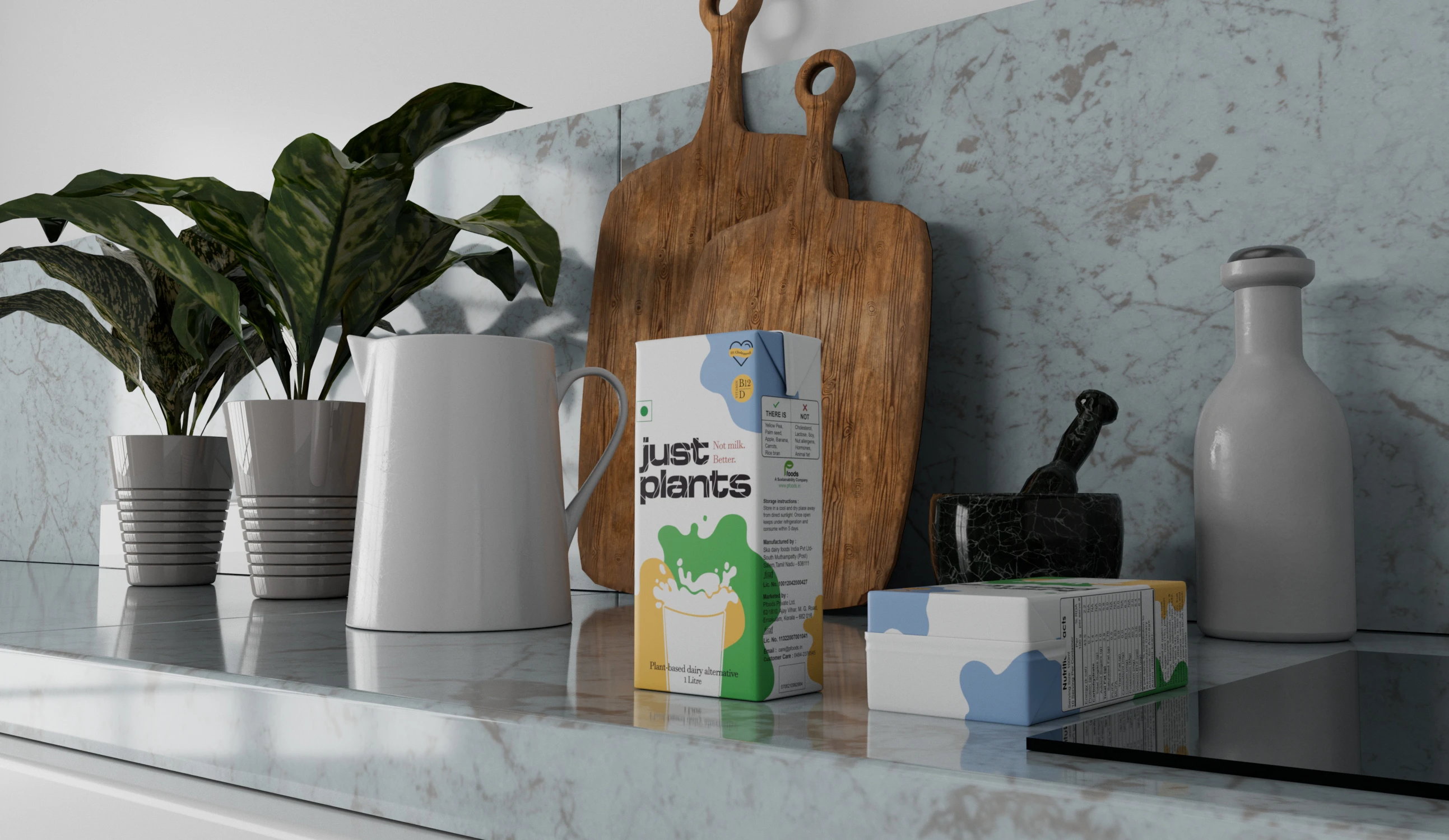 Designed packaging and branding for Just Plants, showcasing 3D renders and mockups that highlight the brand’s natural, plant-based identity.
