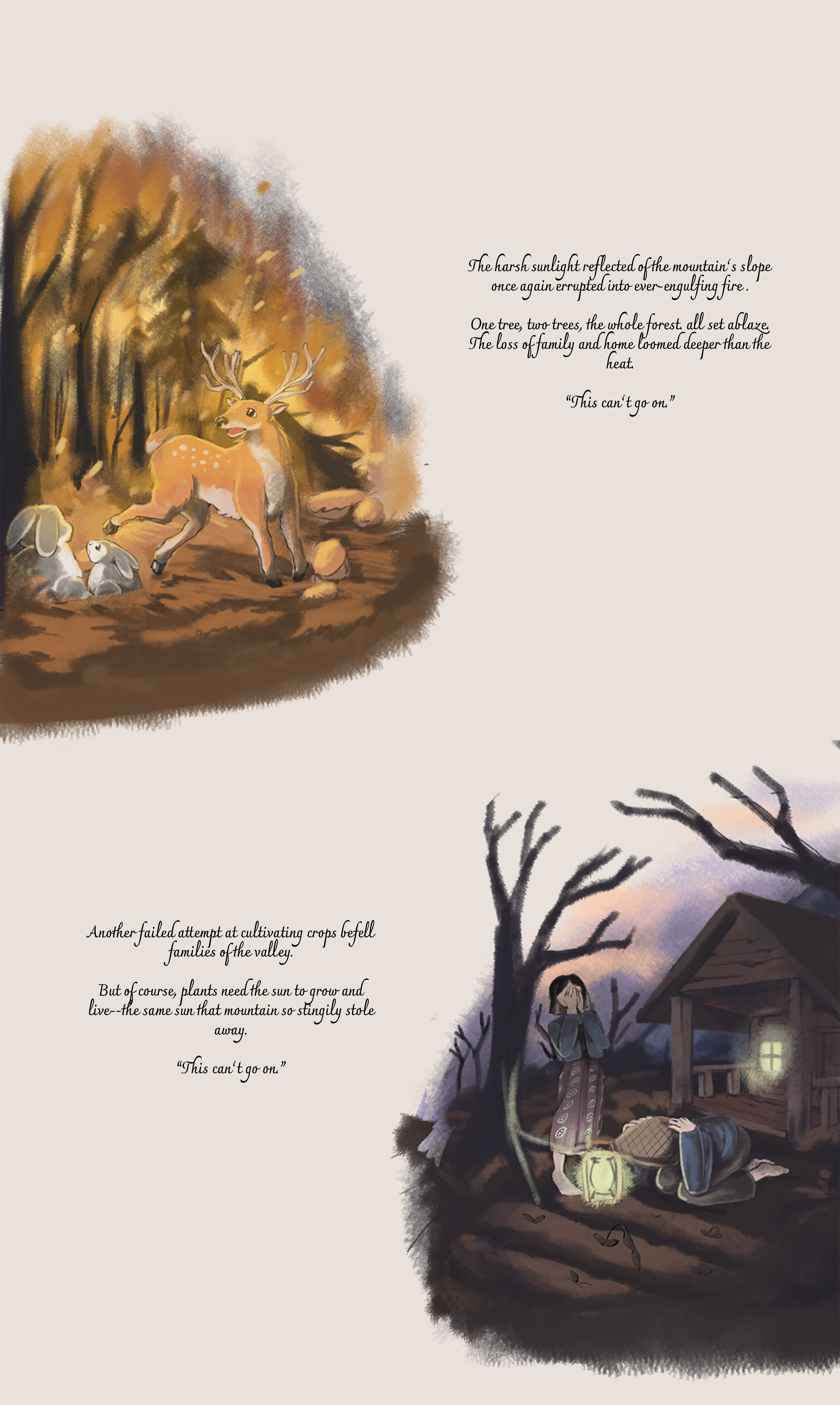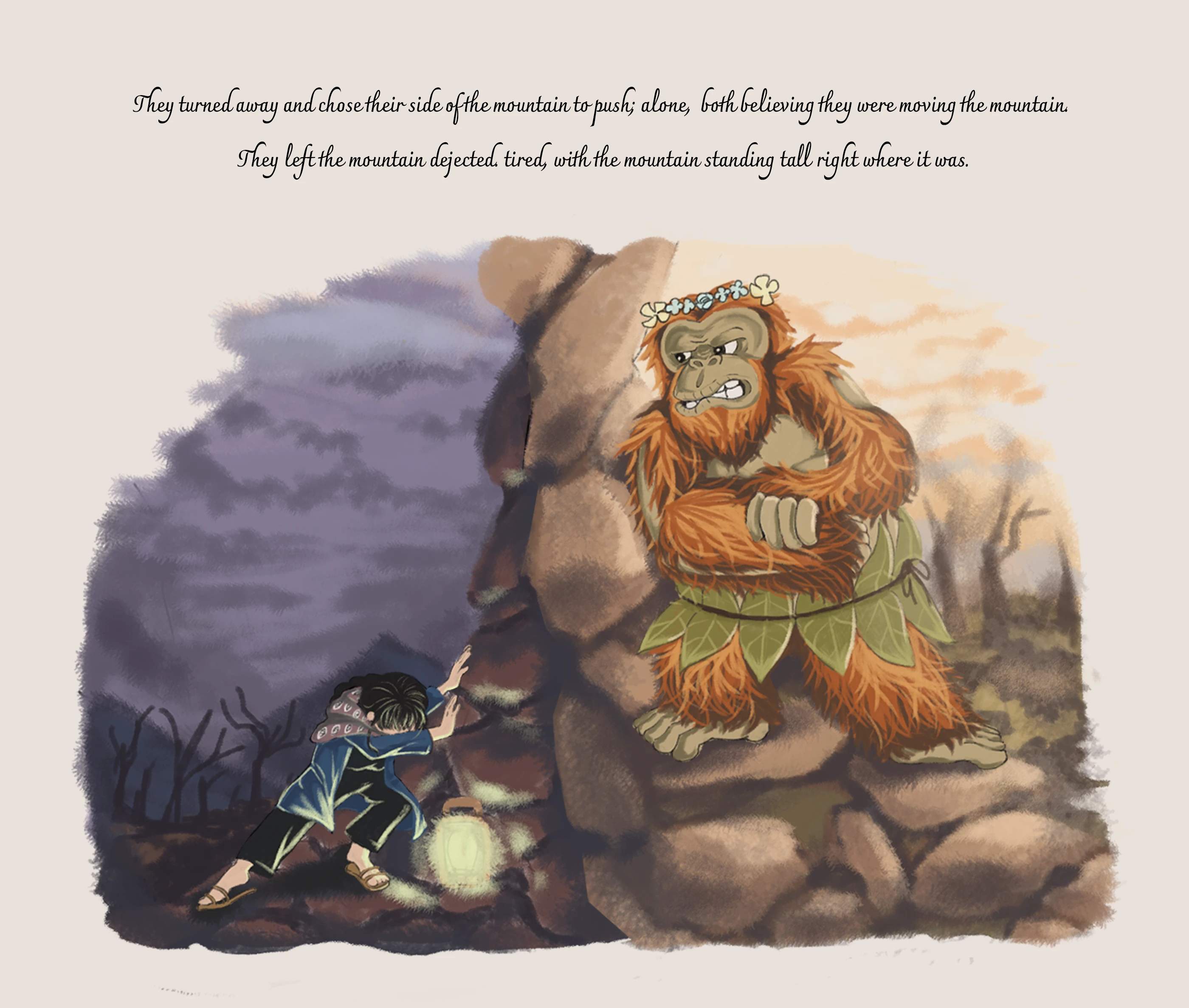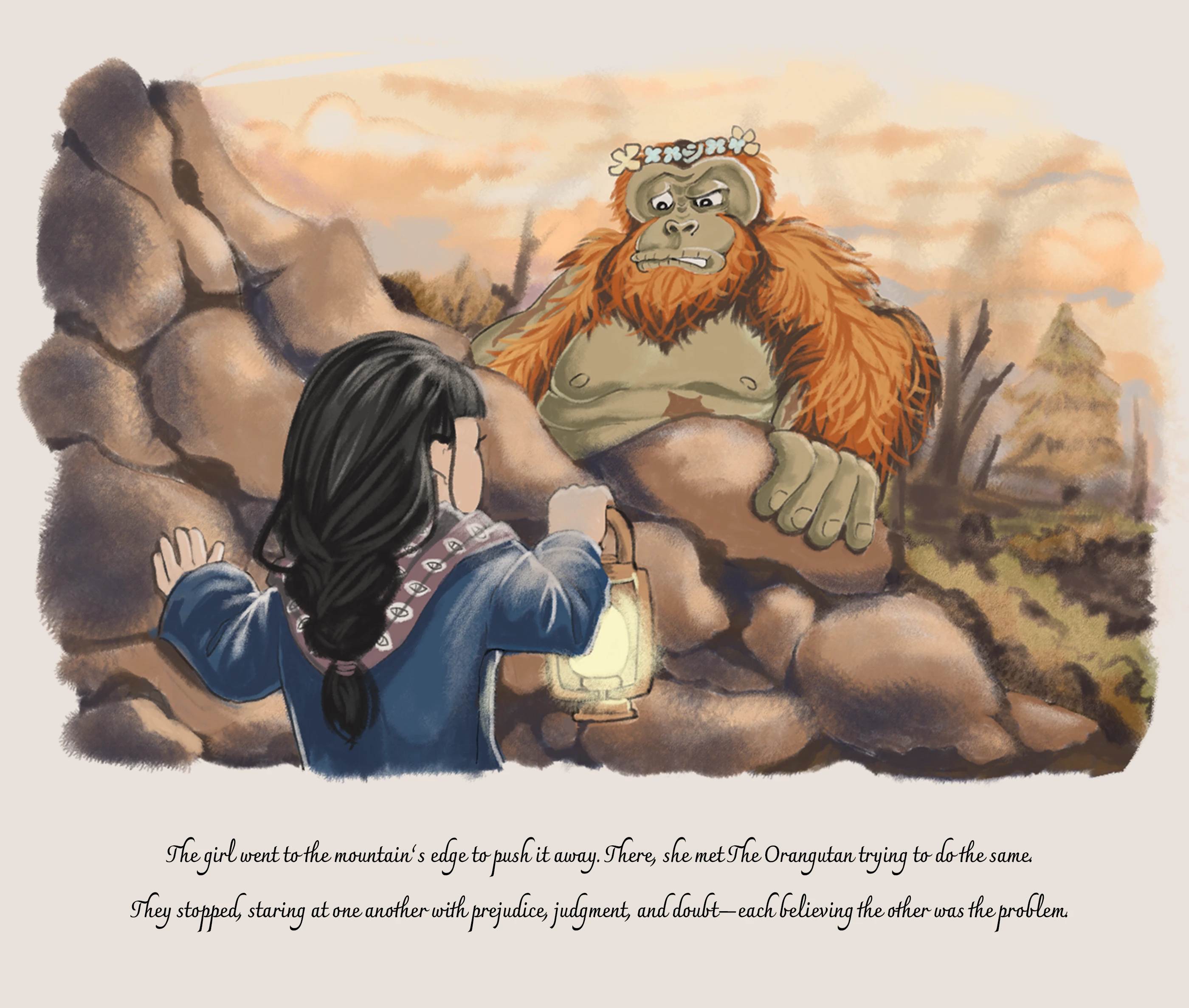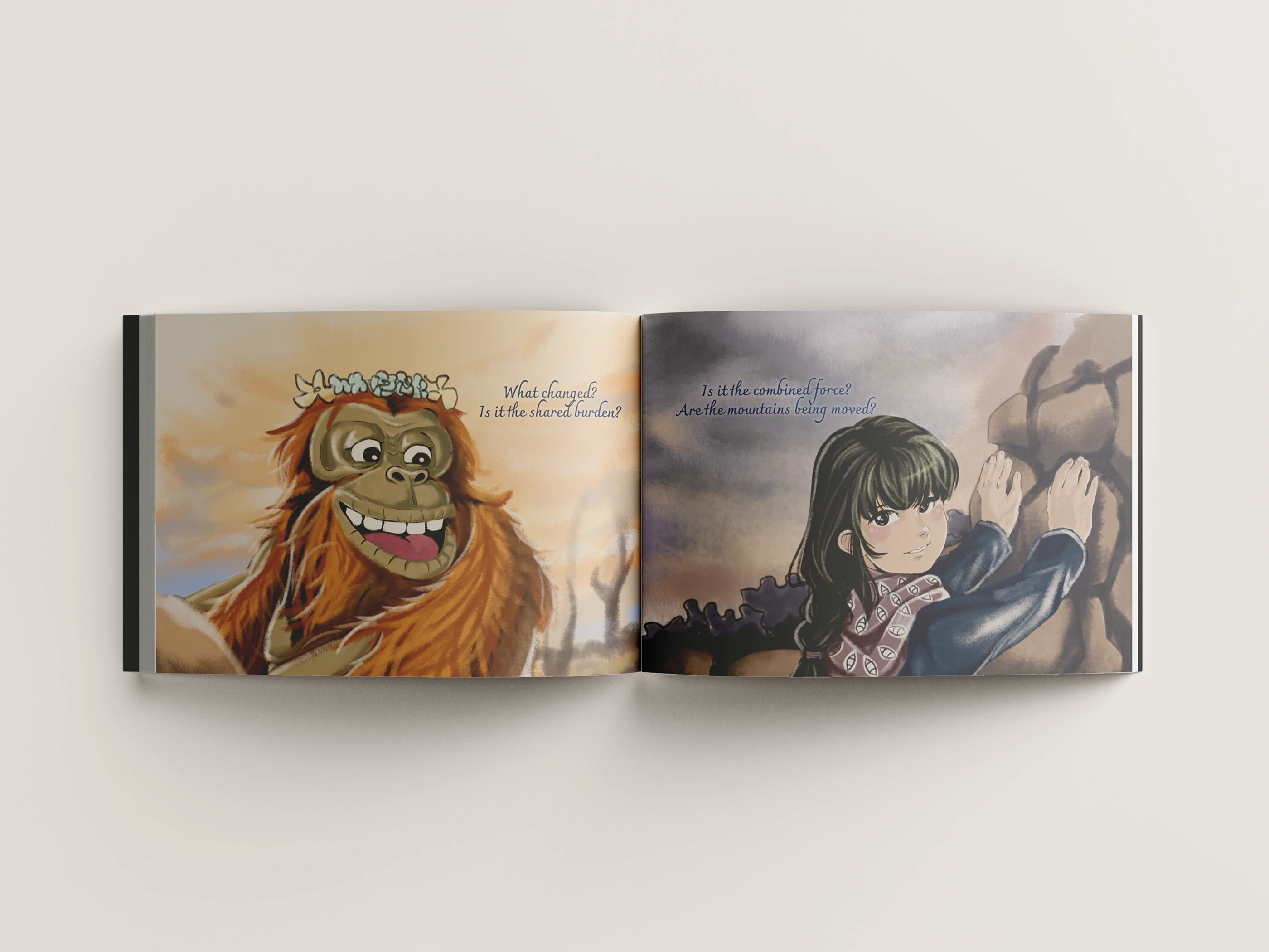 To Move a Mountain is an editorial illustration study developed as a storybook. The project explores the synergy between poetic visual metaphors and long-form storytelling, utilizing the book format as a medium where illustration functions as the primary narrator. Through a meticulous approach to character expression and atmospheric environment design, the storybook visualizes the internal conflict and emotional journey of two characters overcoming prejudice.