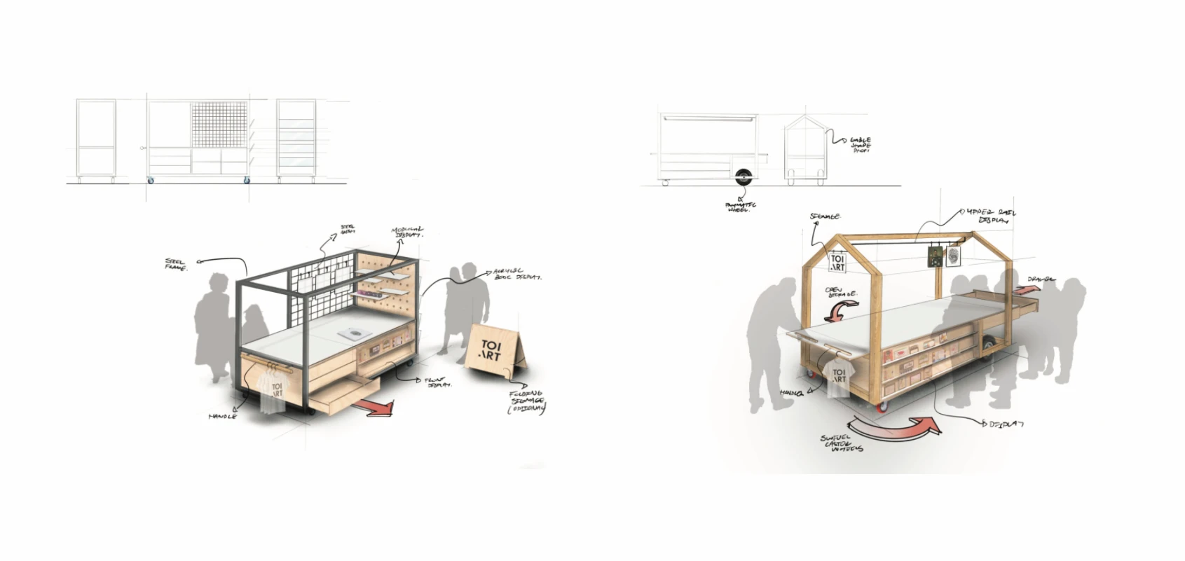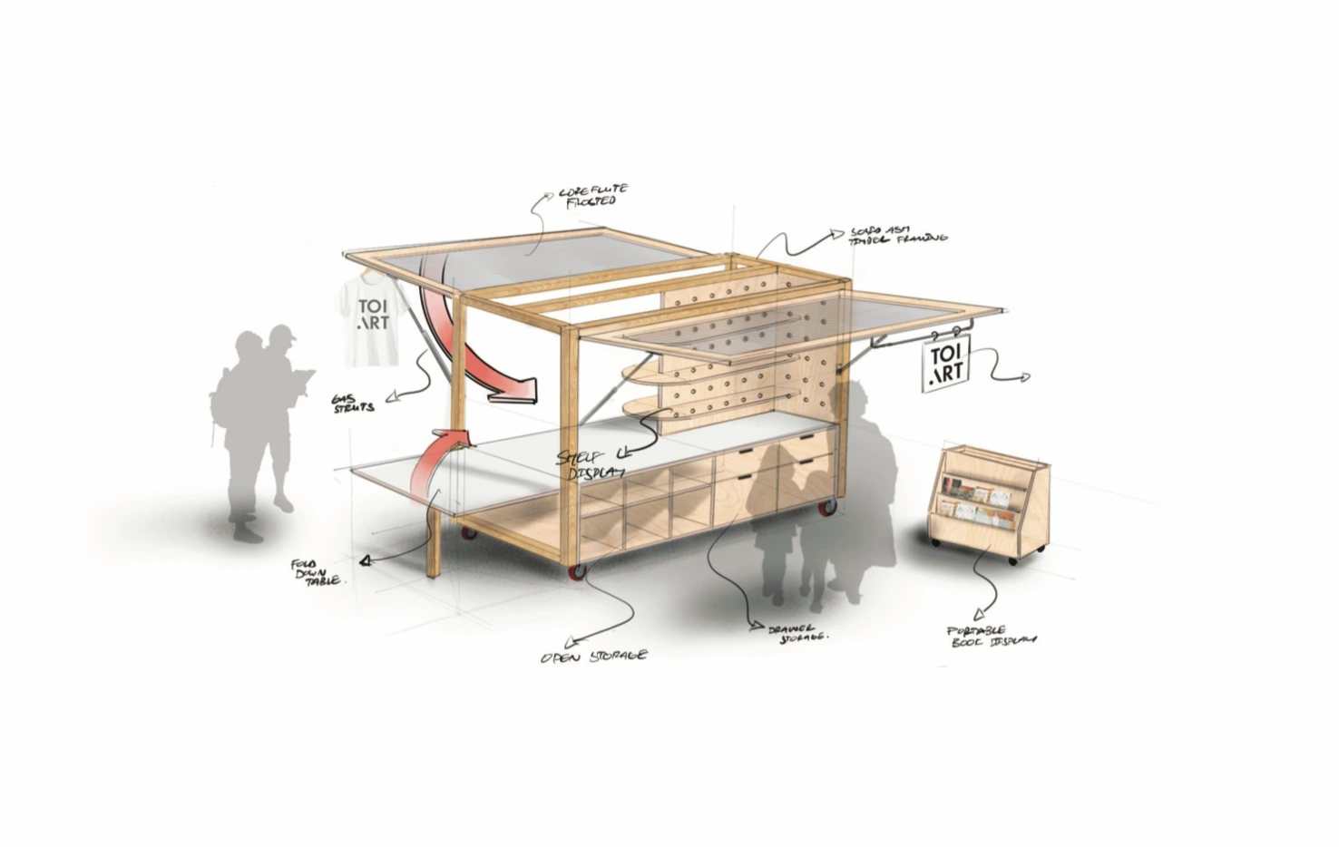 I Was approached by the Museum of New Zealand Te Papa to design a portable retail cart that would be stationed at the exit of their rolling exhibits.