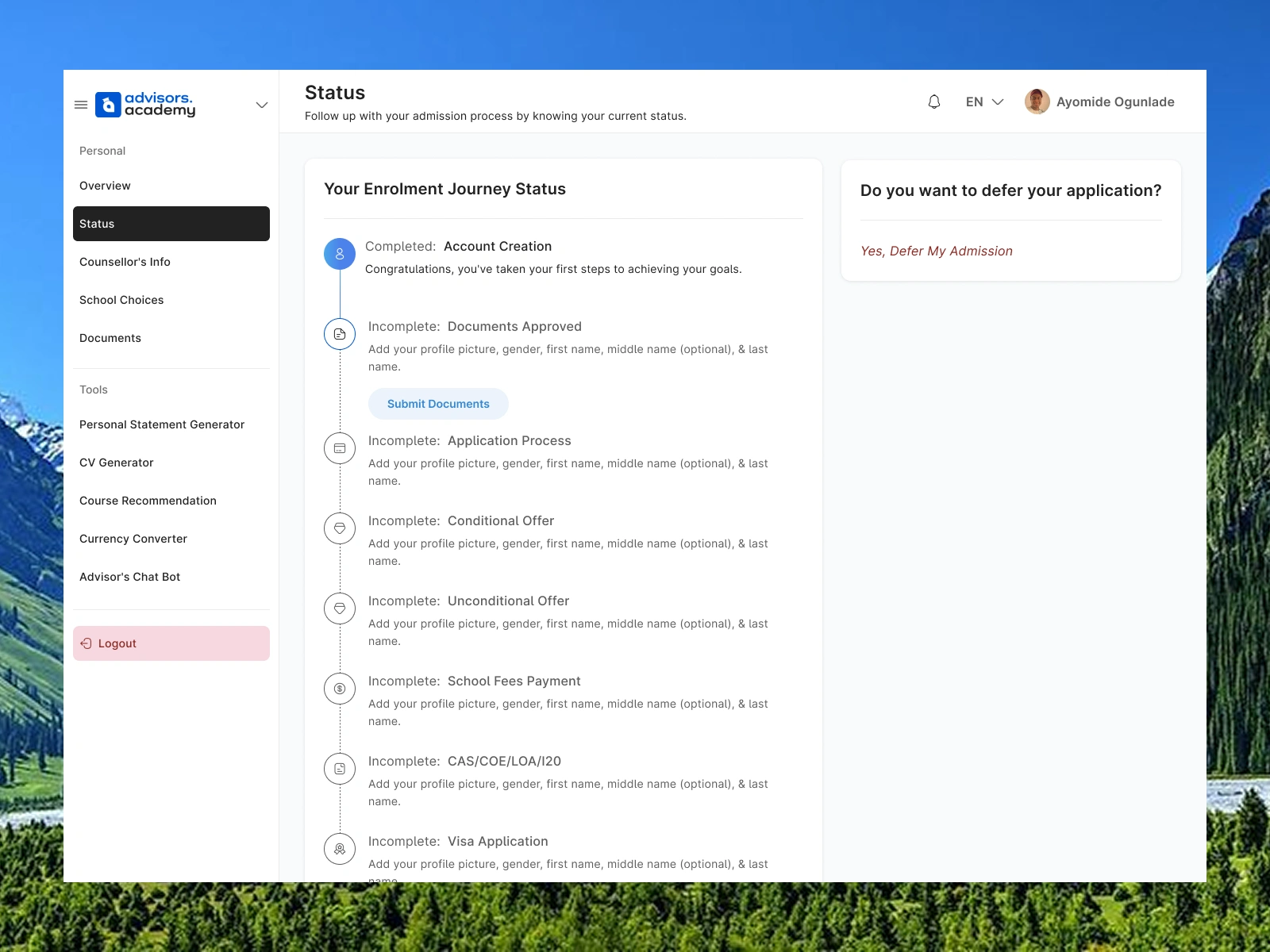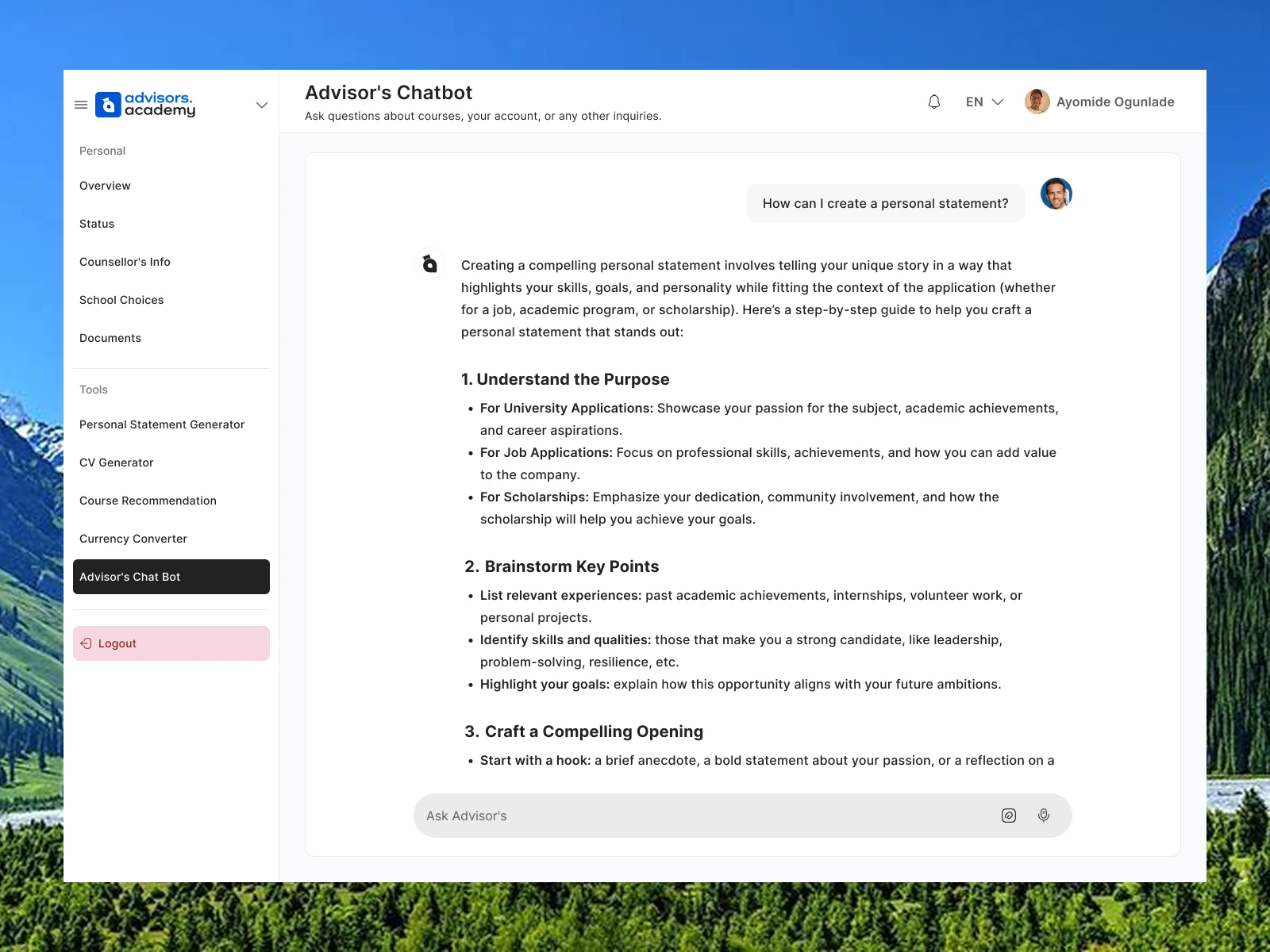 • AI-powered search functionality and student-focused tools such as a CV generator, course recommendation system, currency converter, and an intelligent chatbot