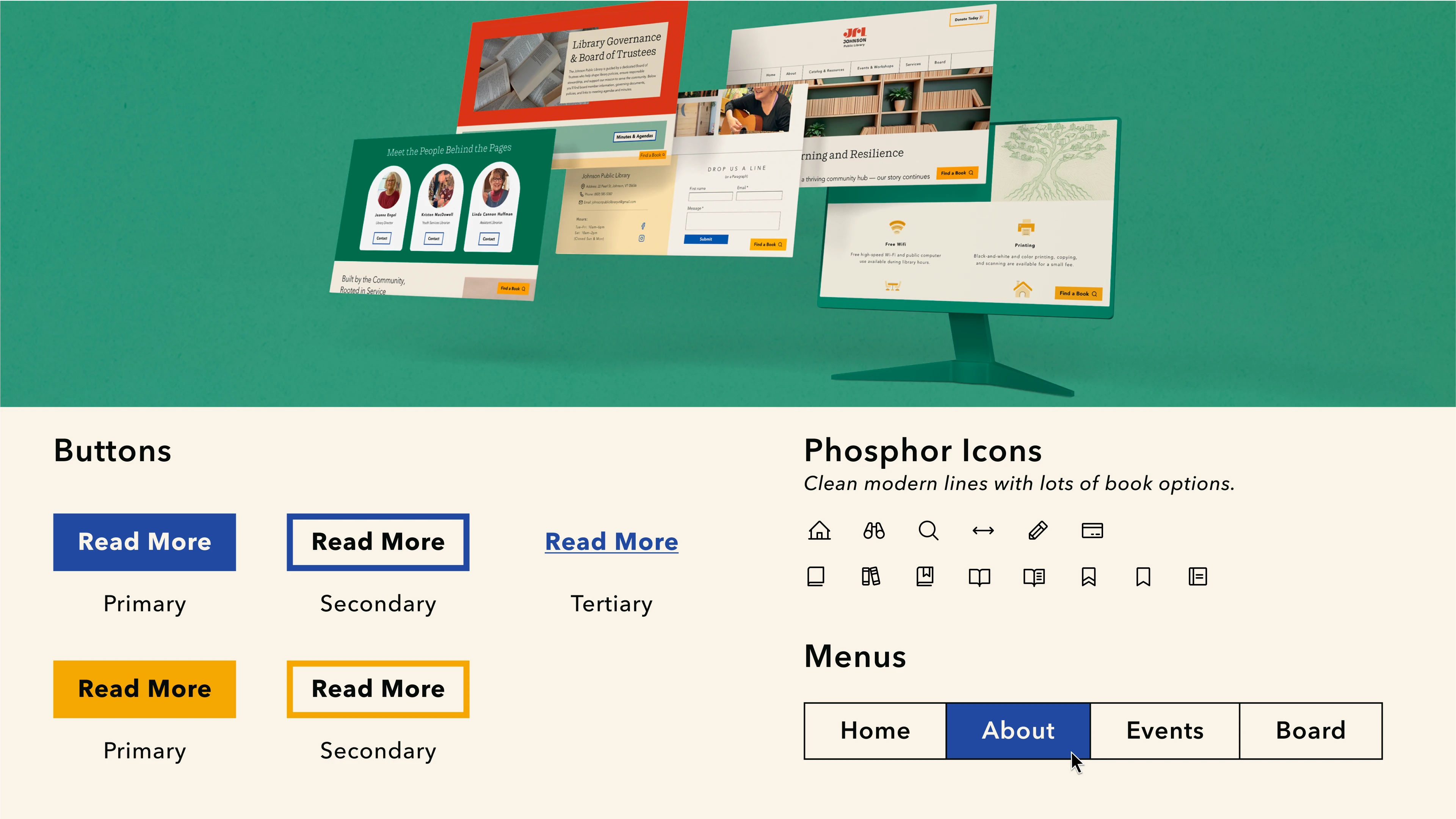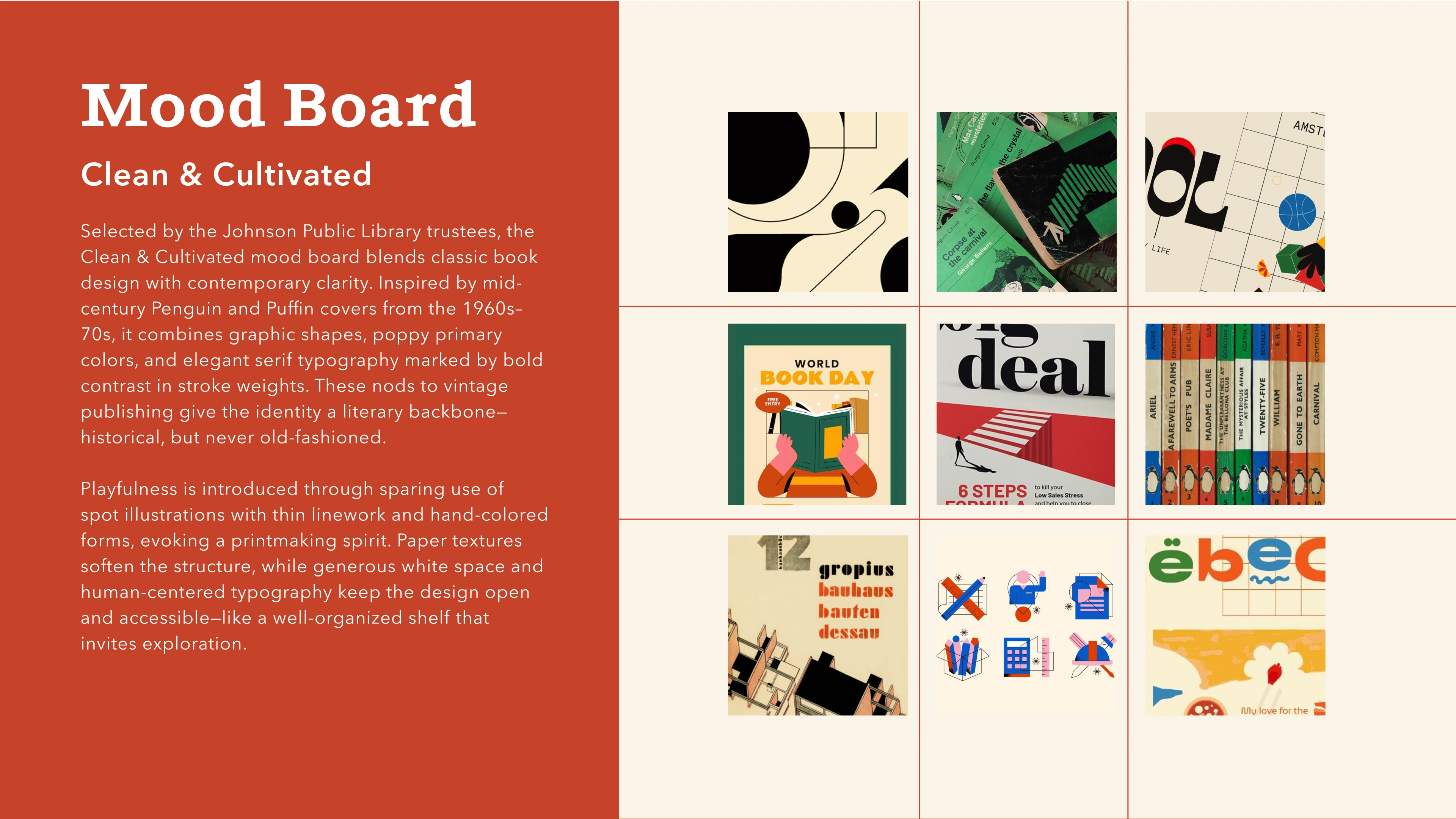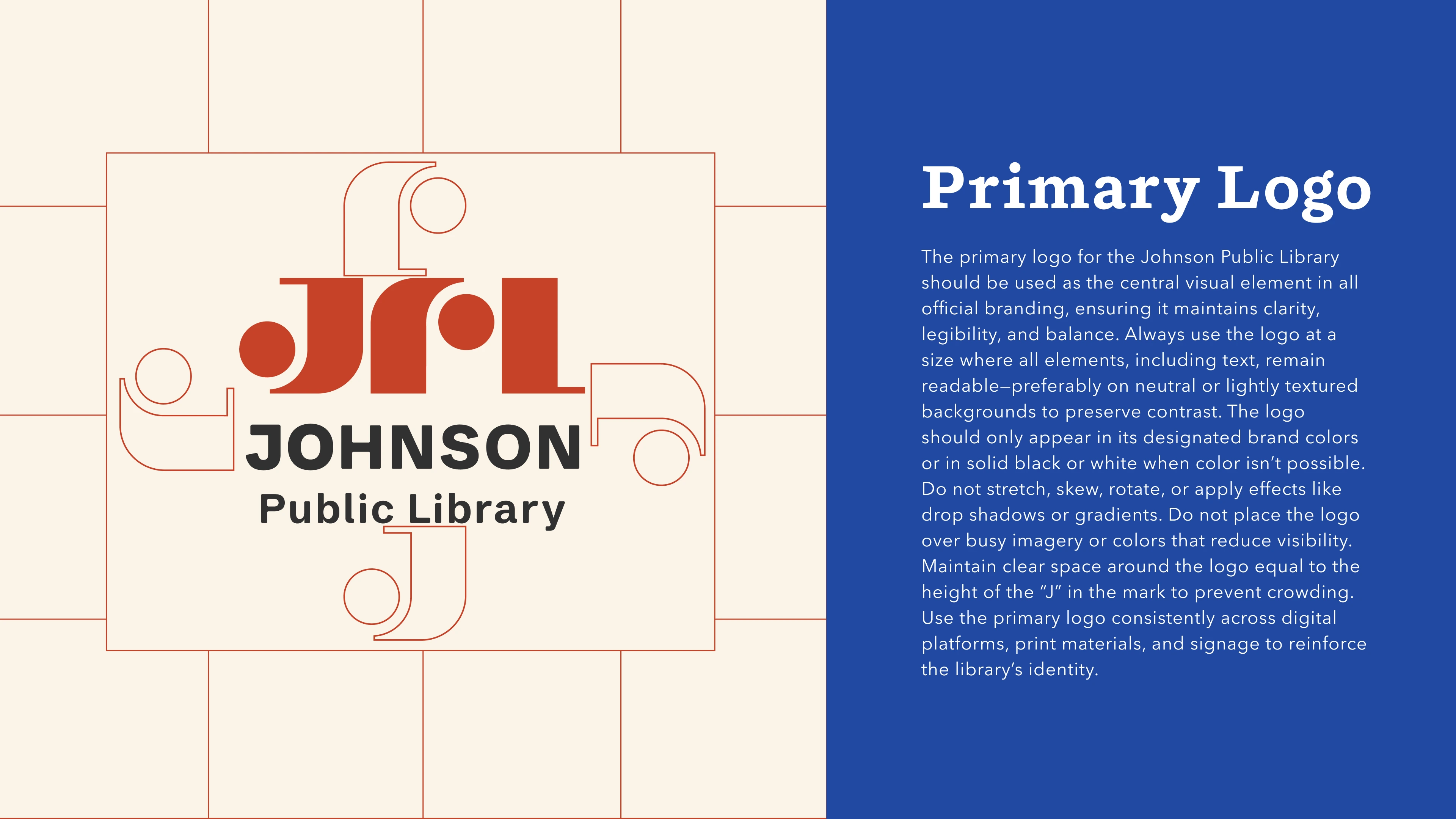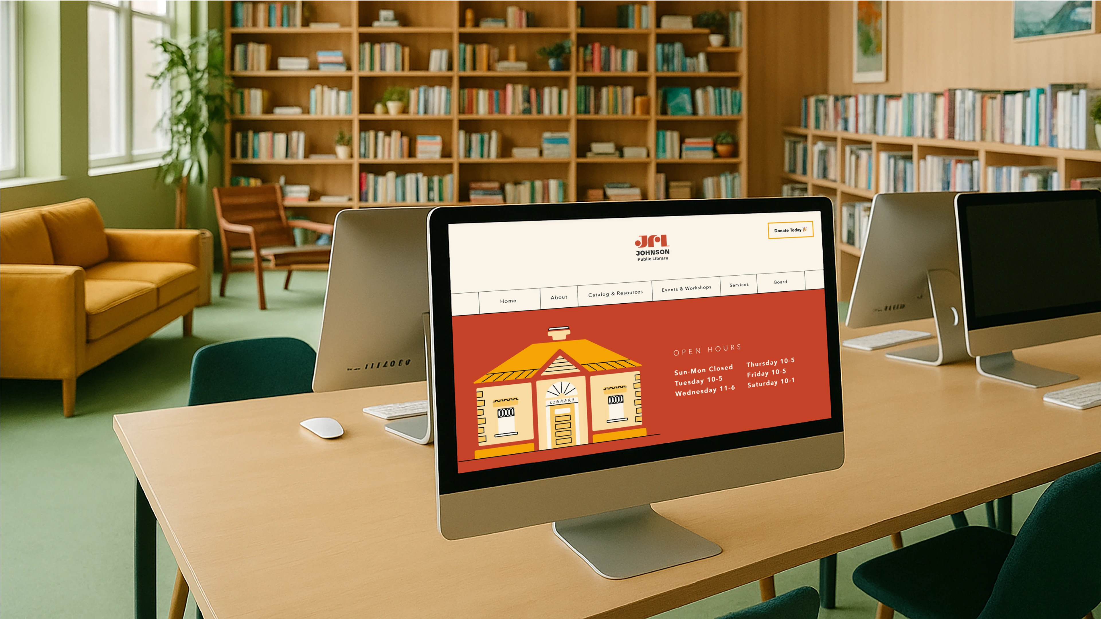 Implementing the 2025 Johnson VT Library rebrand—an identity honoring its history while celebrating rebirth after relocation and flood recovery.