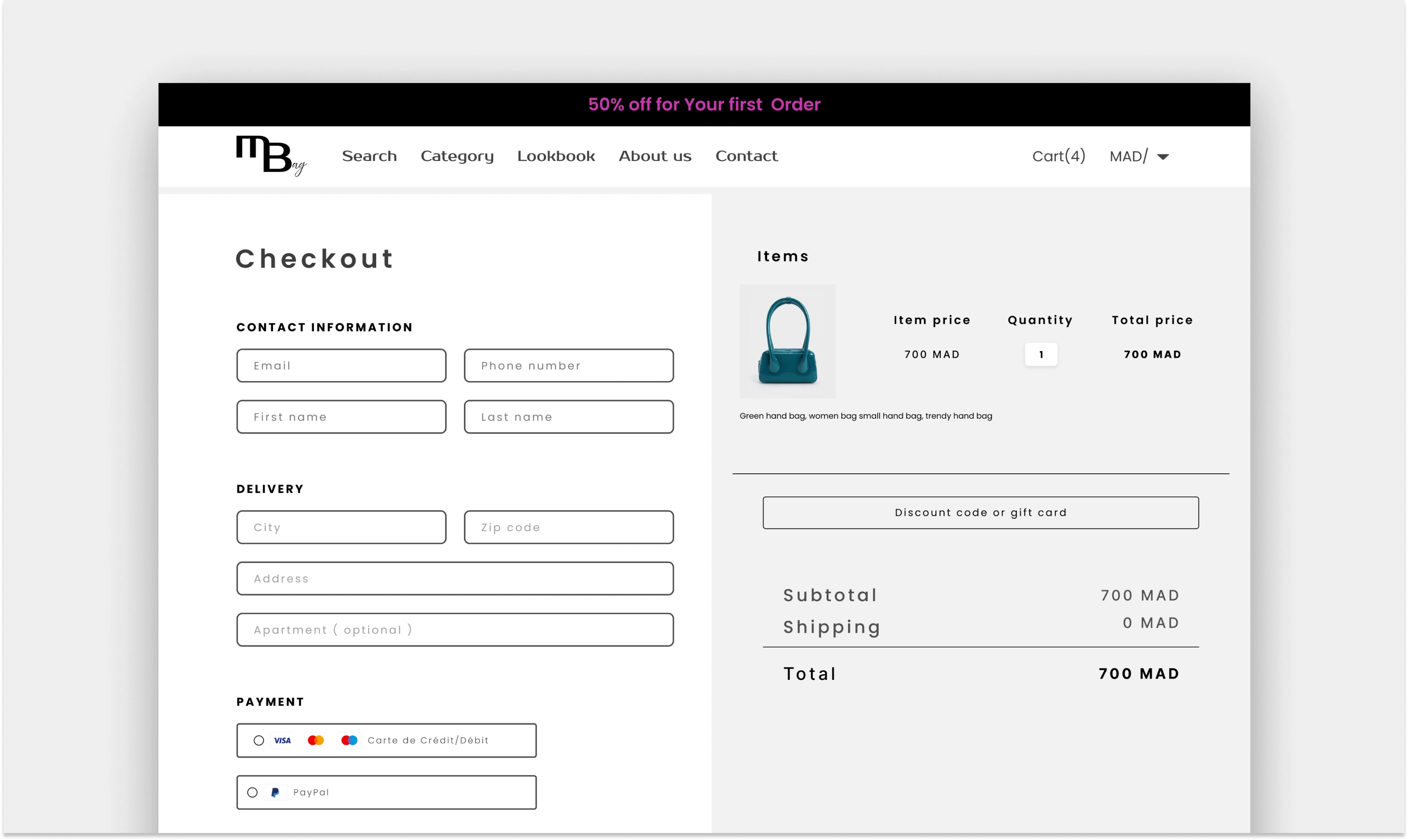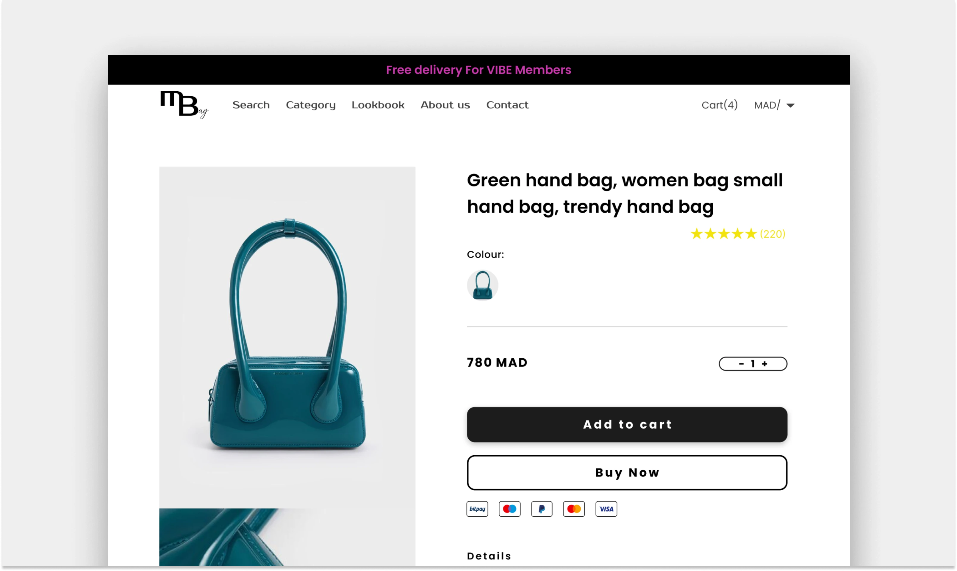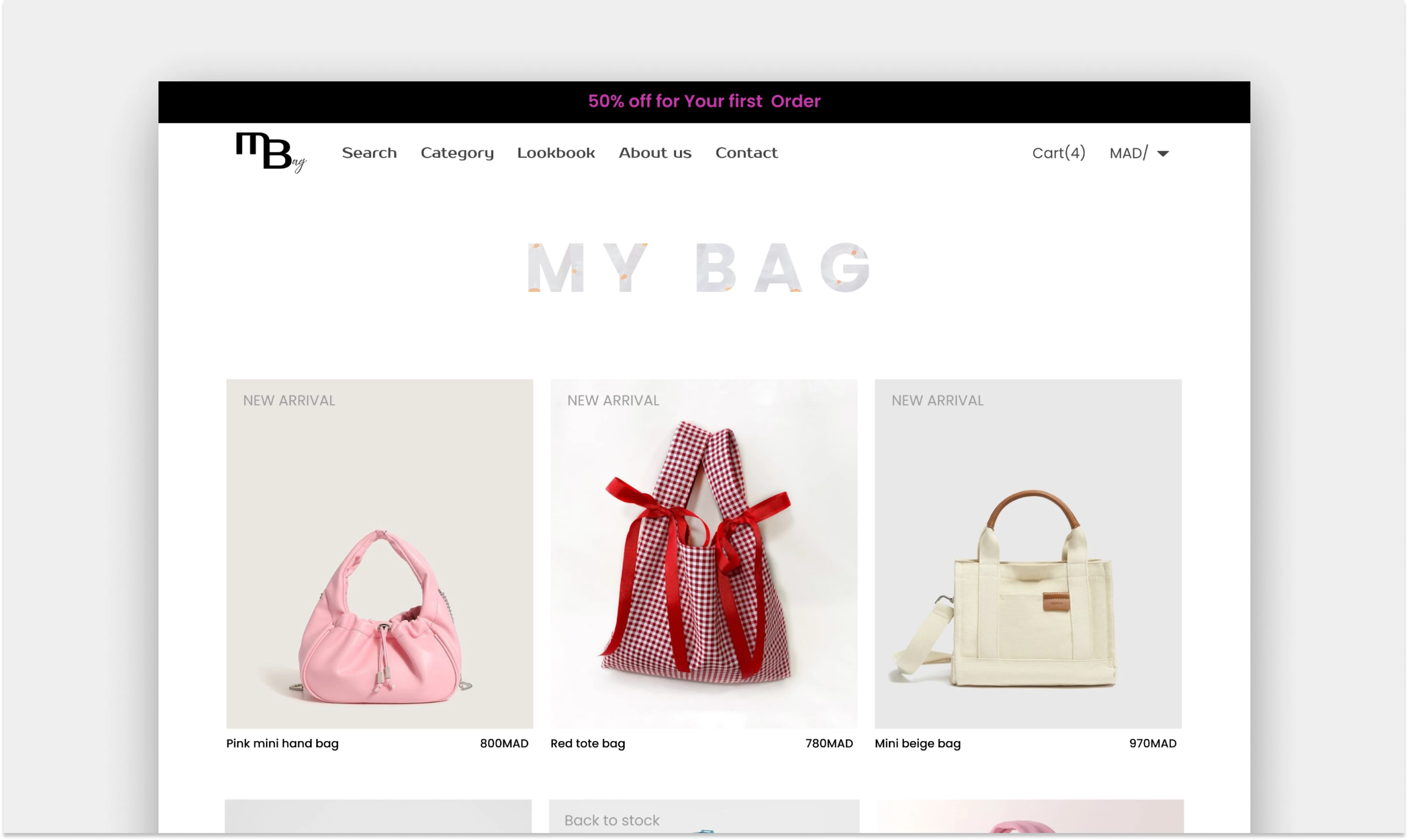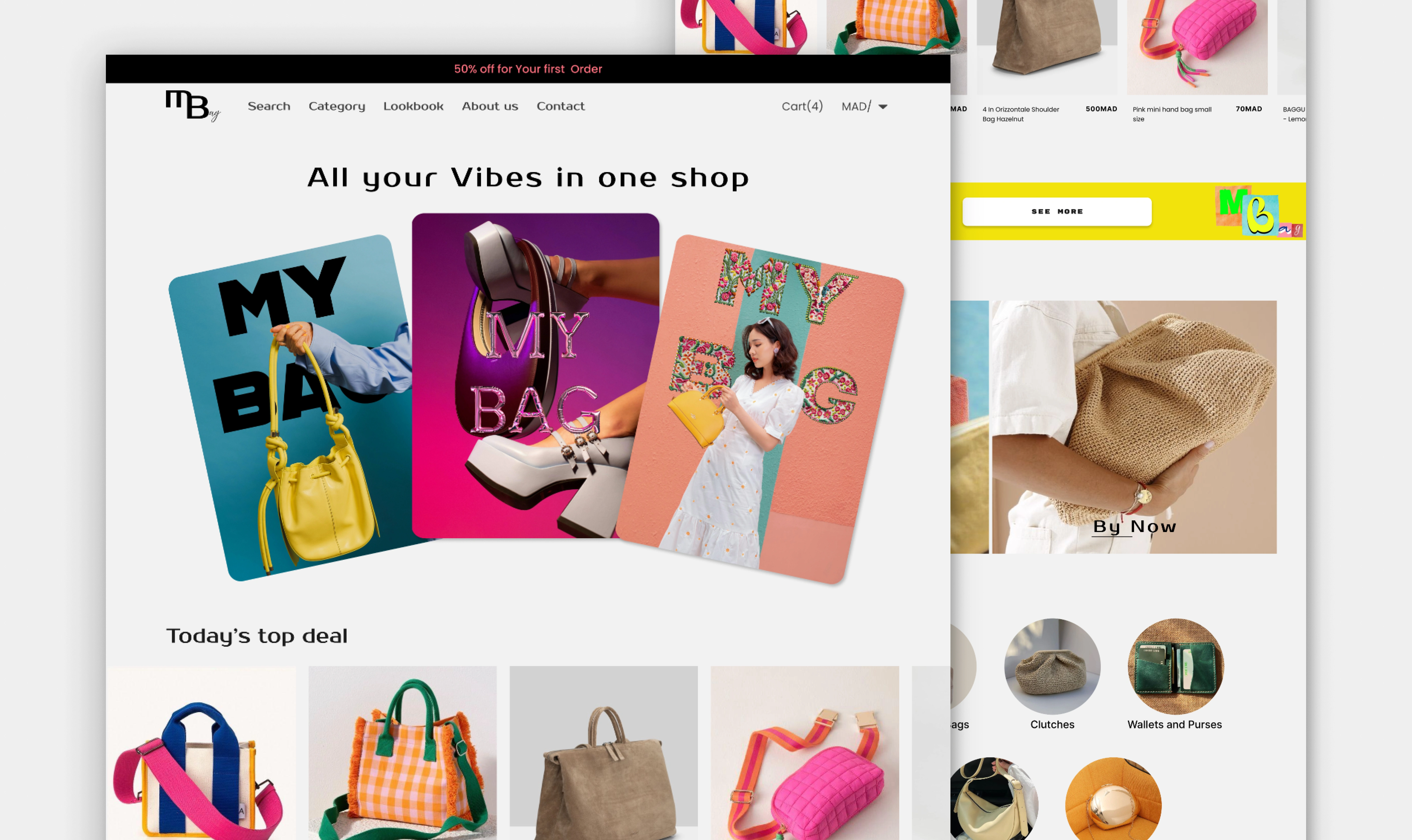 A full e-commerce website designed for a fashion brand selling high-quality bags.