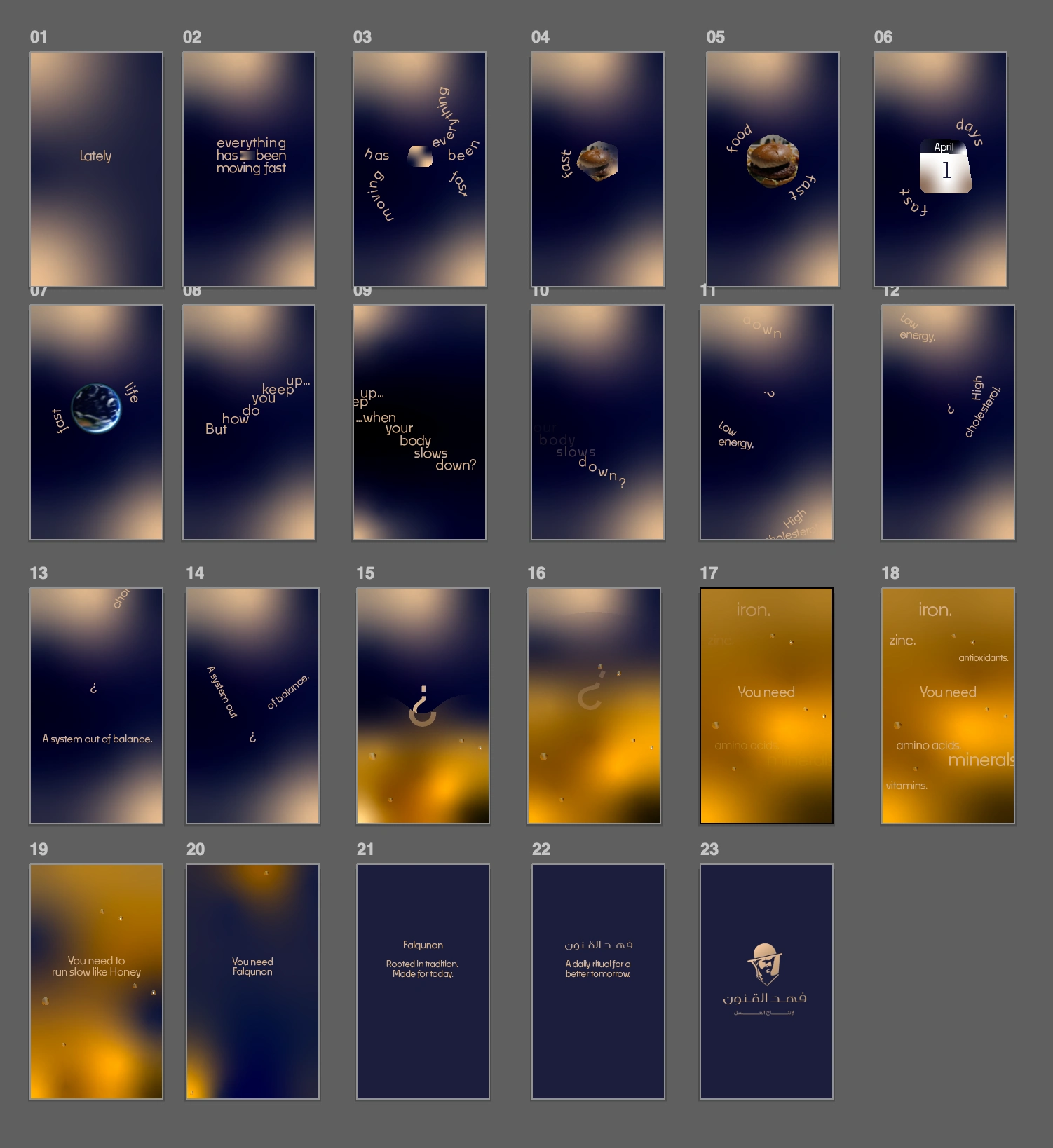 This animated short was created entirely by me – from concept, scriptwriting, and styleframes to the final motion design. The brief was to develop a fast, emotionally resonant story for a premium honey brand based in Saudi Arabia, designed specifically for social media.