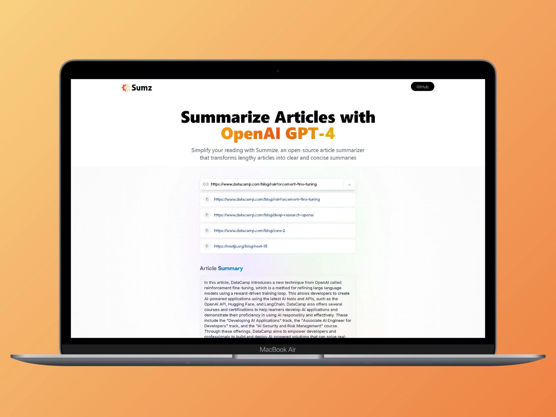 The app also saves previously summarized links on the home page for quick access — keeping every summary accessible and organized.