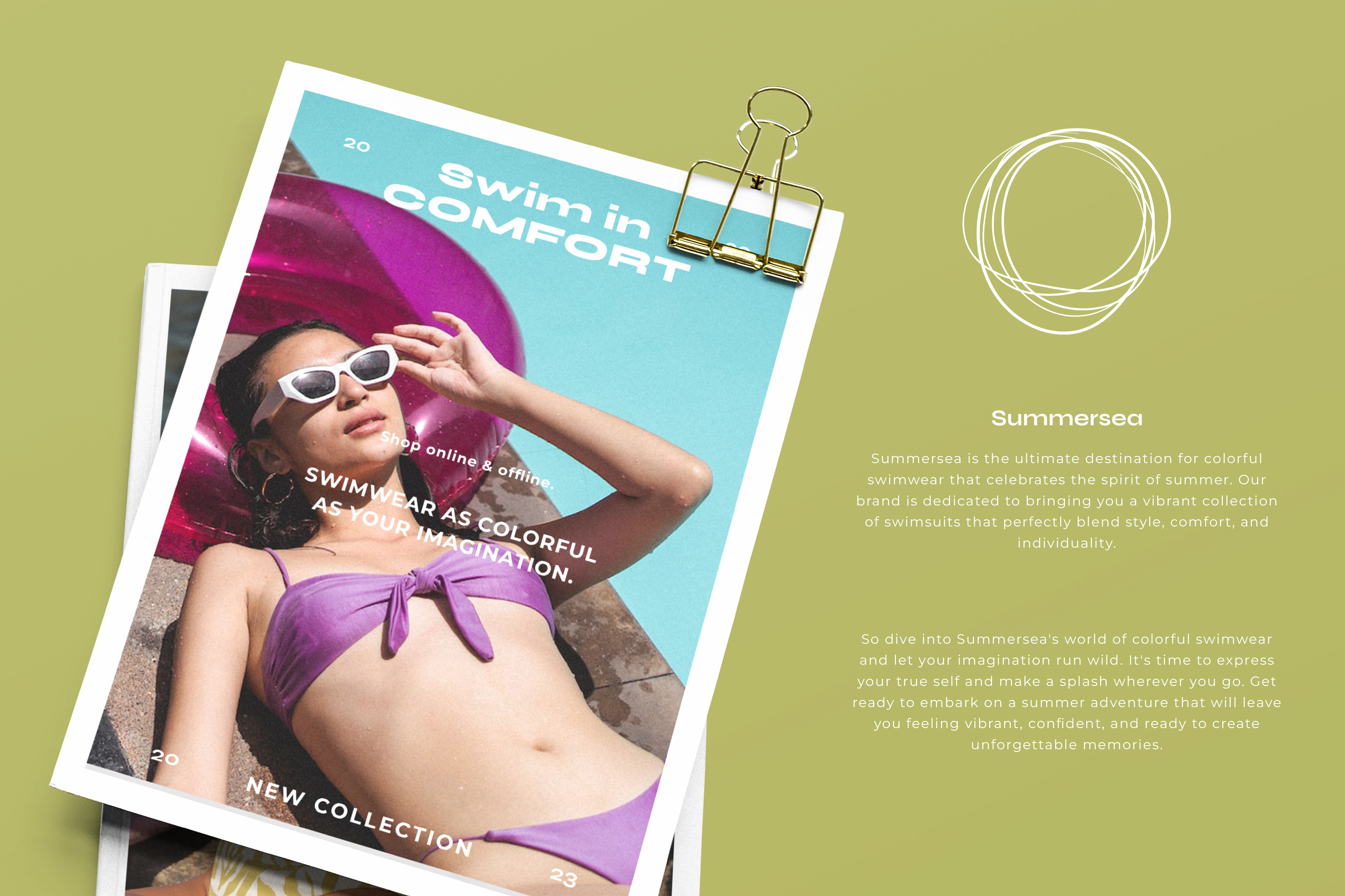 I recently had the exciting opportunity to work on a design and brand identity project for a vibrant swimwear brand called "Summersea." The goal was to create a visually captivating and cohesive identity that reflected the brand's core values of joy, adventure, and self-expression.