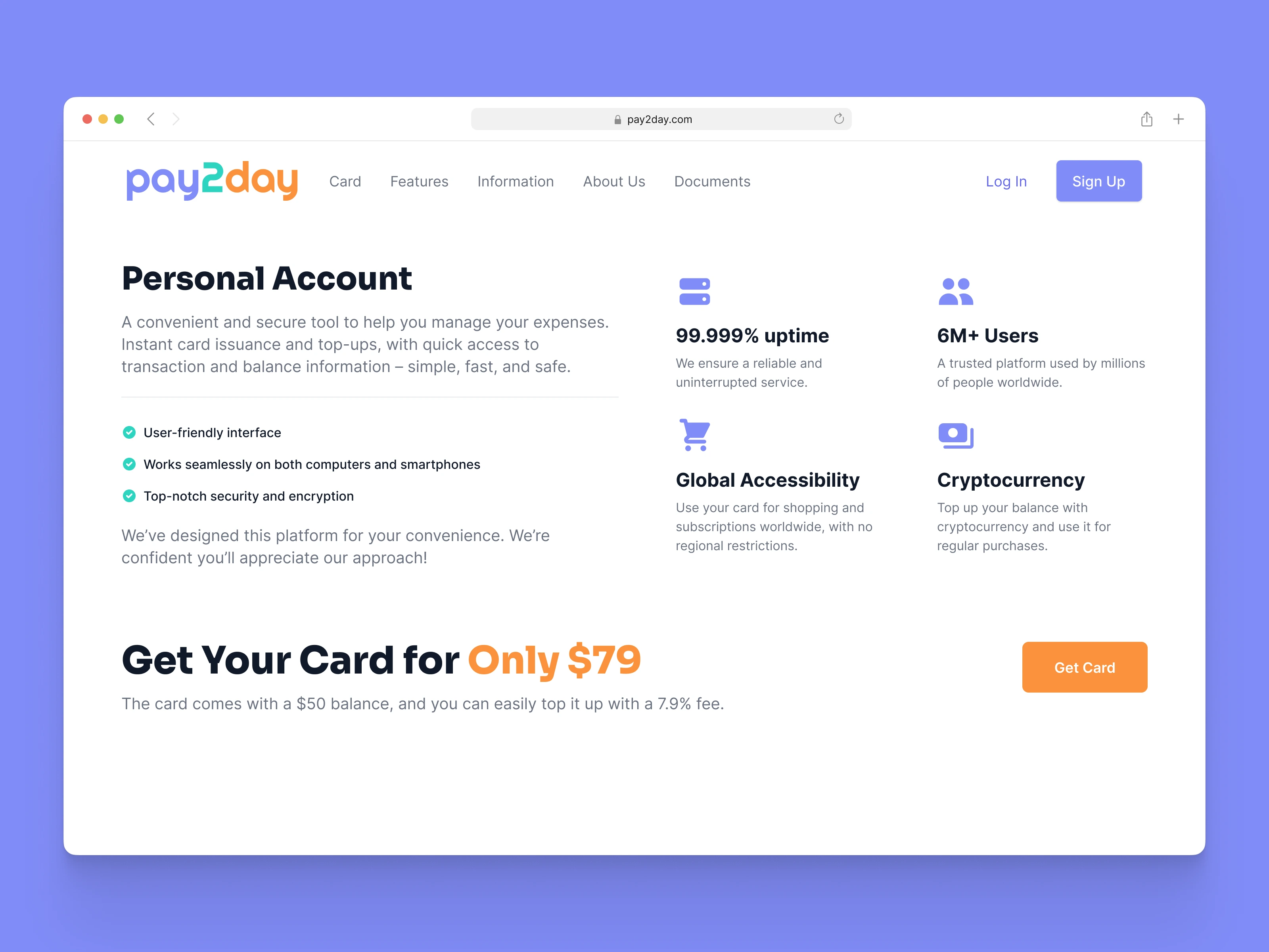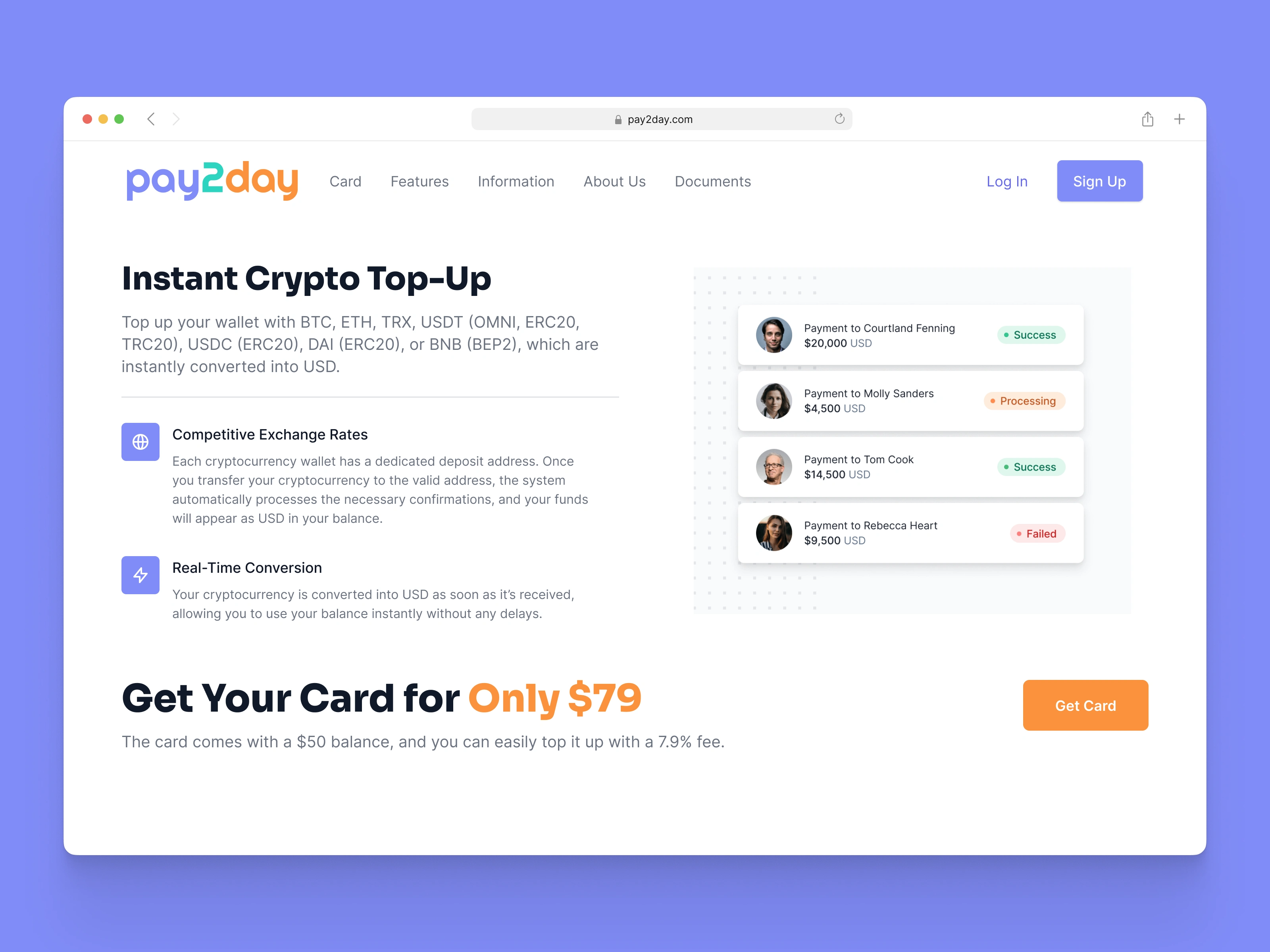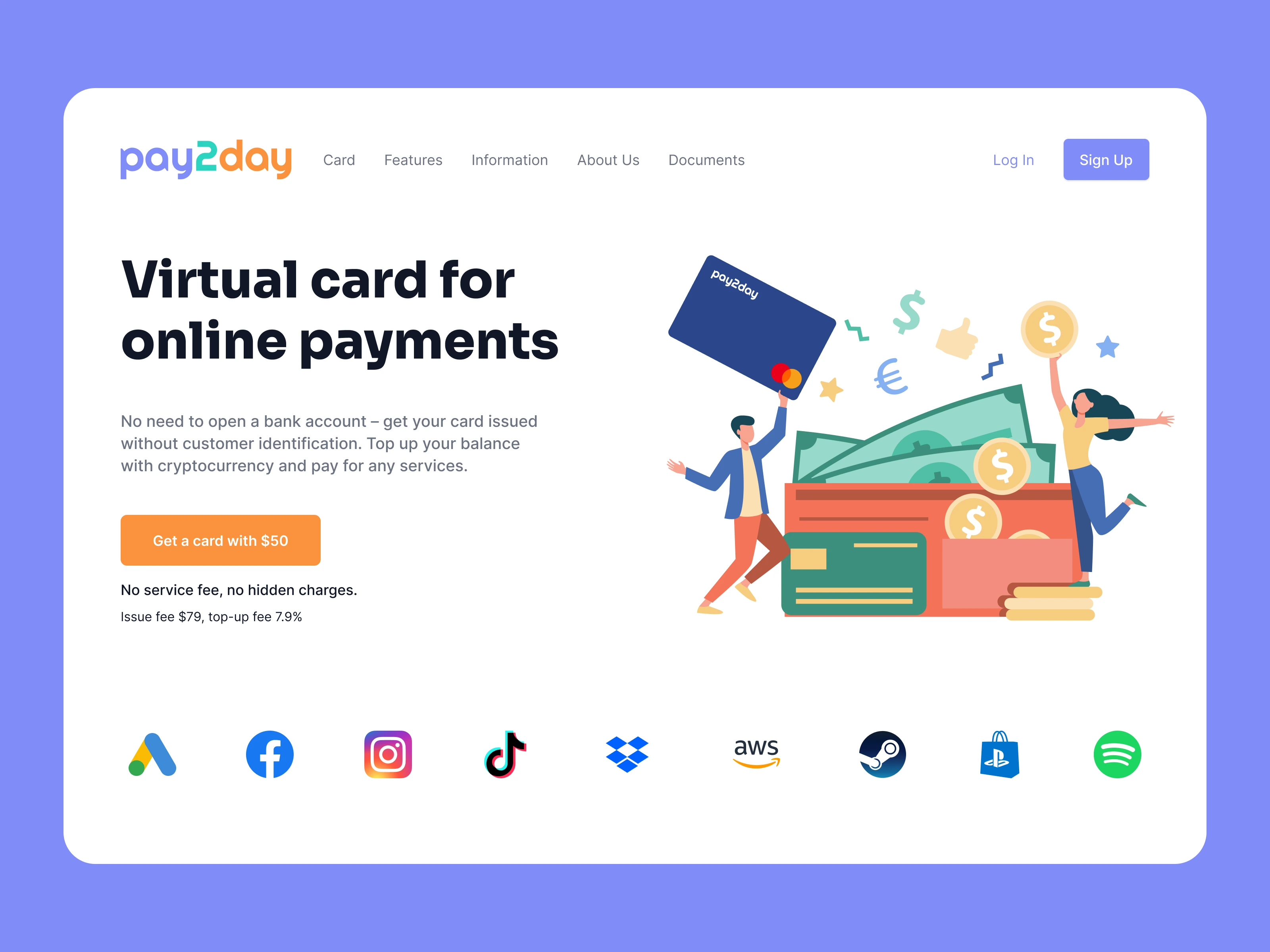 Design a clean, user-friendly landing page that instills trust and clearly communicates Pay2day’s value proposition—instant virtual card issuance without a bank account or personal data requirements—while enabling rapid delivery under tight deadlines.