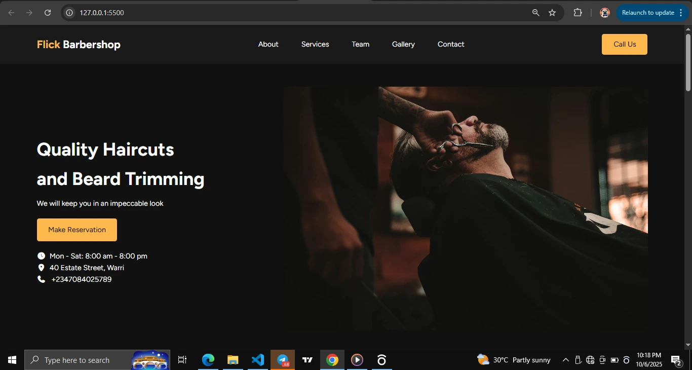 Developed a sleek, modern website for Flick Barbershop to enhance their online presence and attract new clients. The site features a clean design.
