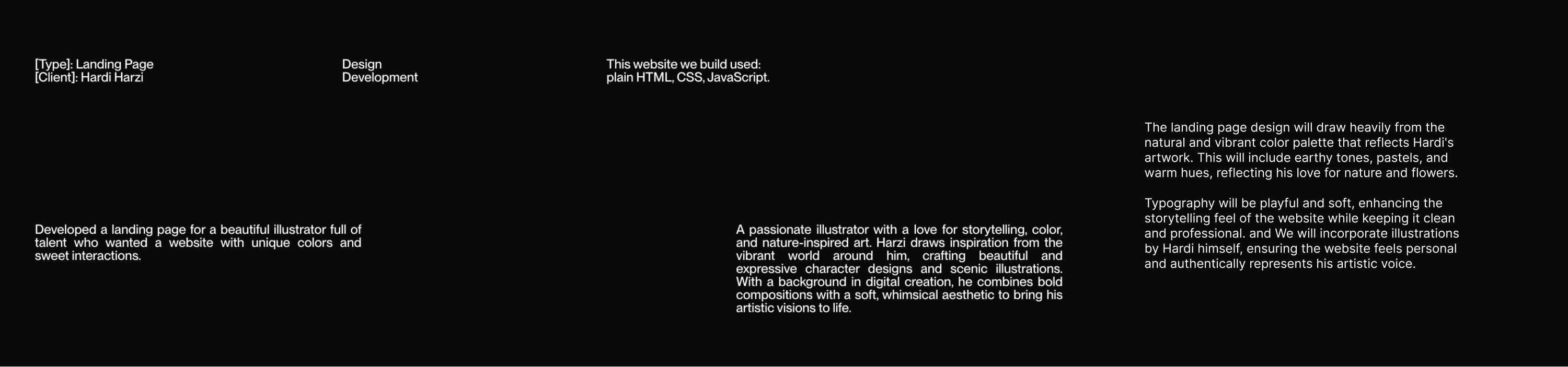 Developed a landing page for a beautiful illustrator full of talent who wanted a website with unique colors and sweet interactions.