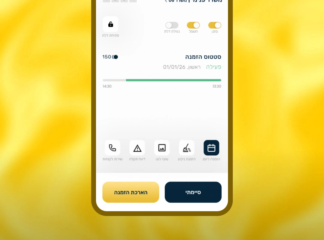 During an active booking, users can control office infrastructure directly from the app, including door access, electricity, and air conditioning. IoT actions are automatically linked to booking status for security and efficiency.