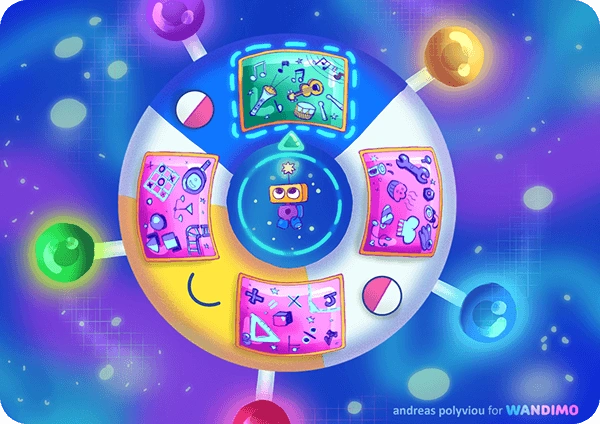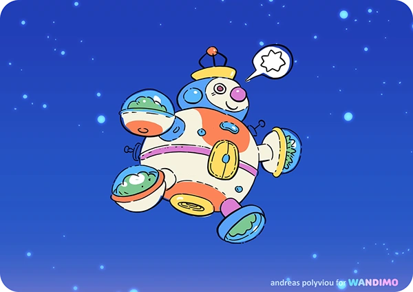 Wanda travels through the universe in their friendly spaceship, spreading good vibes and helping with math!