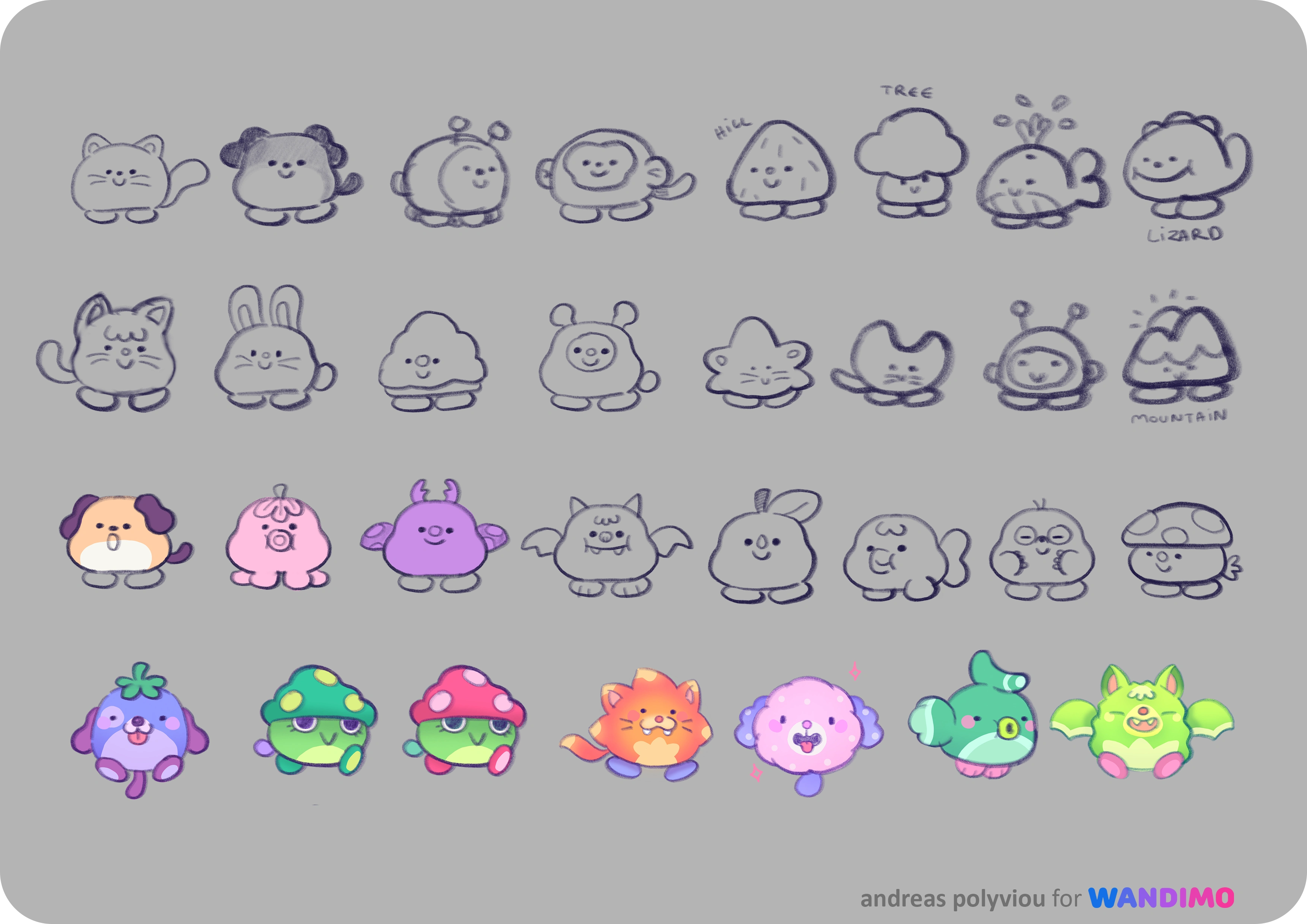 It was a lot of fun thinking about these and I did so many designs- I had to find a style that was transferable over many different animals, that would also share animations in-game!