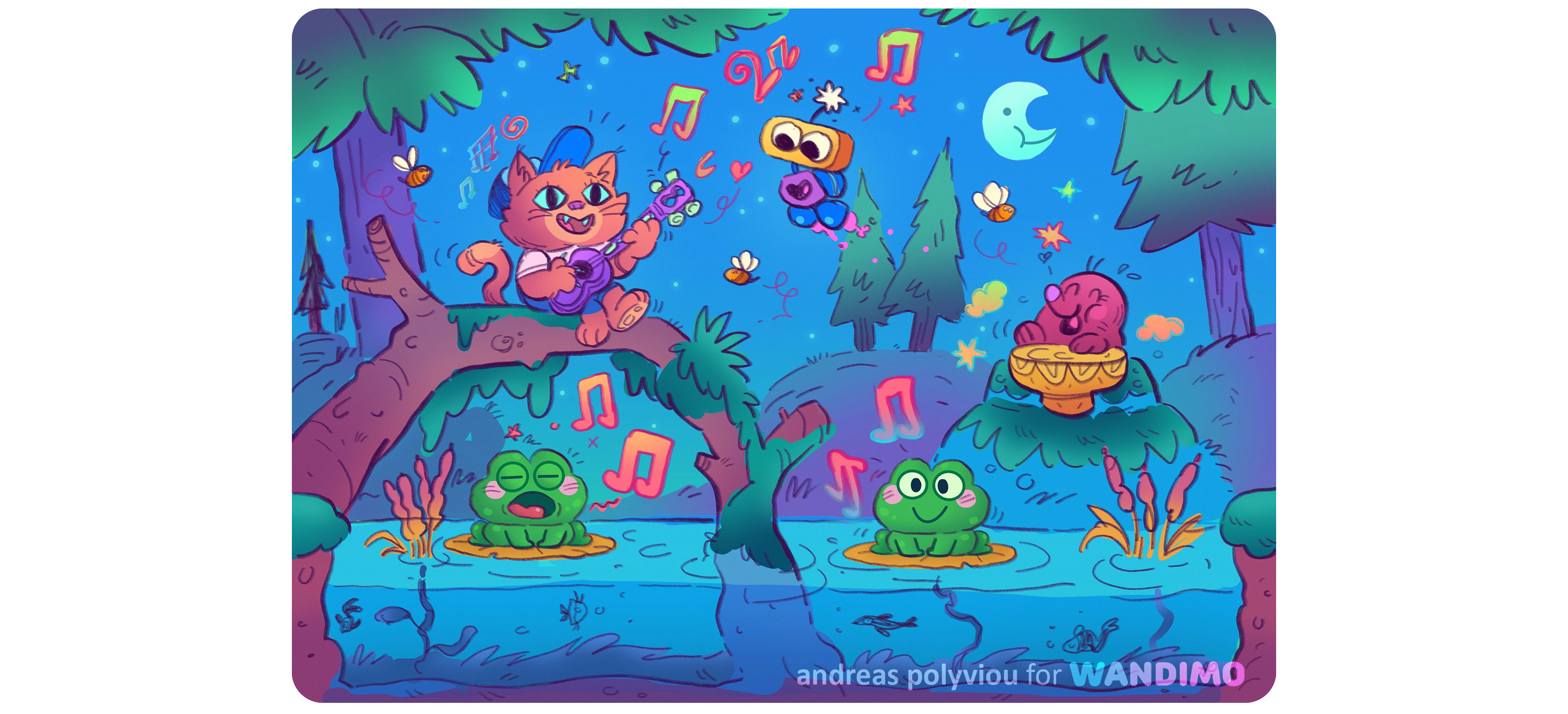 I wanted the style to be soft, friendly, lively and inviting- and a style that was easy to animate and would look good on a variety of screen sizes.