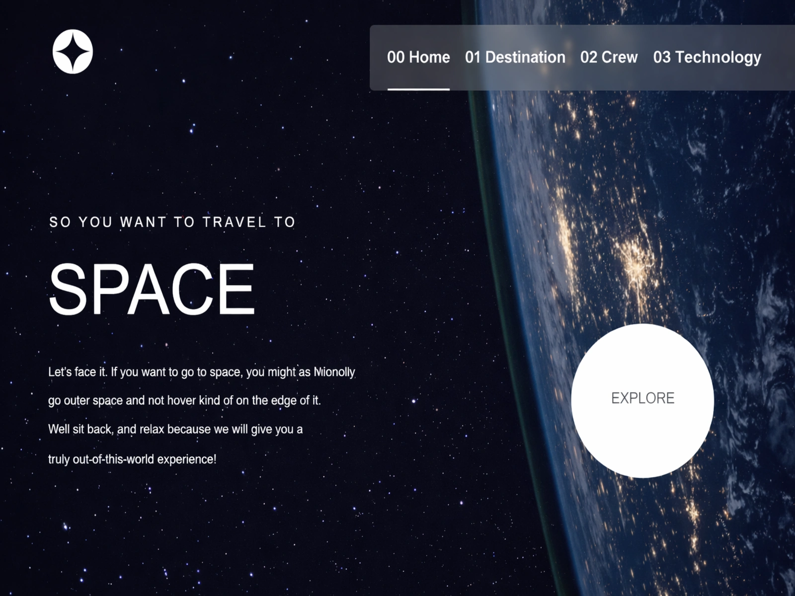 An interactive, space travel site built with React, Tailwind CSS, and JavaScript. Features smooth page transitions, futuristic UI, and a fully responsive design
