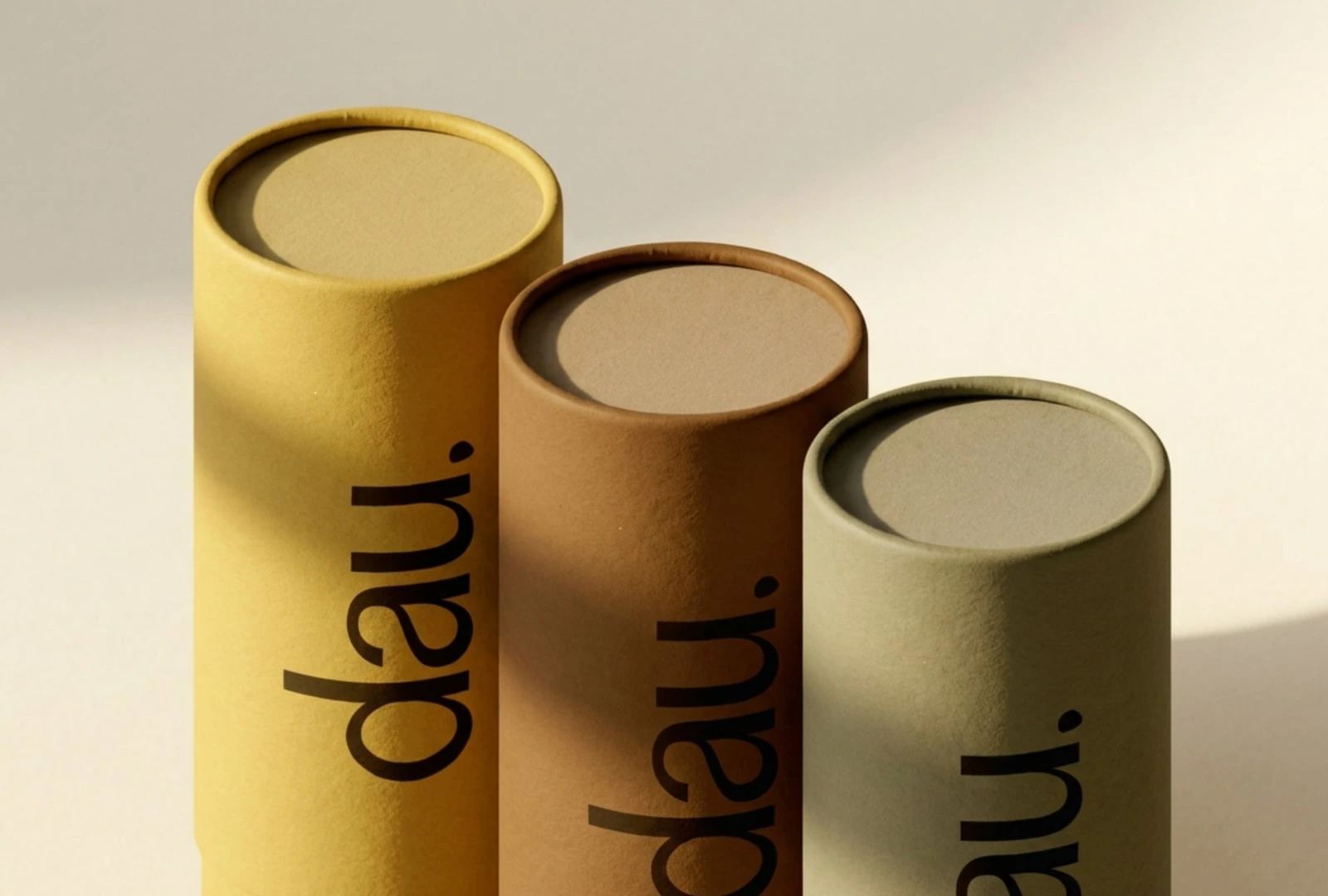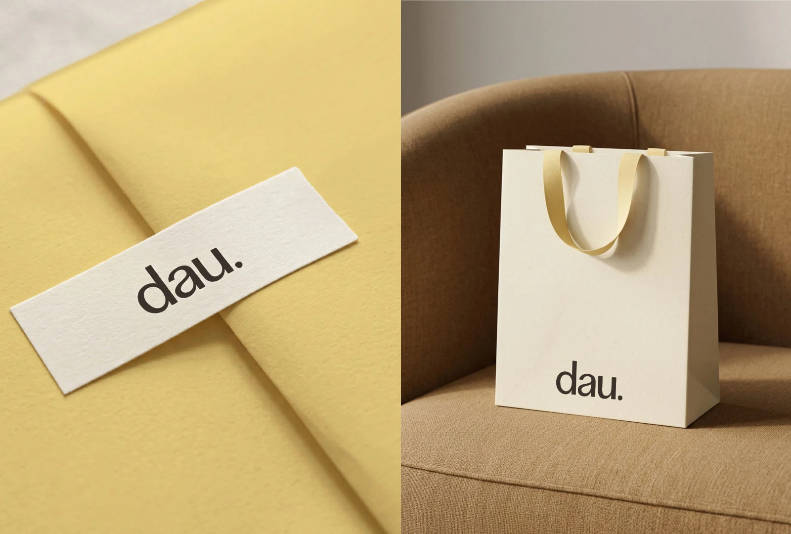 Natural tones. Handwritten touches. A brandmark built from the abstract form of a D, referencing the idea of space in transformation.