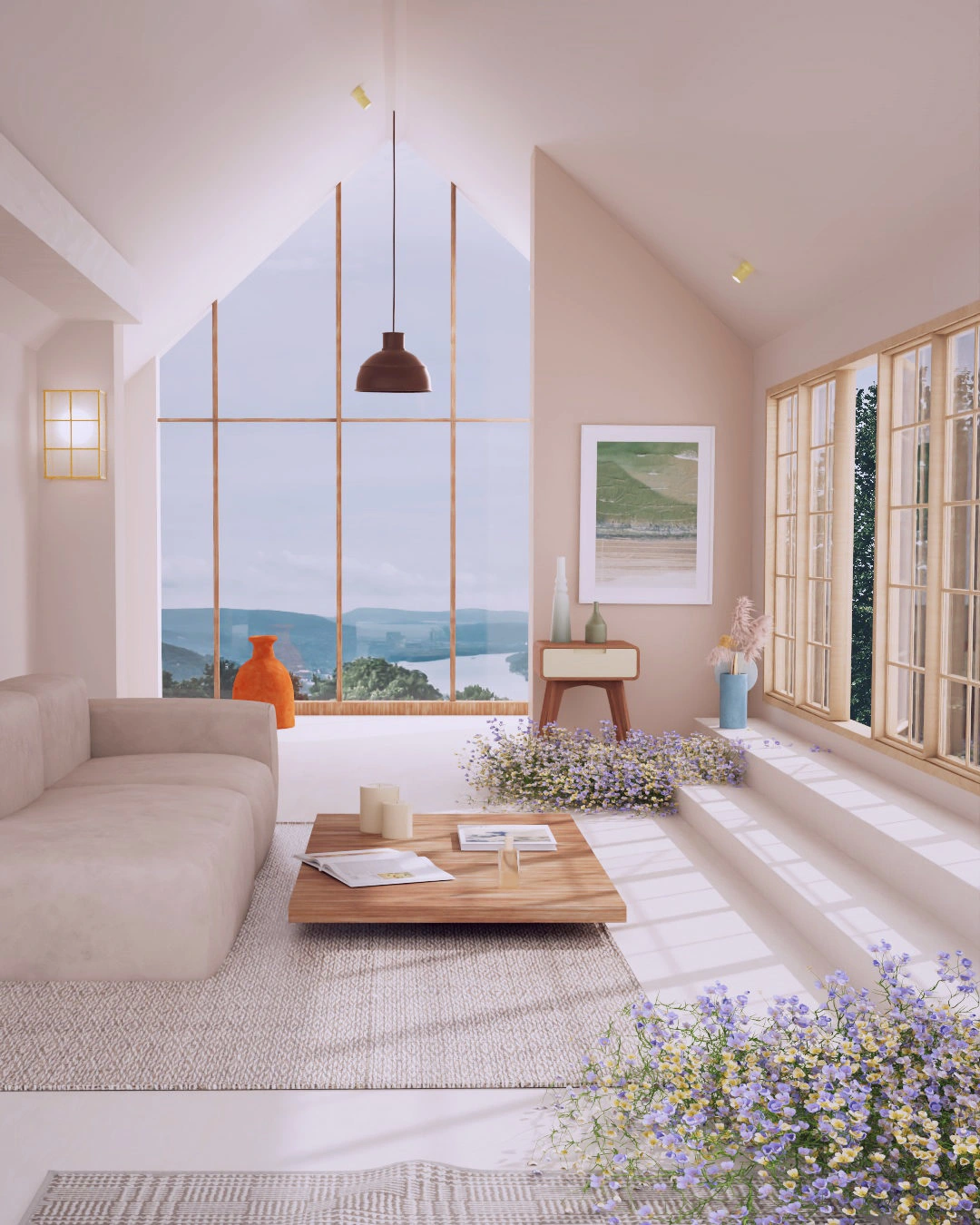 A collection of diverse interior design renders just for fun. I focused on art direction and combining colors in flowers and elements combined with natural texture elements as woods and fabric textures.