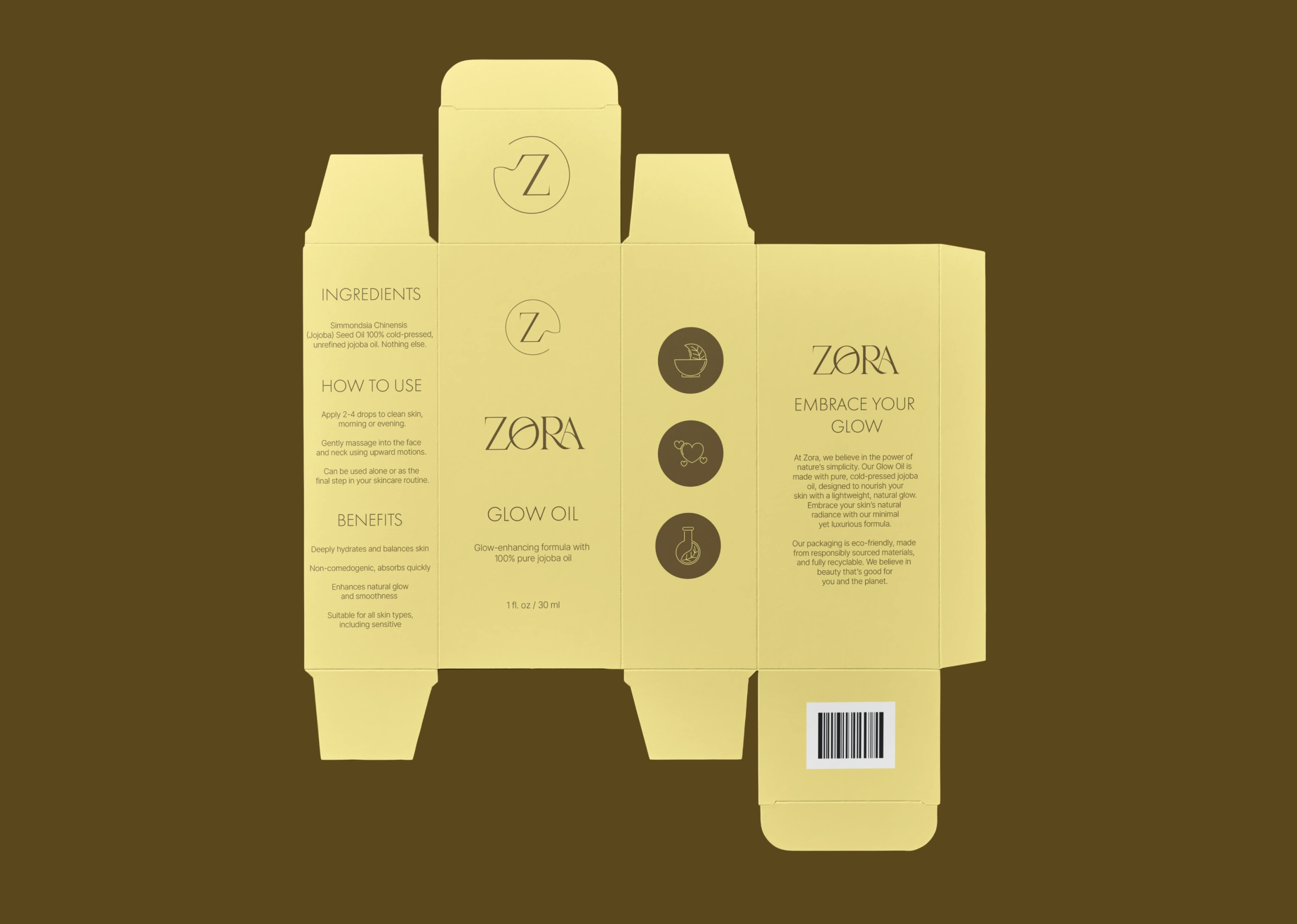 The creative direction focused on positioning Zora as a harmonious blend of minimal luxury and honest skincare. I anchored the brand in three core values: nourishment, upliftment, and enhancement of natural glow. From there, every design choice typography, palette, packaging, and tone of voice was aligned to reflect gentle sophistication. The narrative emphasized clarity: transparent messaging, refined details, and an experience that felt as good as the product itself.