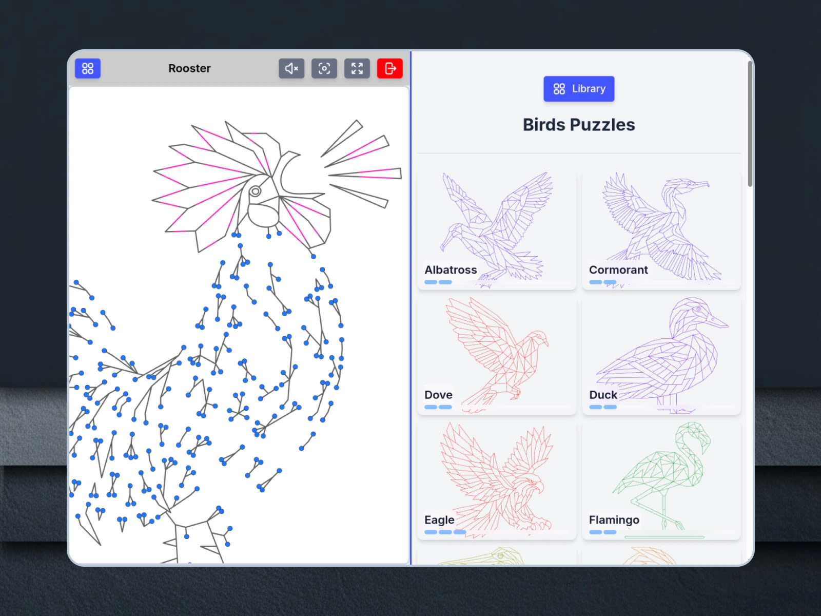 A library of over 90 handcrafted puzzles.