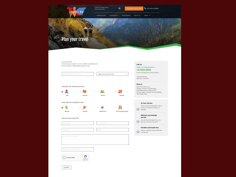 TravelXS is a well-established Destination Management Company (DMC) that provides curated travel experiences across India. The brand needed a modern, visually appealing, and conversion-focused website to present their travel itineraries, services, and company strengths more effectively.