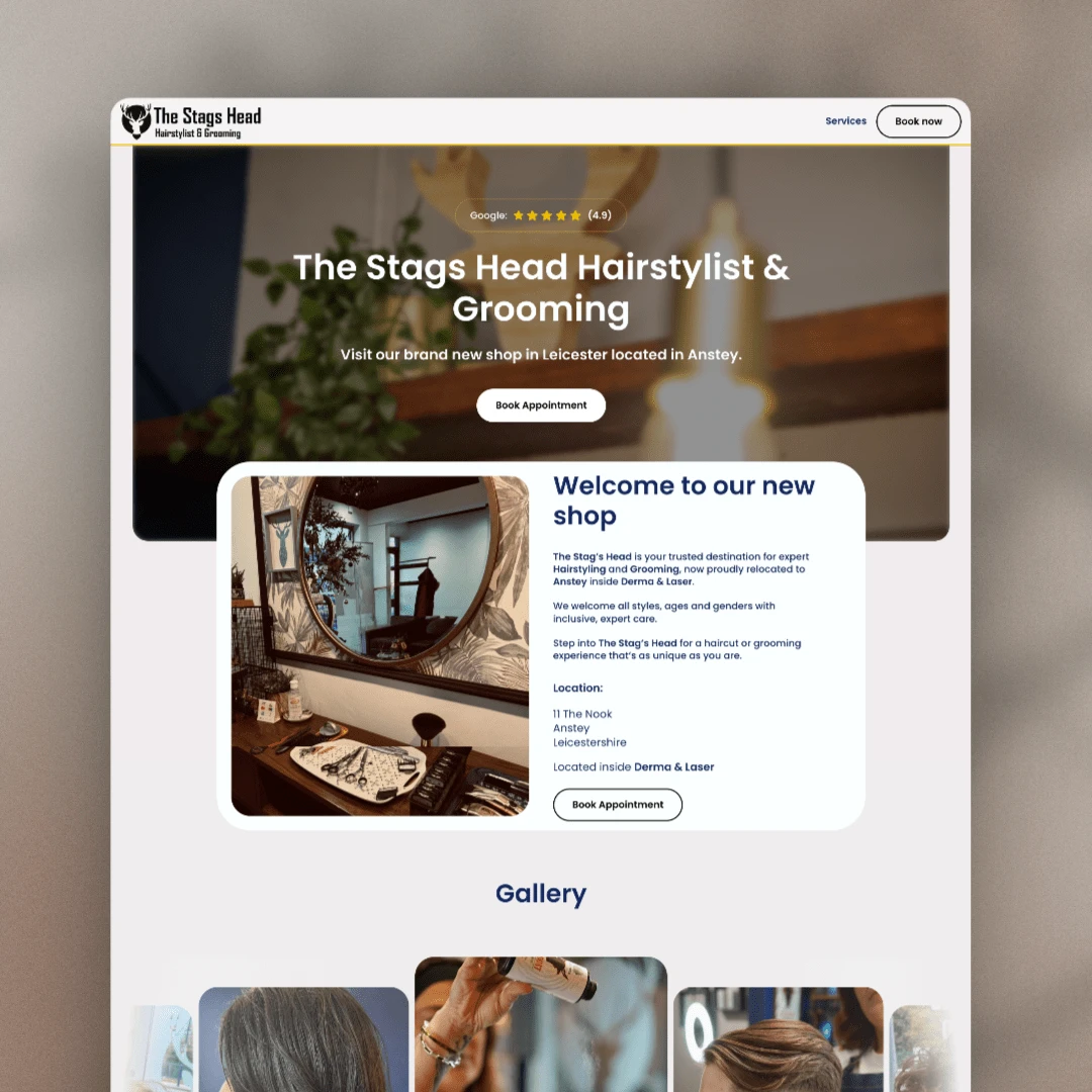 The Stags Head Barbers approached me to redesign their website as they were relocating to a new space and wanted to update their online presence to reflect this change. Their previous website was outdated and didn’t capture the vibrant, modern atmosphere of their new location. They trusted me to create a fresh, clean, and user-friendly design that would elevate their brand and attract more local customers.