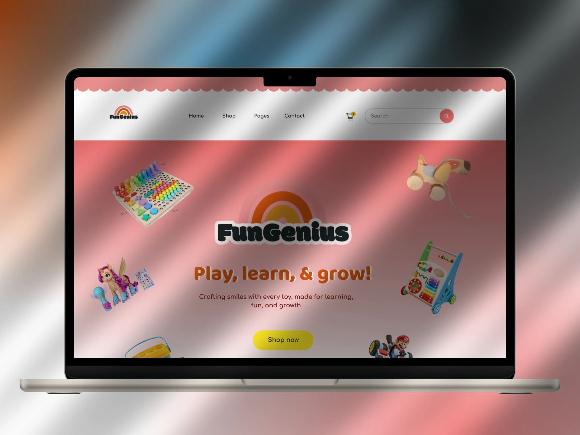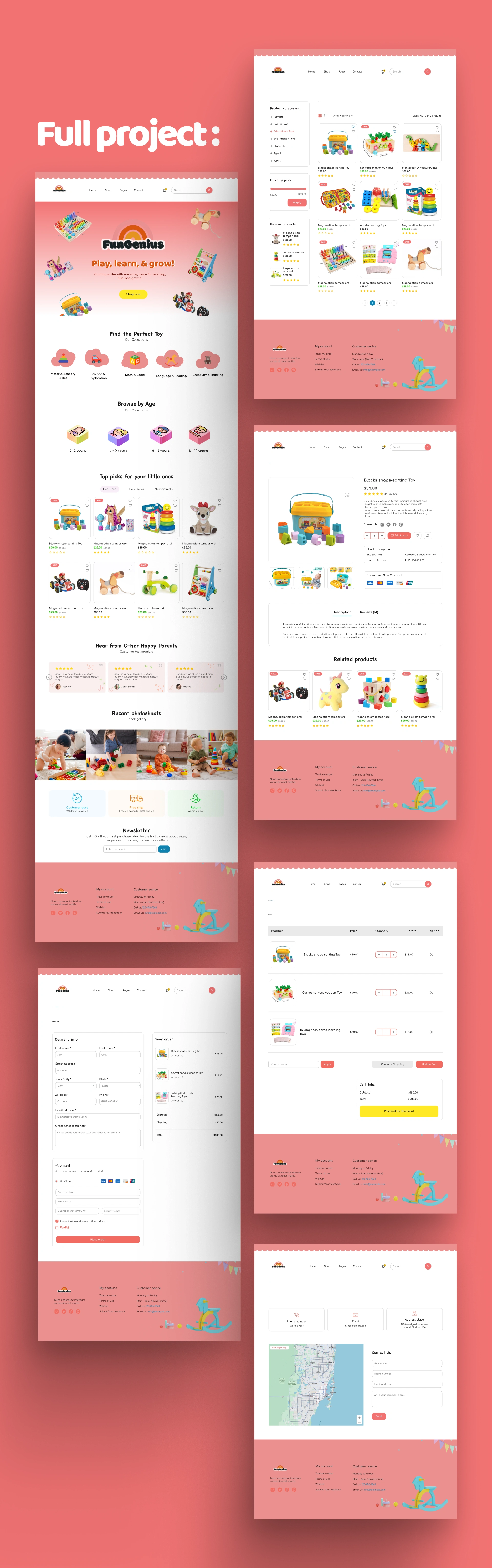 FunGenius is a playful and intuitive e-commerce UI design tailored for parents seeking educational toys for children aged 0–12. With a soft, colorful aesthetic, age-based browsing, and engaging visuals, the design focuses on usability, trust, and joyful interaction. Key features include categorized toy discovery, standout product cards, real parent testimonials, and a reassuring customer care section—all crafted to create a warm, seamless shopping experience.