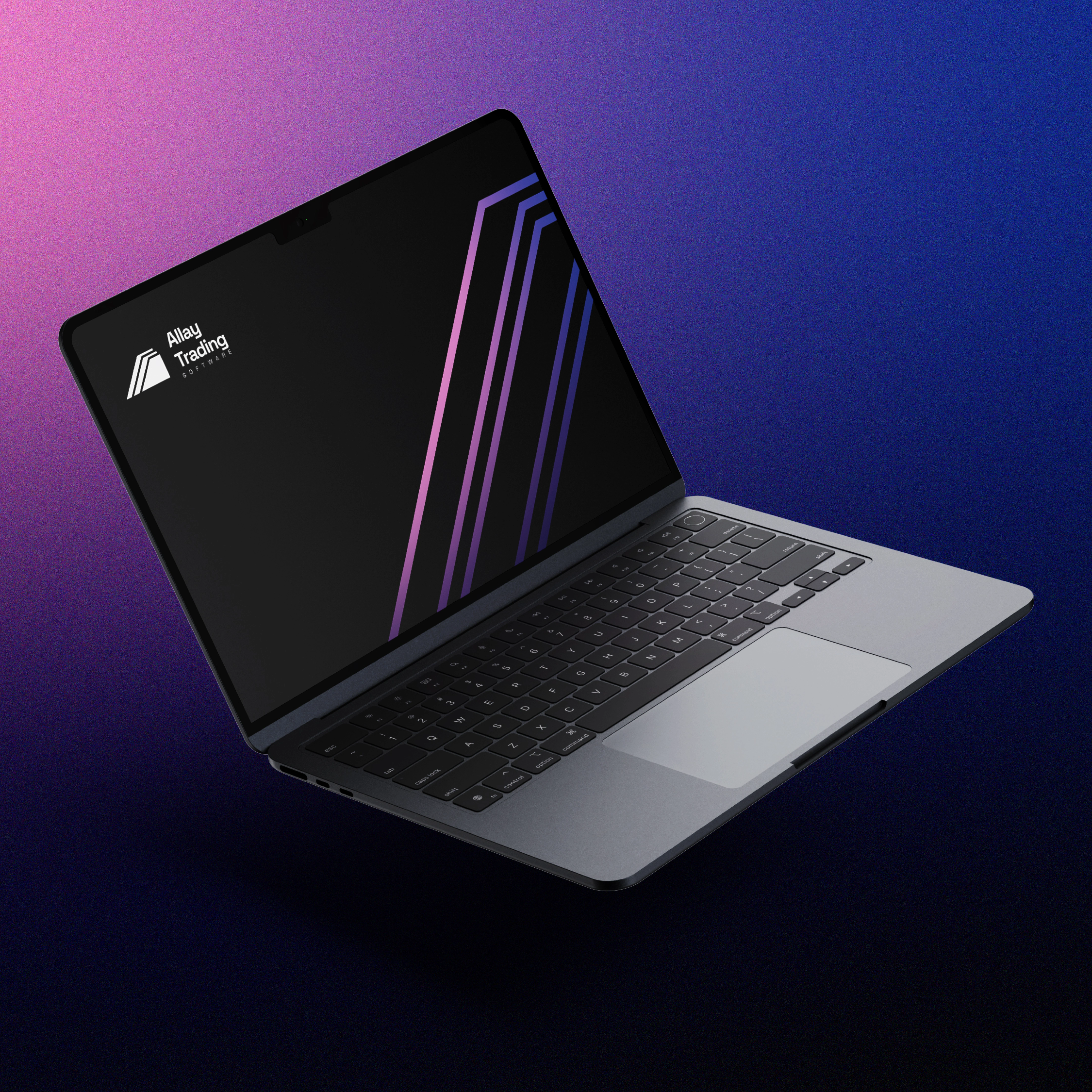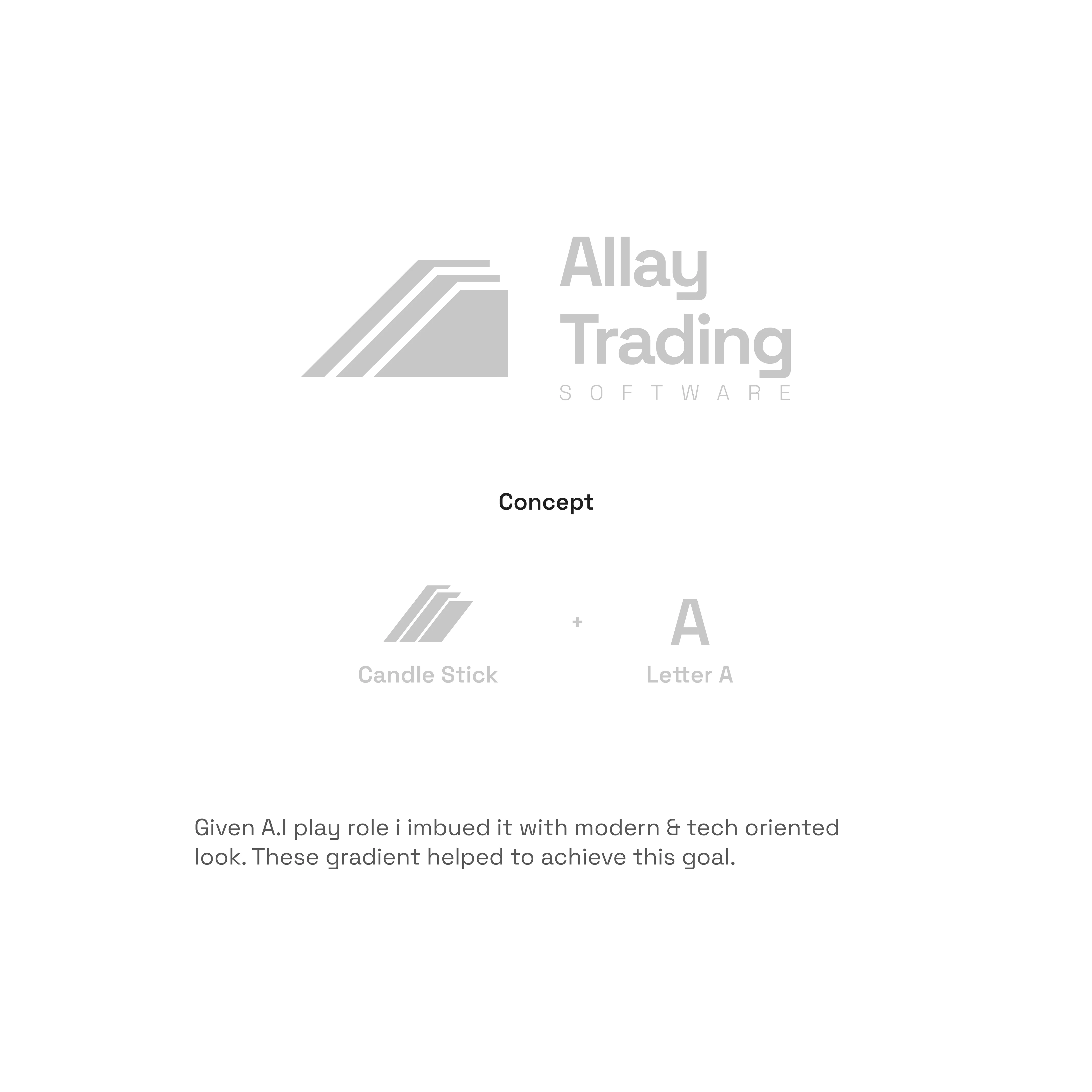 The logo combines a stylized candlestick chart with the letter “A,” symbolizing market structure, upward movement, and AI-enabled trading insights. A vibrant gradient system was developed to represent innovation, technology, and dynamic market energy.