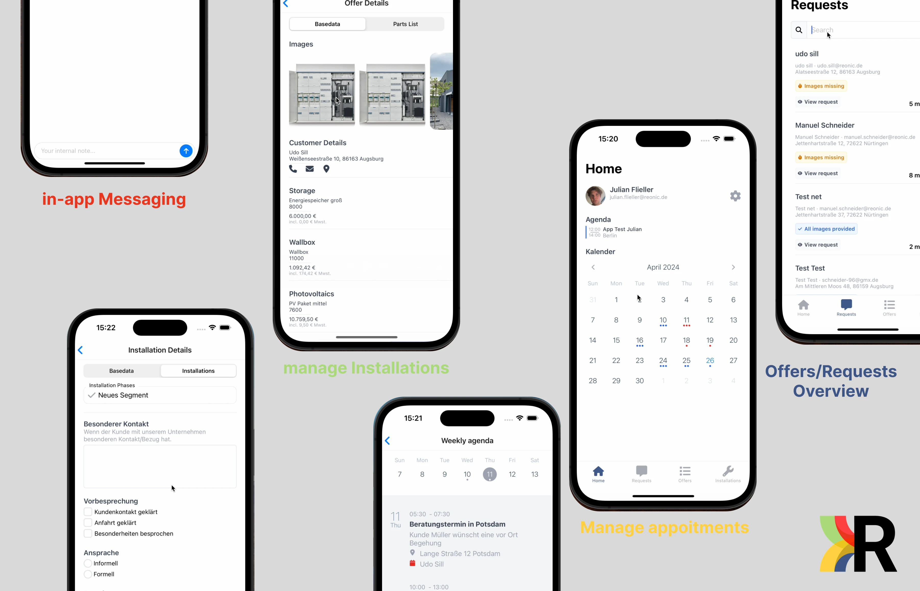 Mobile application for solar installers, facilitating better calendar management and appointment handling